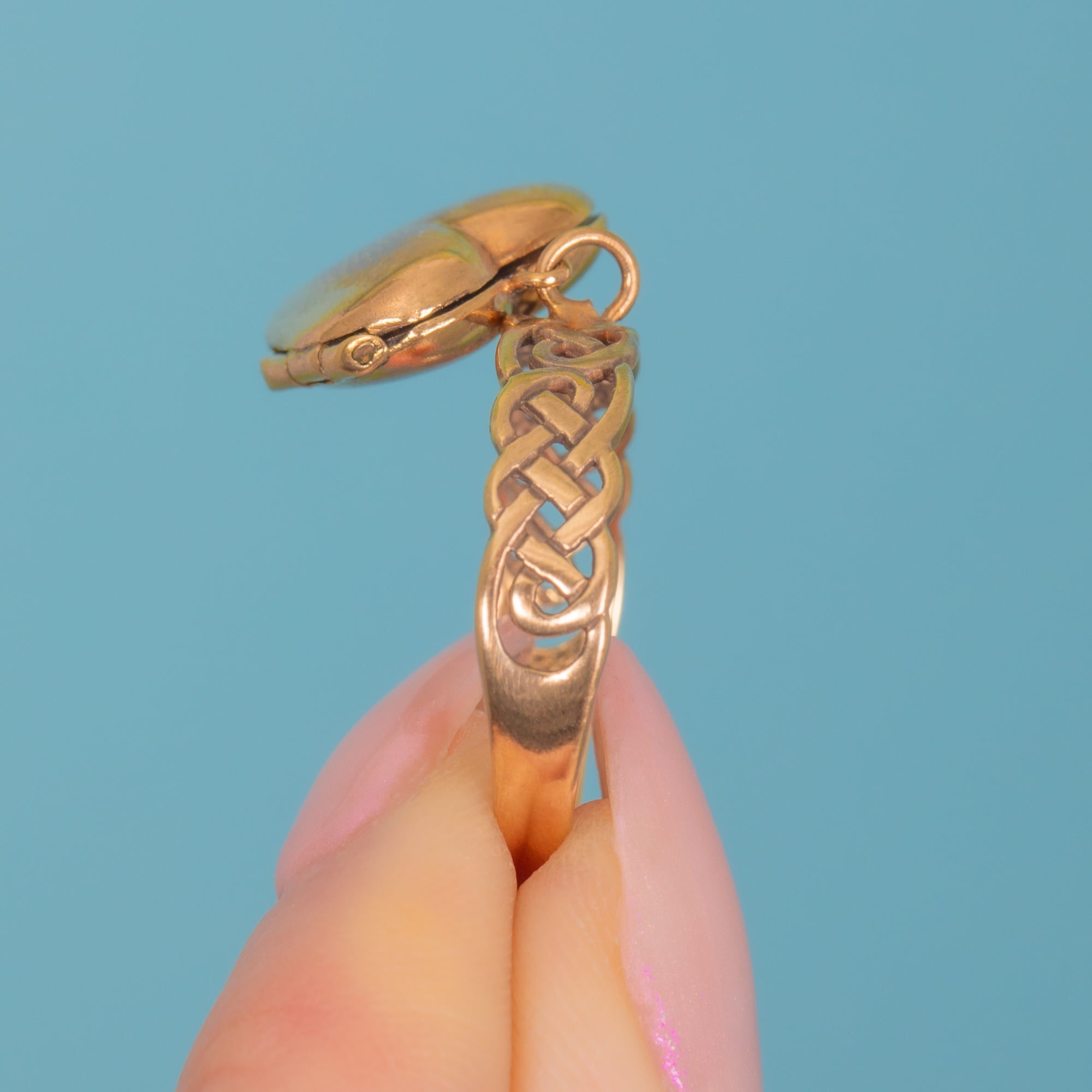 VERY GOOD. This antique 9ct Gold ring is in very good condition. Her band is delicate but well-formed, and the locket sits securely beneath the ring. There are minor signs of wear to the Gold, however, this goes unnoticed during wear. A real treat, this Edwardian Gold ring is a must-have!