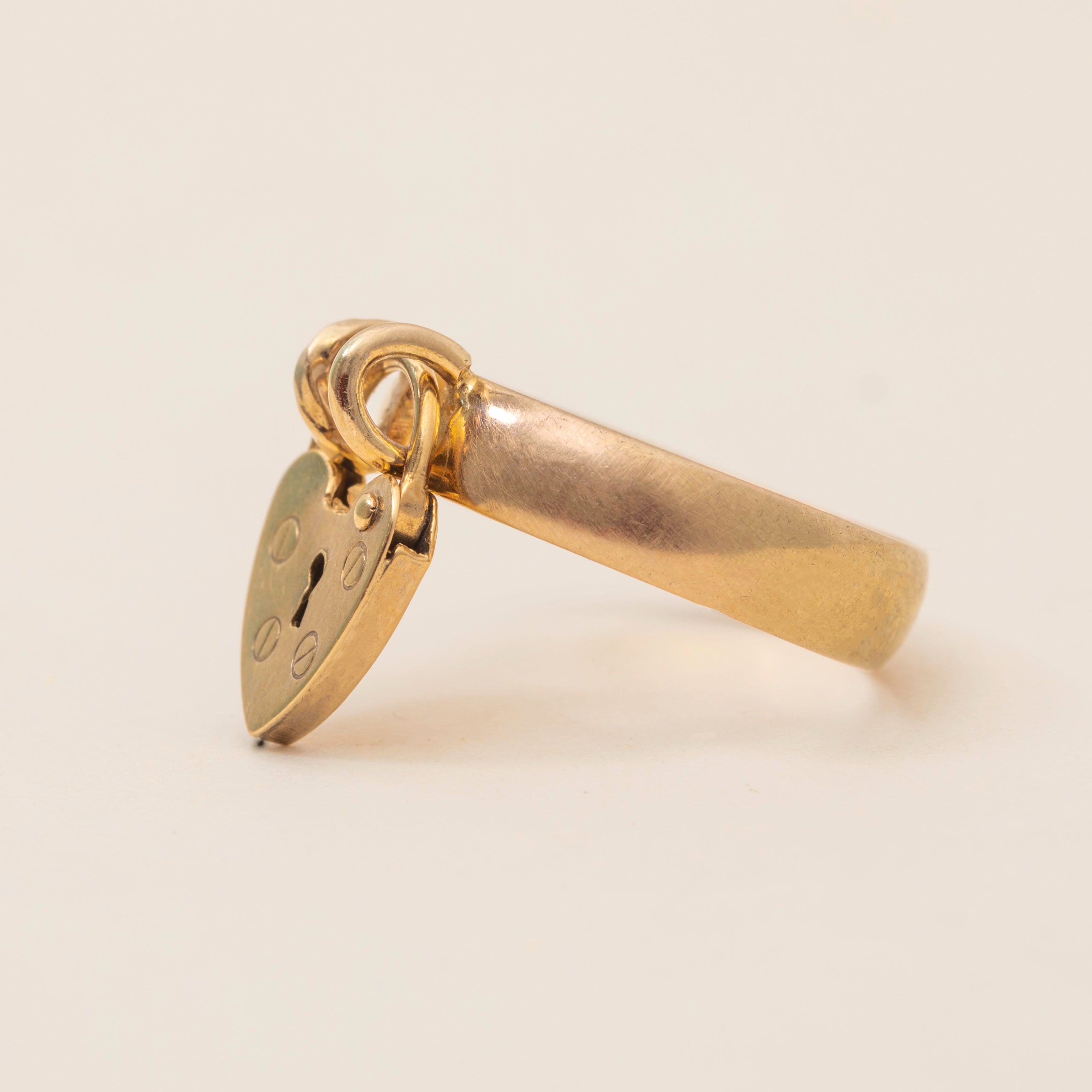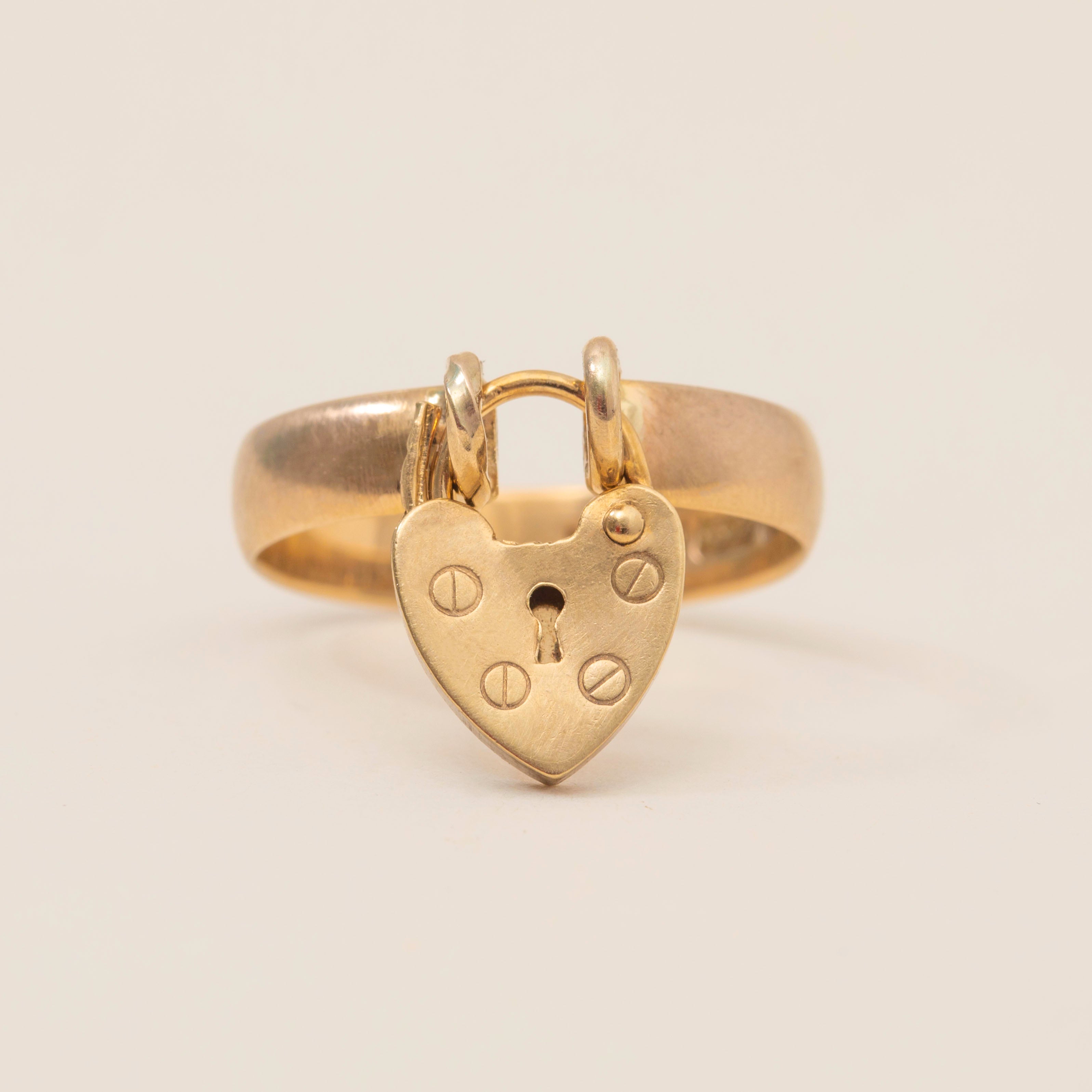 Antique 9ct Gold Ring with Heart Padlock Drop, c.1890