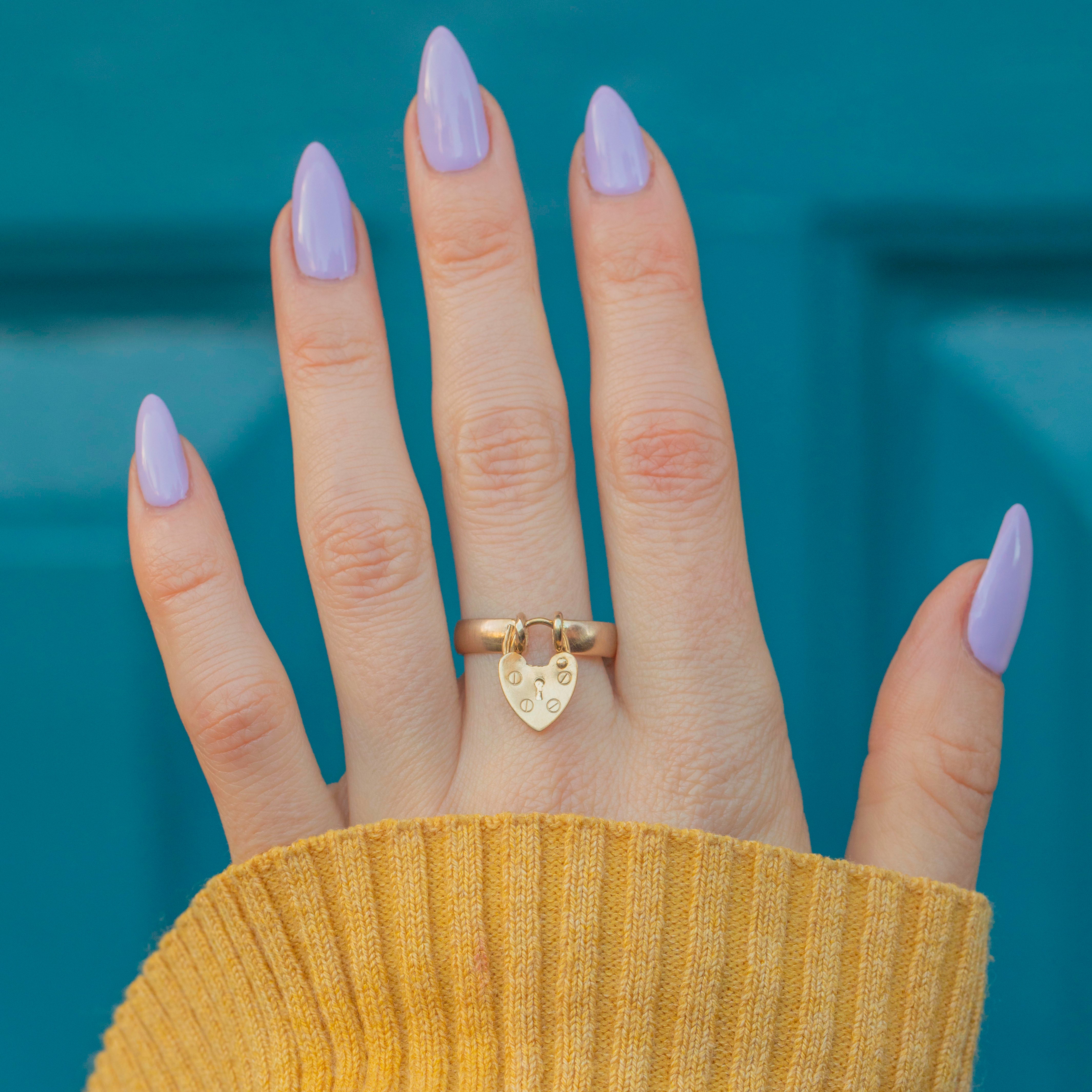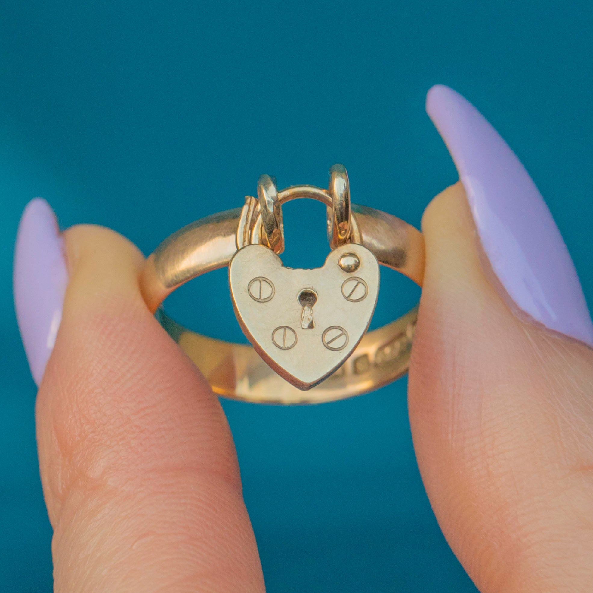 This antique 9ct Gold ring is oh-so-romantic! Featuring a heart padlock drop in the centre, this Victorian ring will make an adorable and sentimental piece to add to your collection.