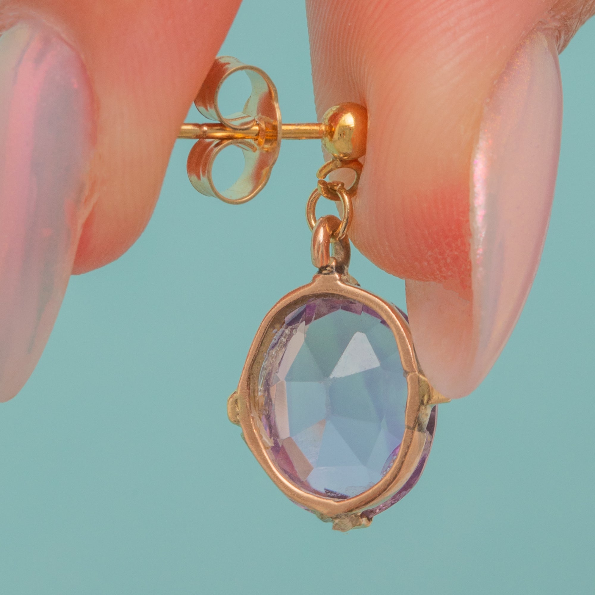 These Victorian 9ct Gold Rose de France Amethyst earrings will elegantly adorn your lobes!