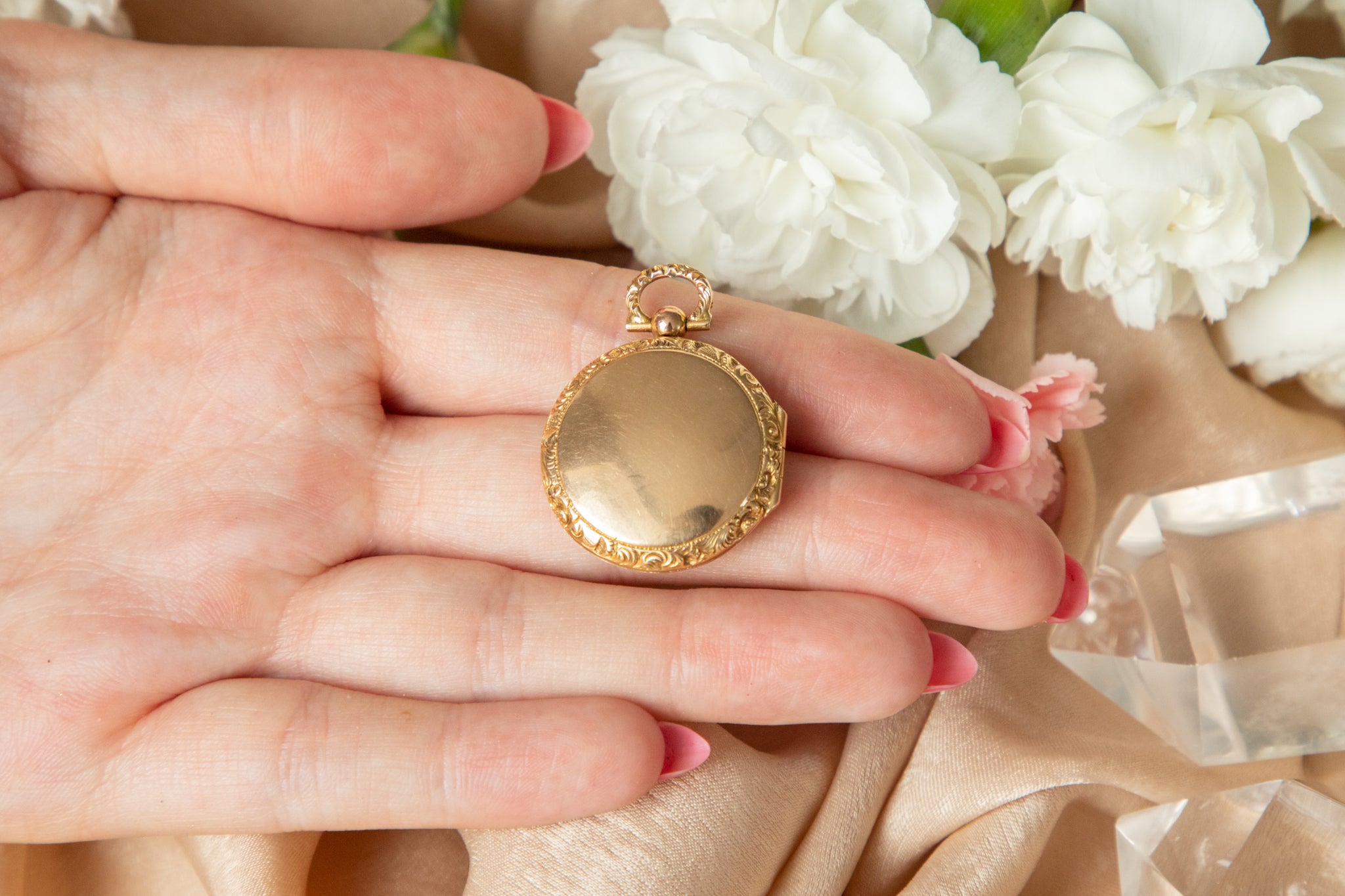 Antique 9ct Gold Round Embossed Locket