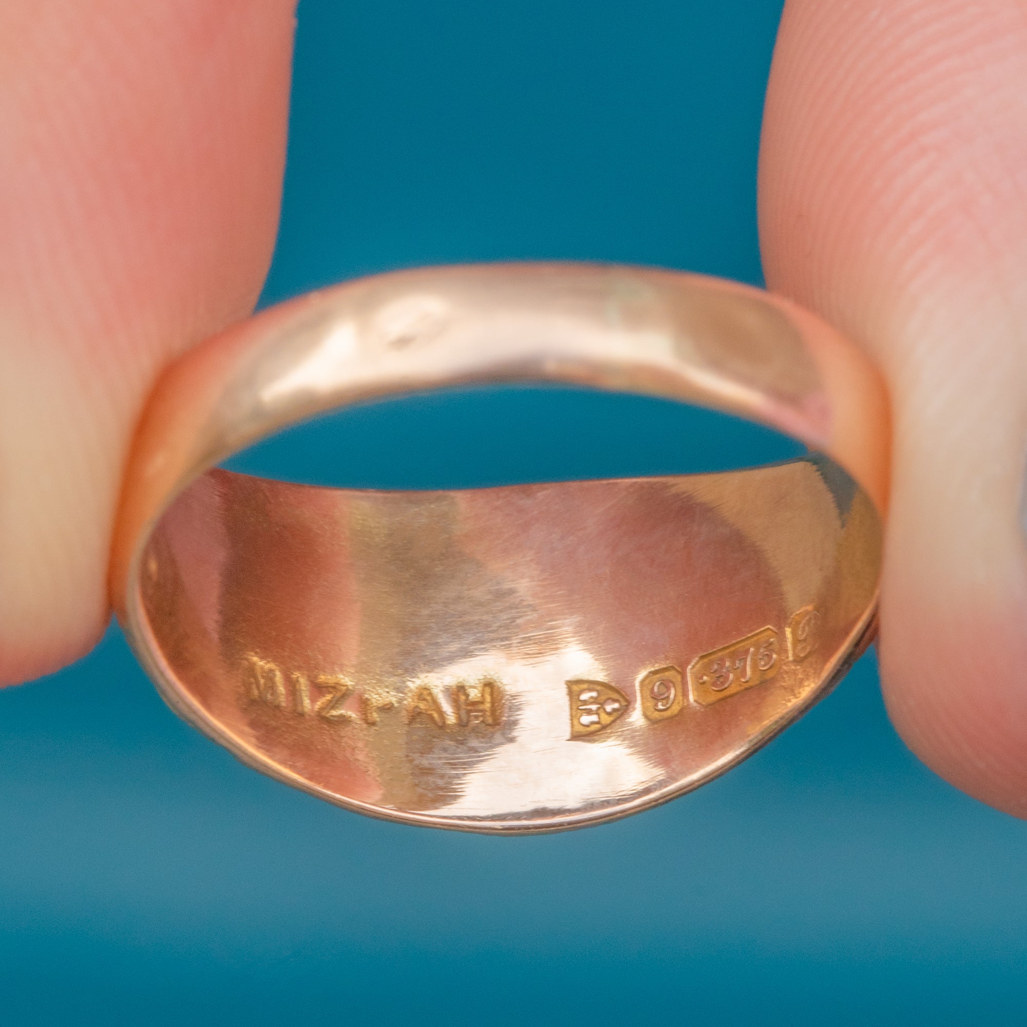 HALLMARKS: MIZPAH on inside, Chester assay, 9, .375, Date letter B for the year 1902.