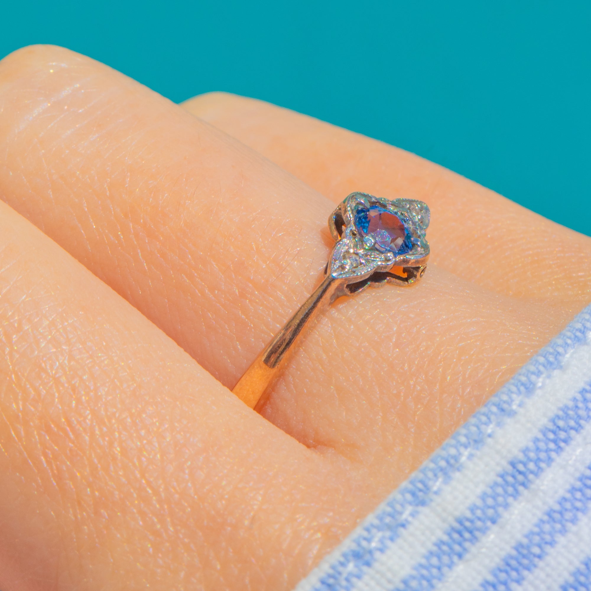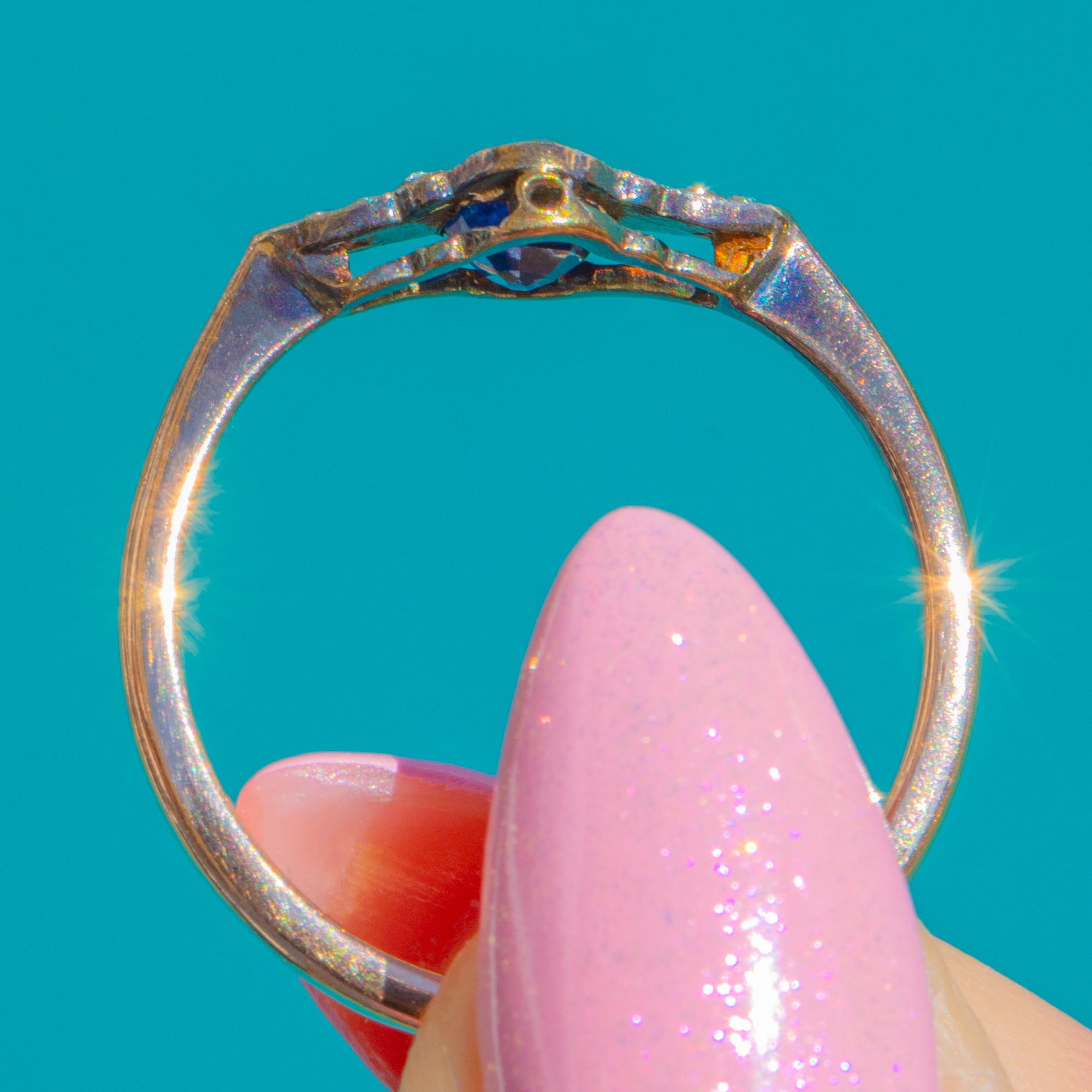 With its refined proportions, crisp detailing and gentle sparkle, this piece captures the romantic charm of the Edwardian-to-Art Deco transition. Understated yet distinctive, it’s an effortless choice for everyday elegance or a treasured “something blue”.