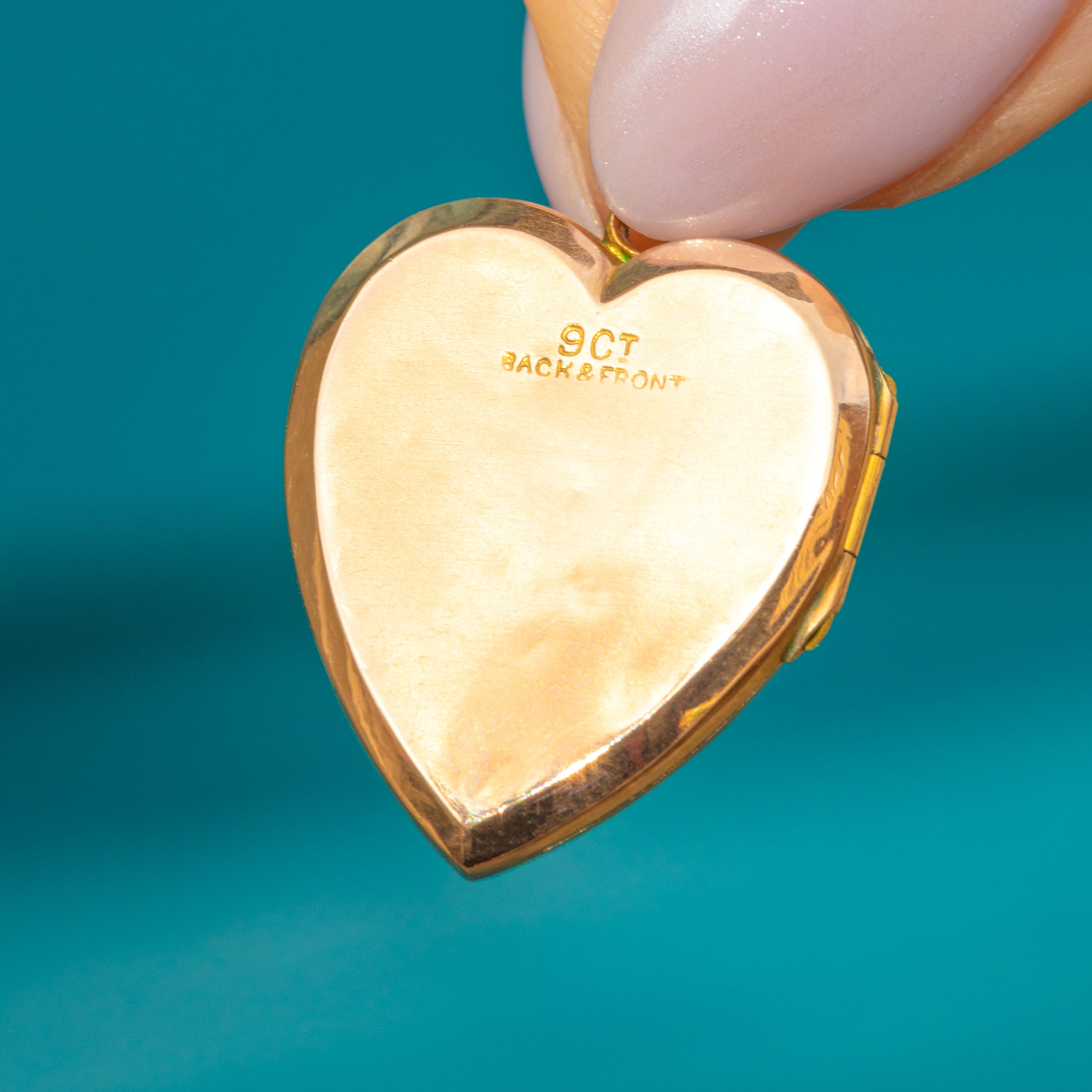 STAMPS: "9CT BACK & FRONT" on the back of the locket.