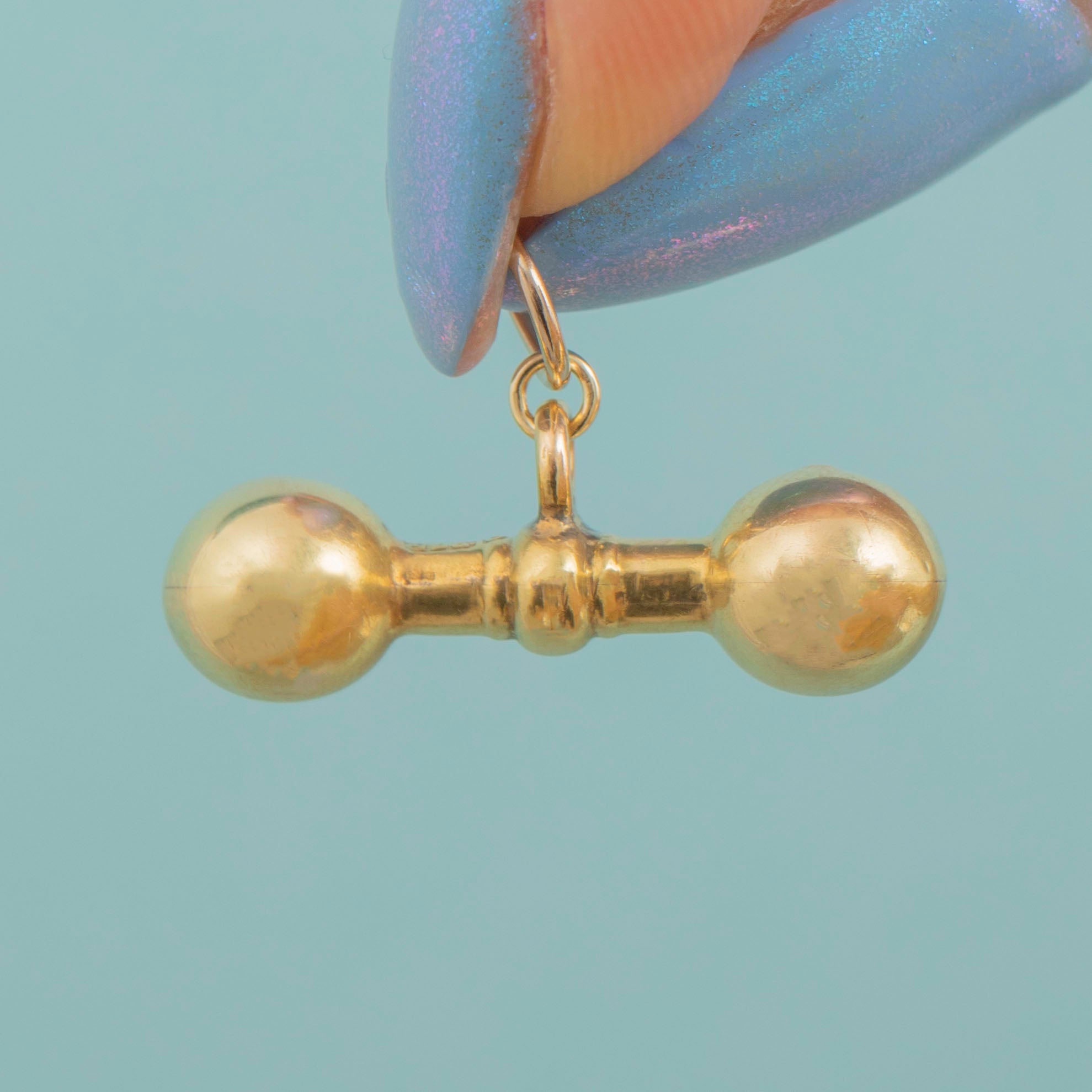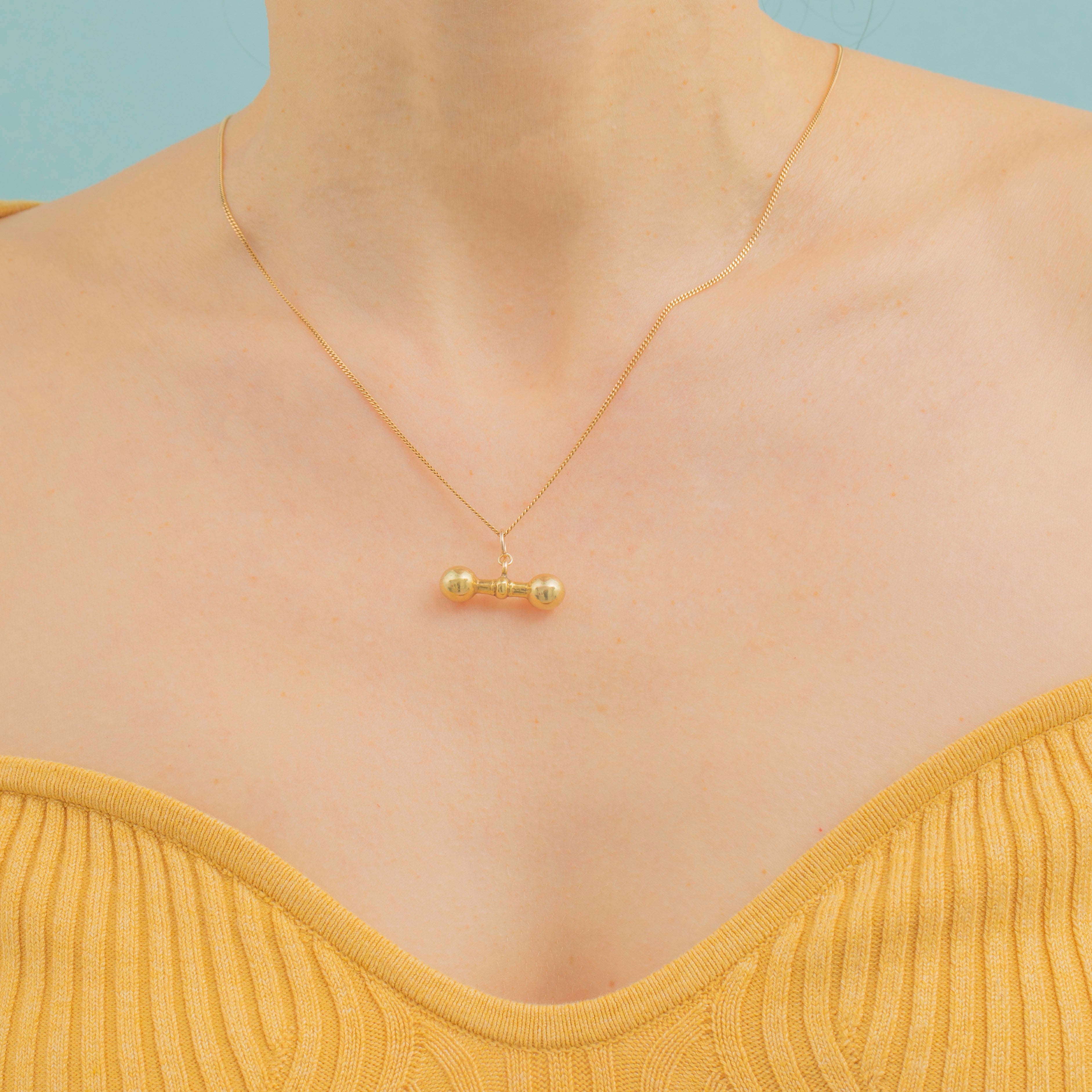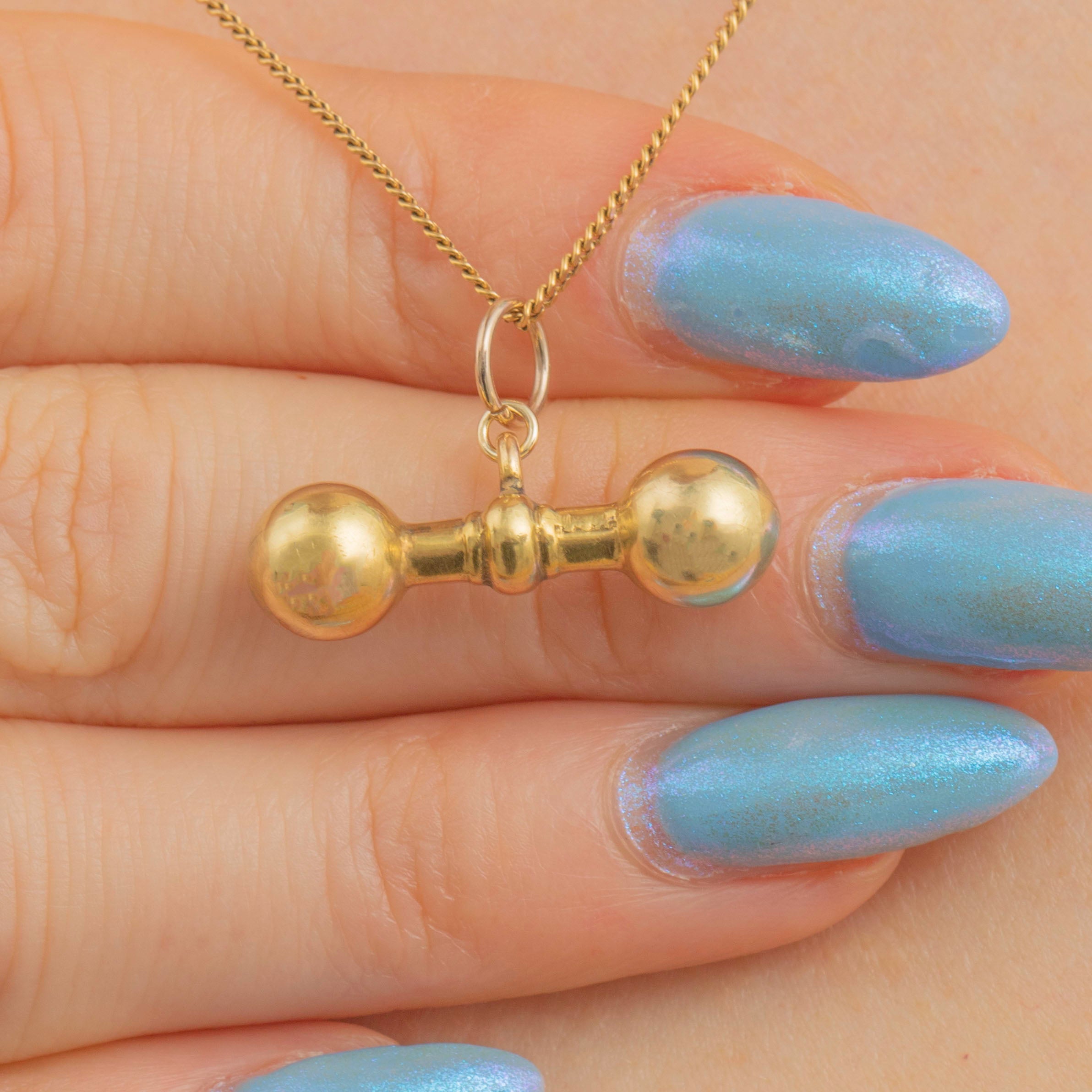 This sumptuous antique 9ct Gold t-bar pendant will make a bold admornment for a skinny Gold chain! This chubby little treat has been crafted from solid, buttery 9ct Gold with a satin finish for a luxurious touch. The generous proportions of the t-bar gives it a unique edge, with the oversized balled ends making it a standout piece.