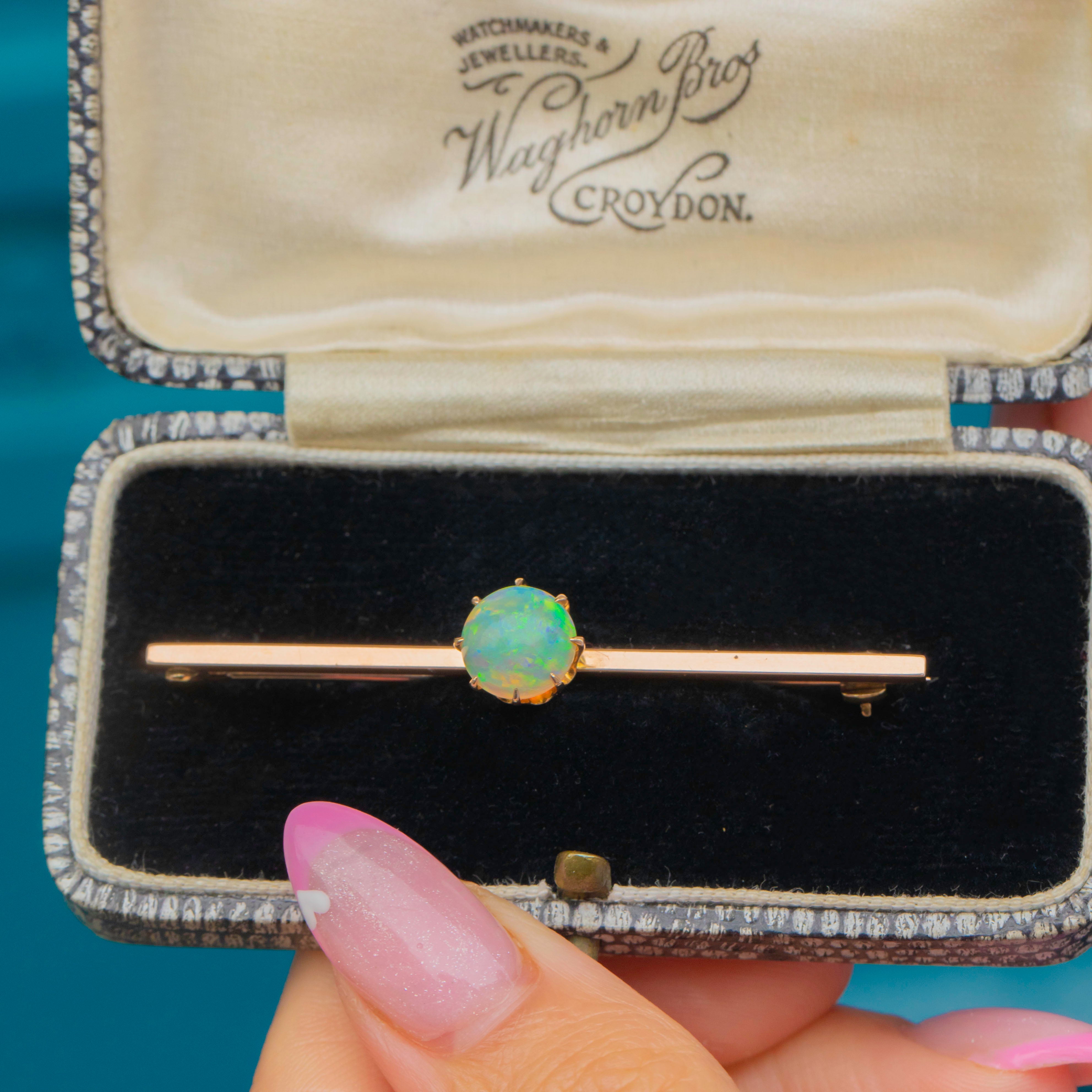 Antique Edwardian 9ct Gold Natural Opal Bar Brooch, Original Case.