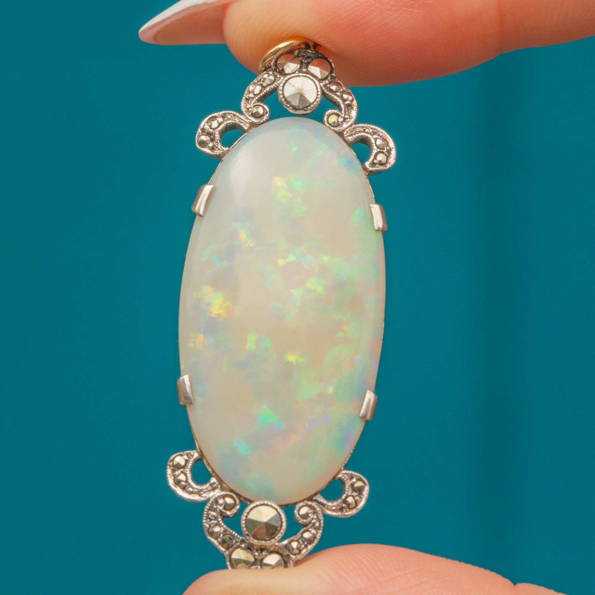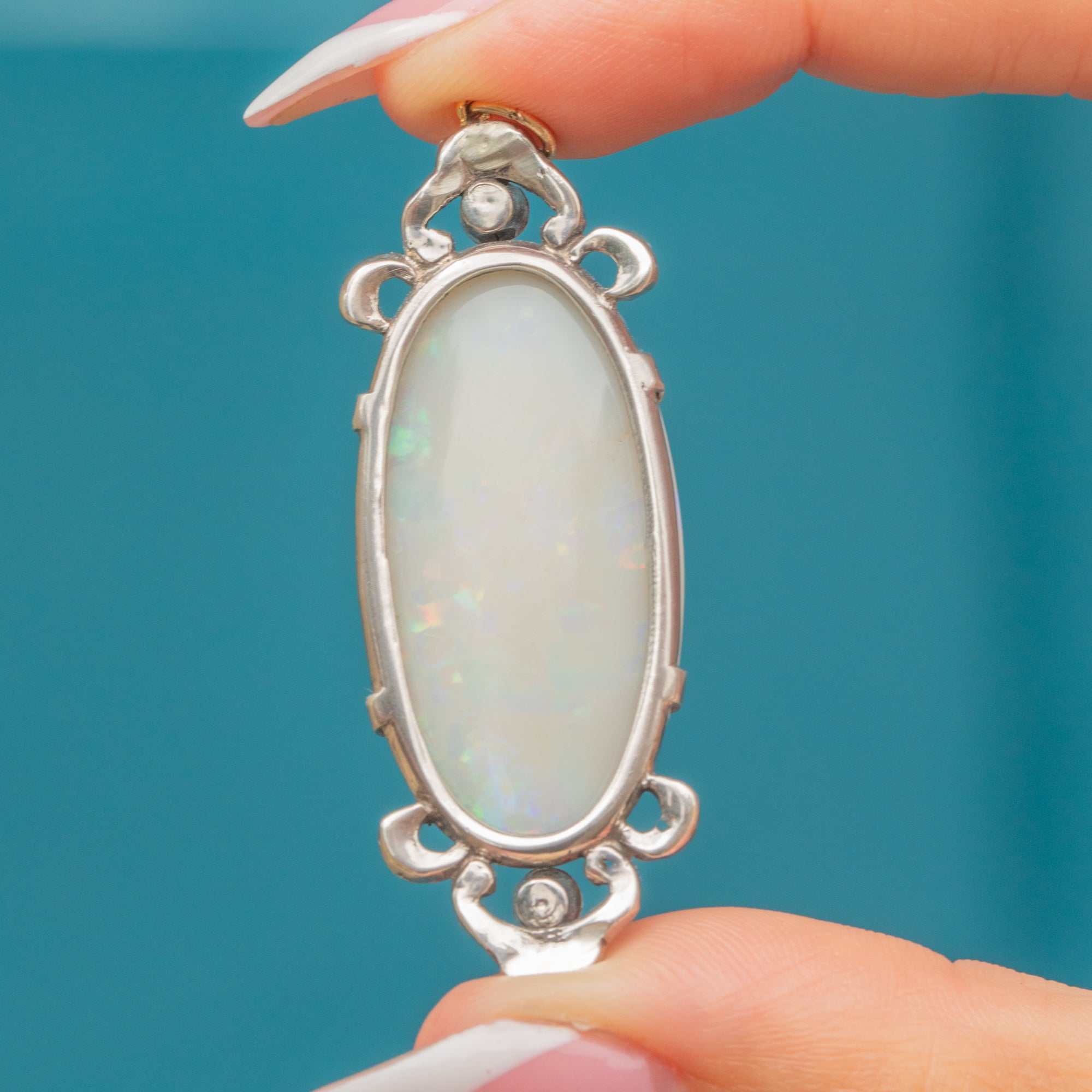 An exquisite Edwardian pendant featuring a stunning 15.40ct solid Opal, set in classic Silver.