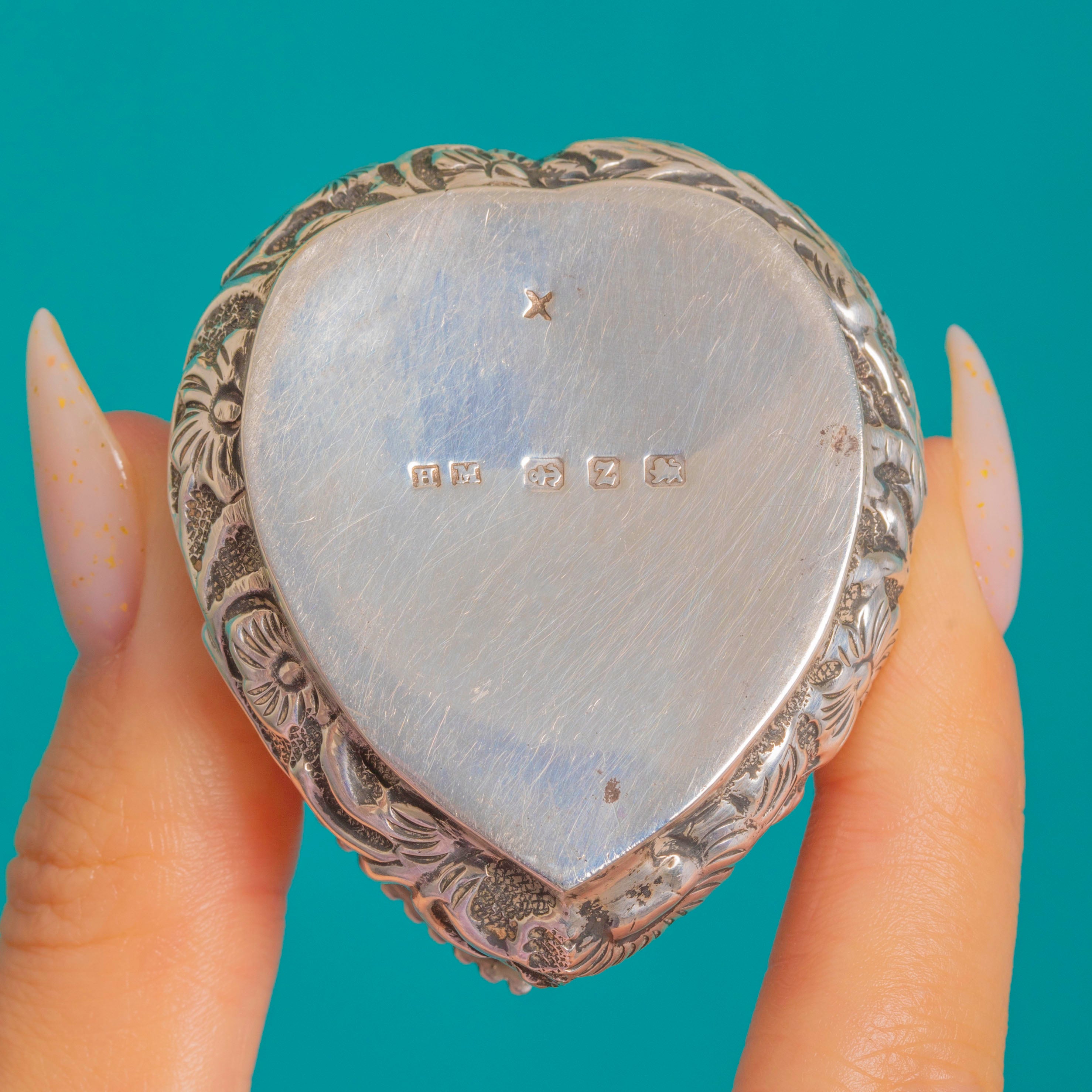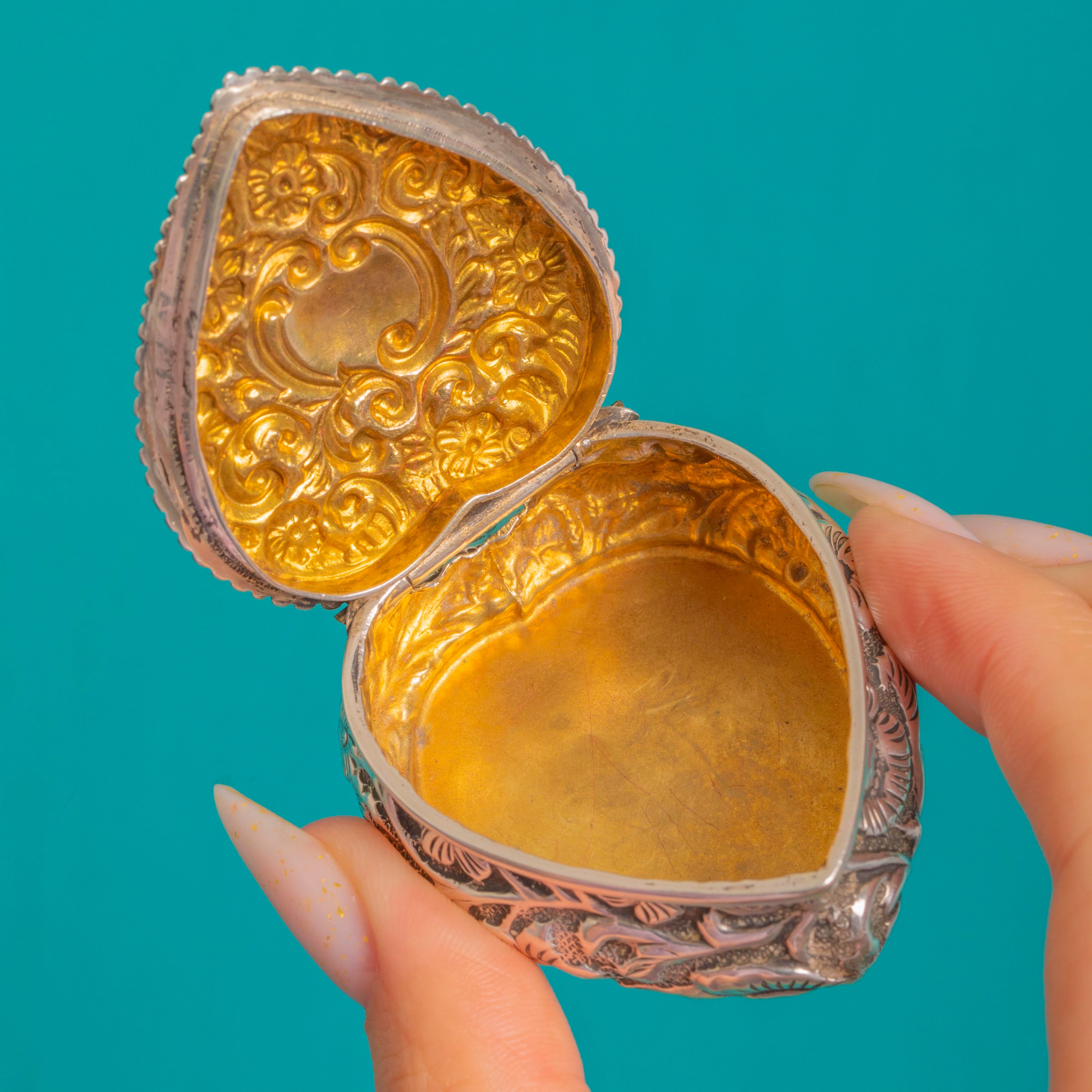 Antique Embossed Silver Heart Trinket Box, c.1889