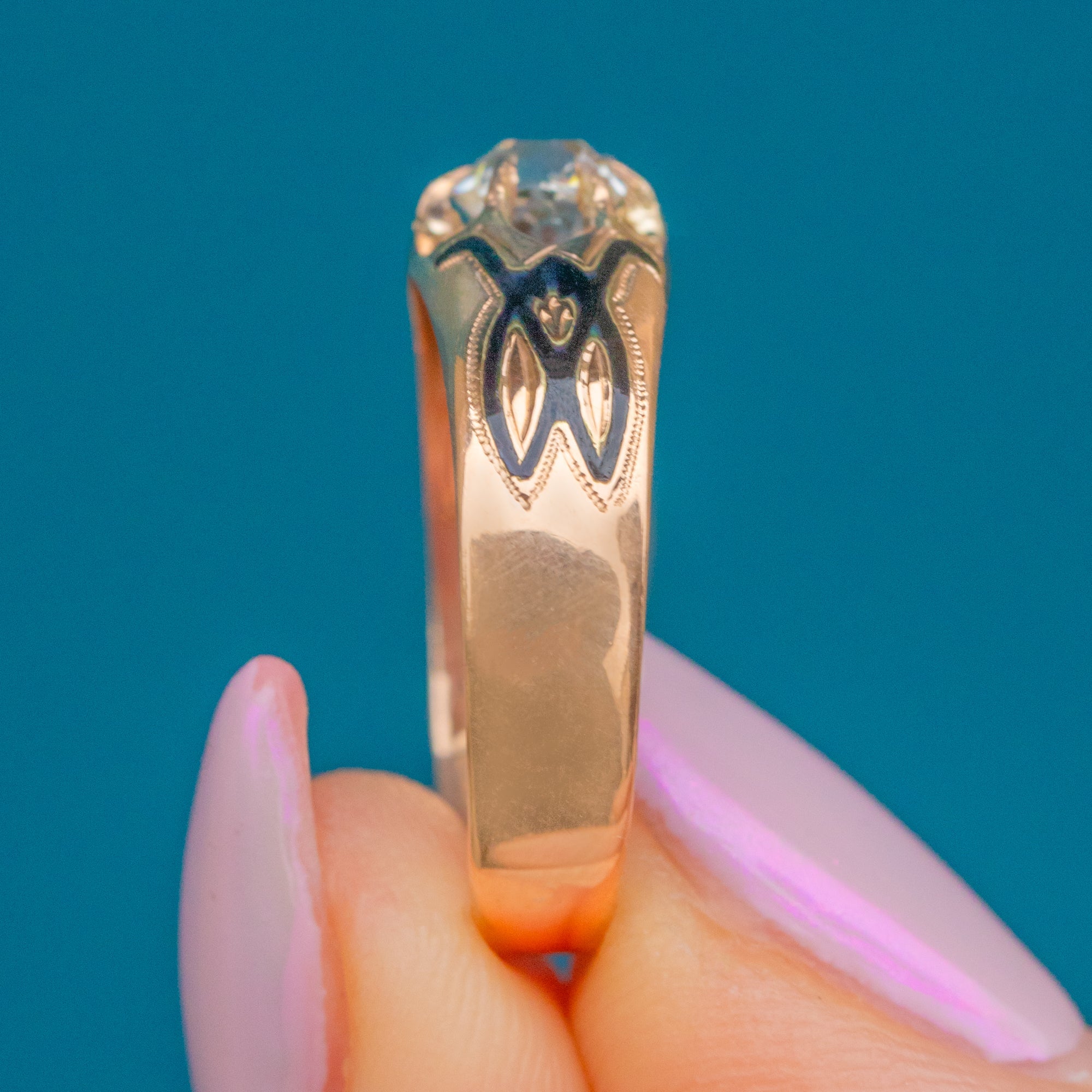 Stamped with the French horse head mark for 15ct Gold, this ring is a refined example of late 19th-century French craftsmanship. Elegant and full of antique charm, it makes a perfect statement ring or unique engagement piece.