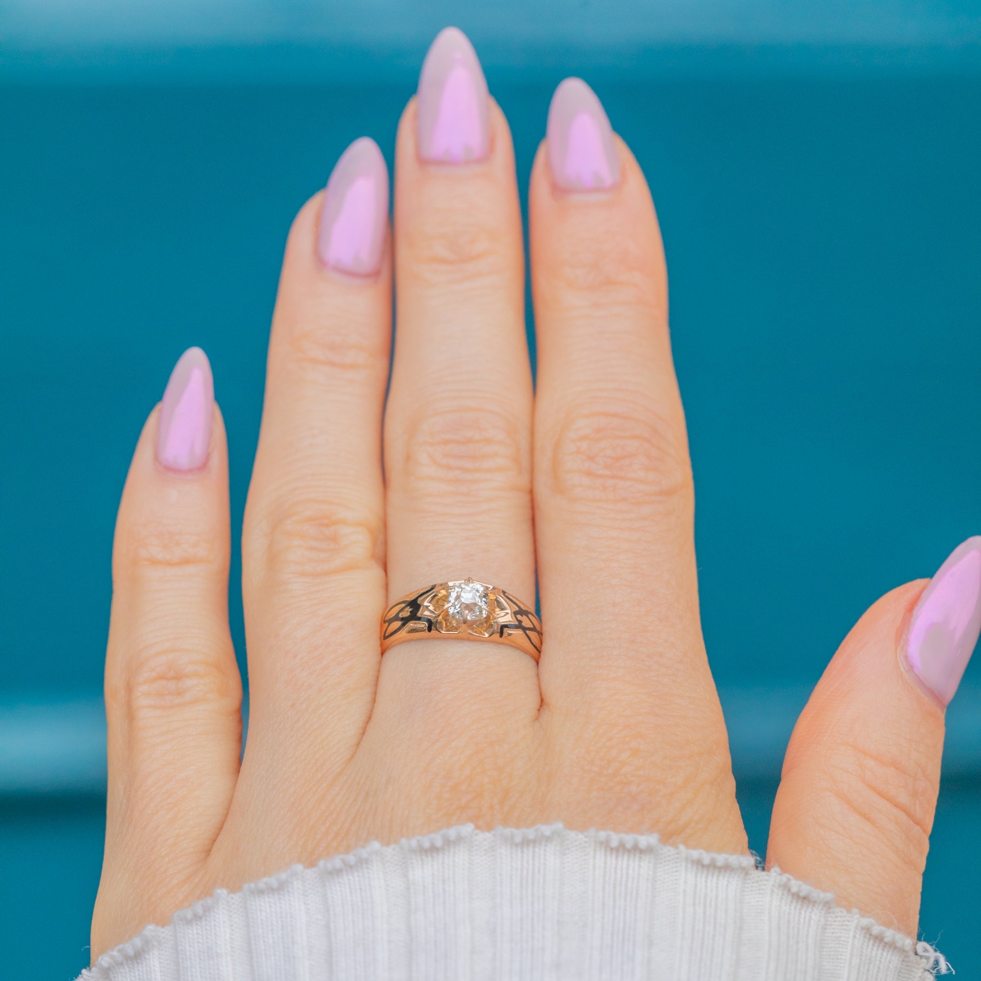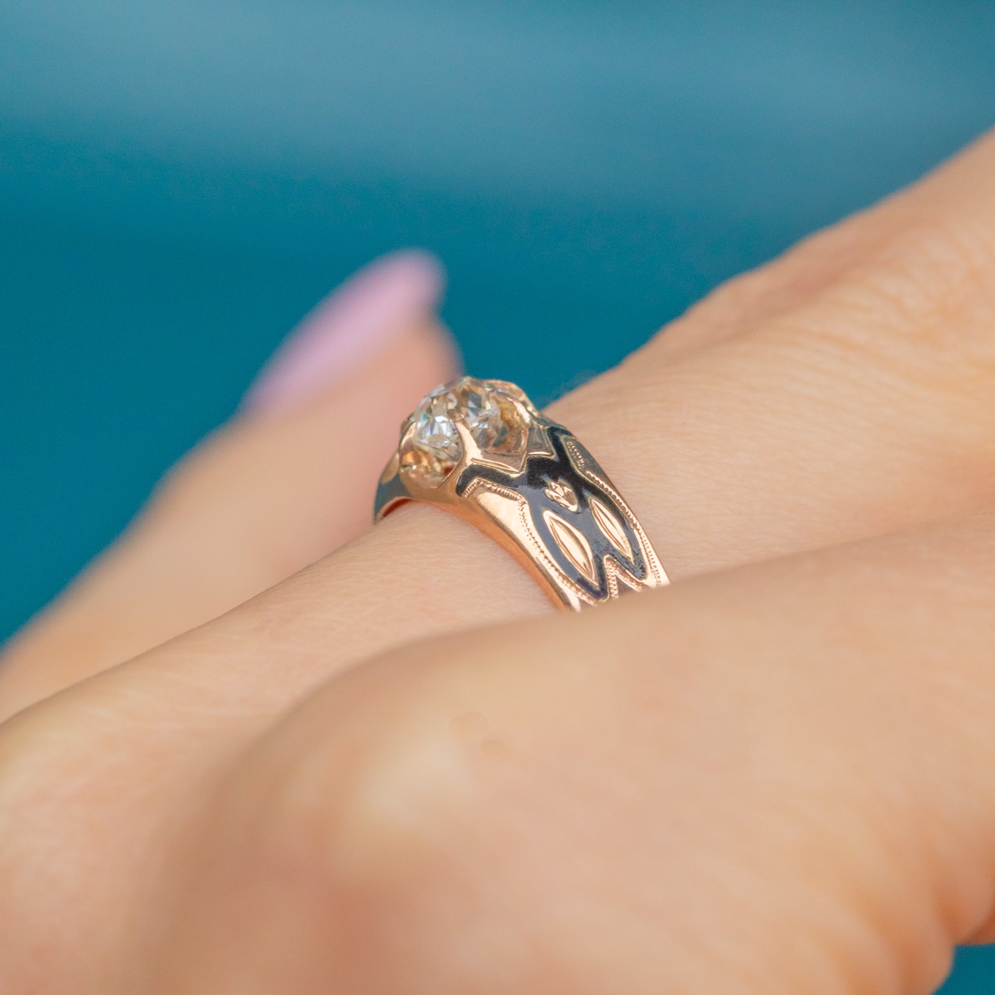 Antique French 15ct Gold Black Enamel Peruzzi-Cut Diamond Ring