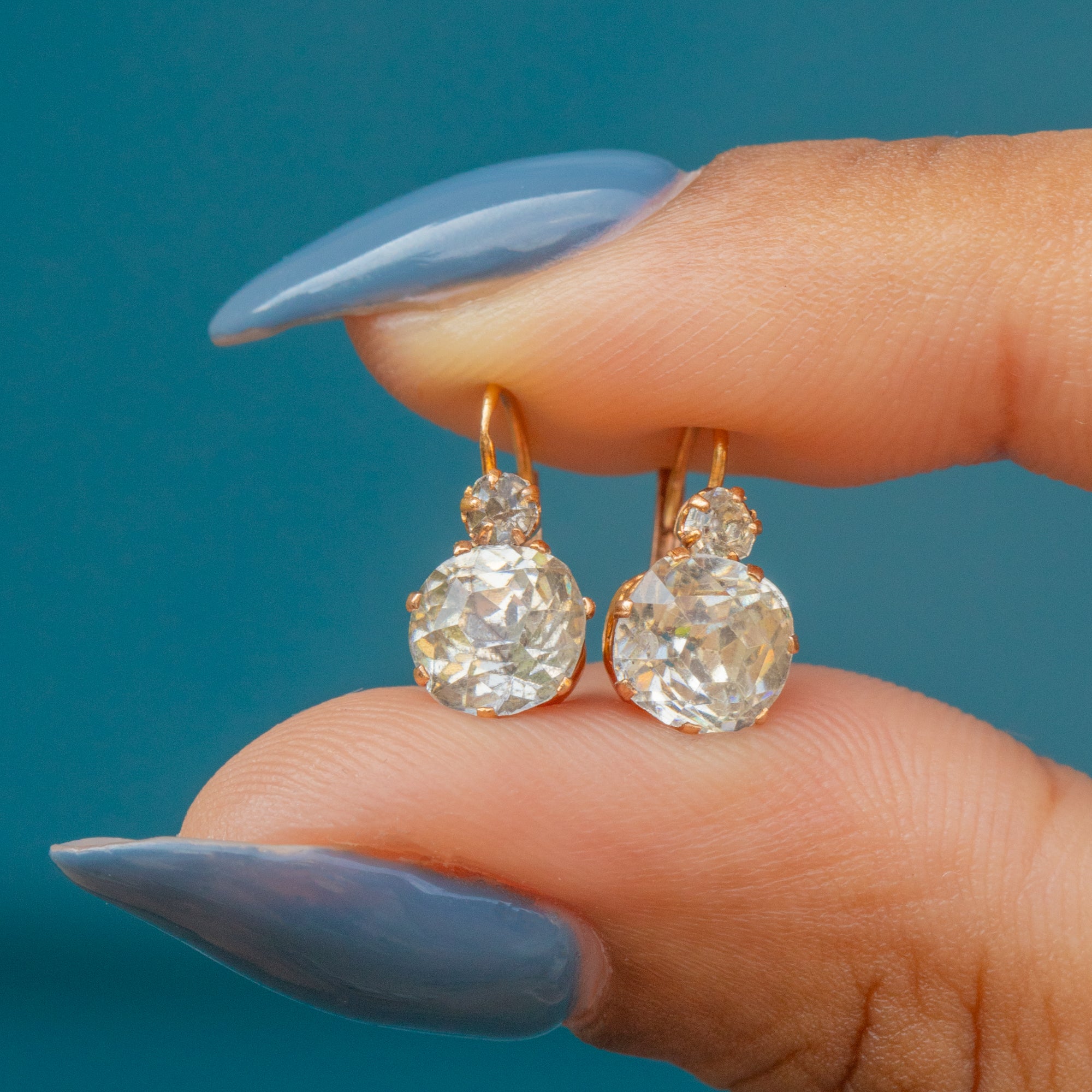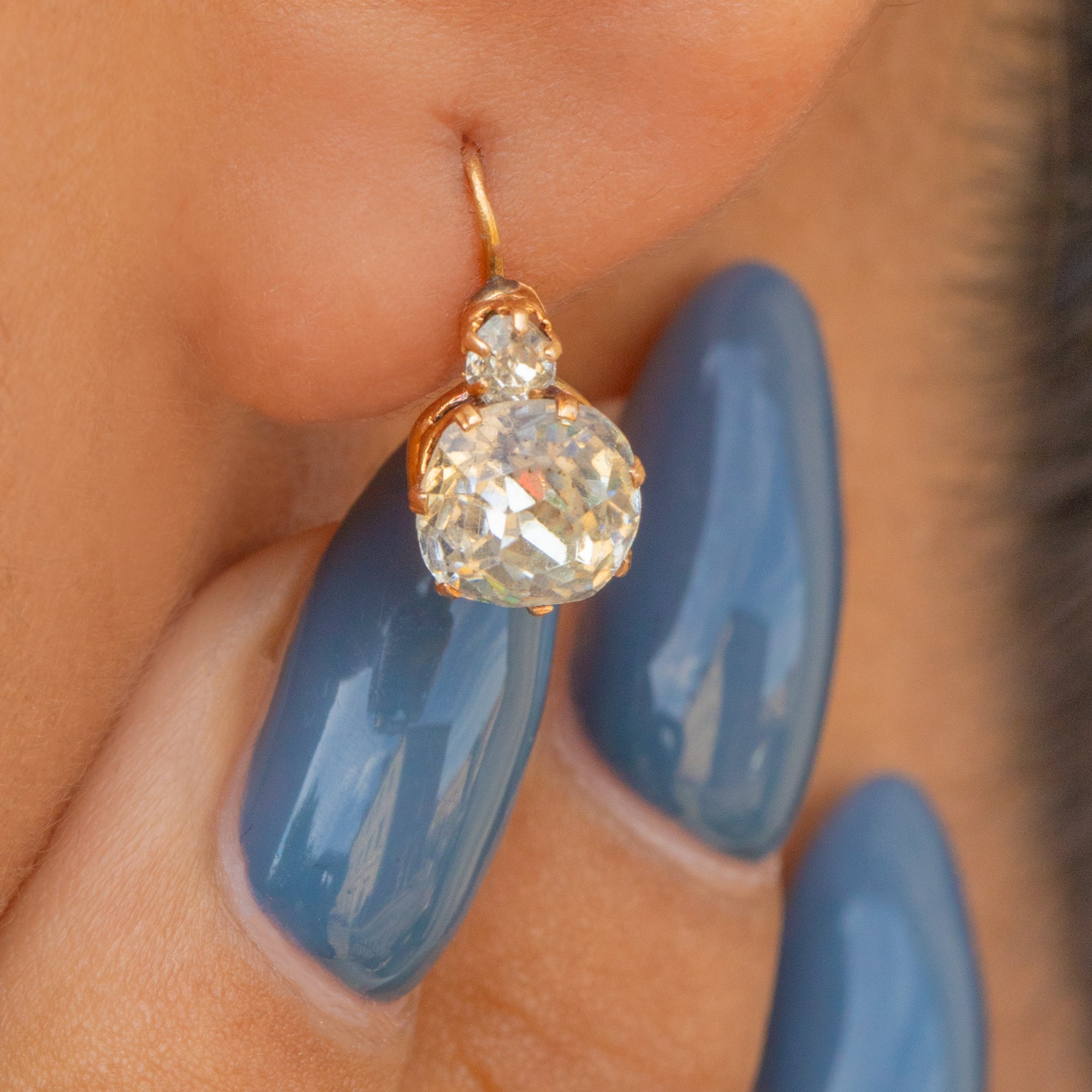 Antique French 18ct Gold Paste Dormeuse Earrings