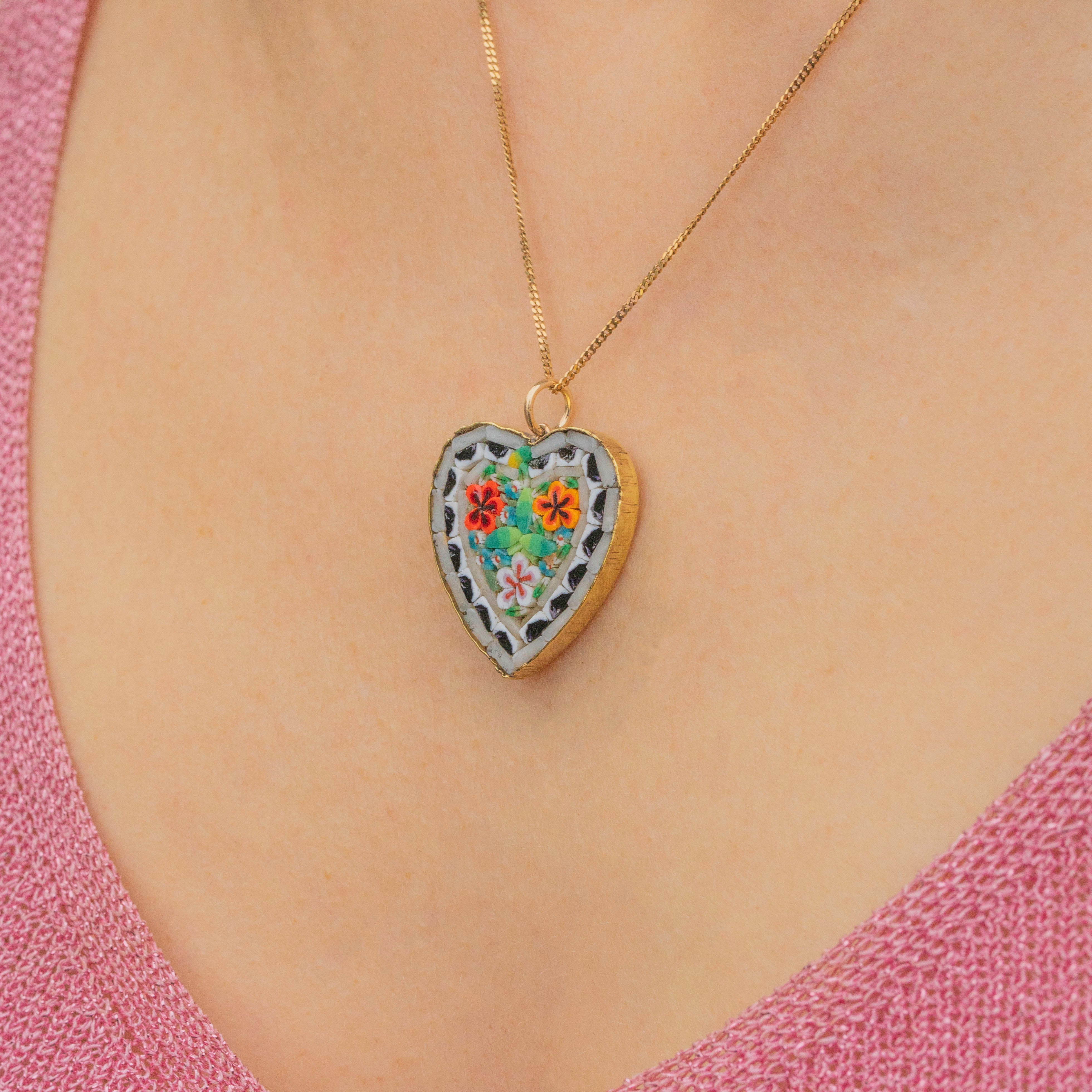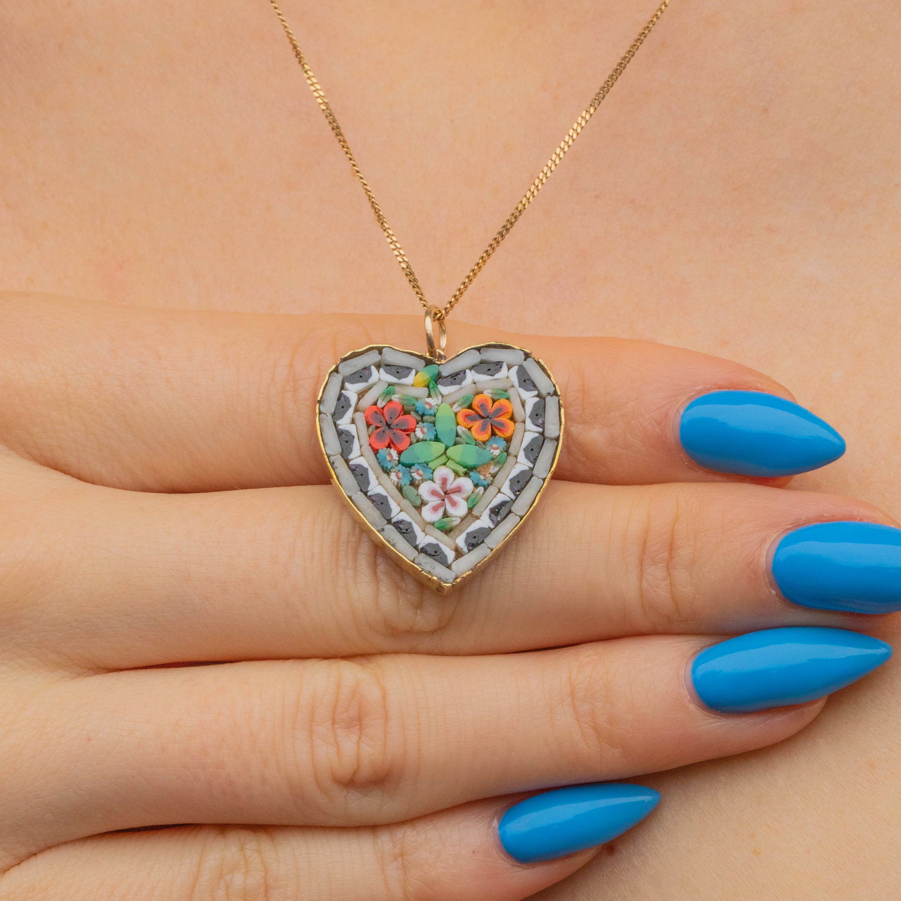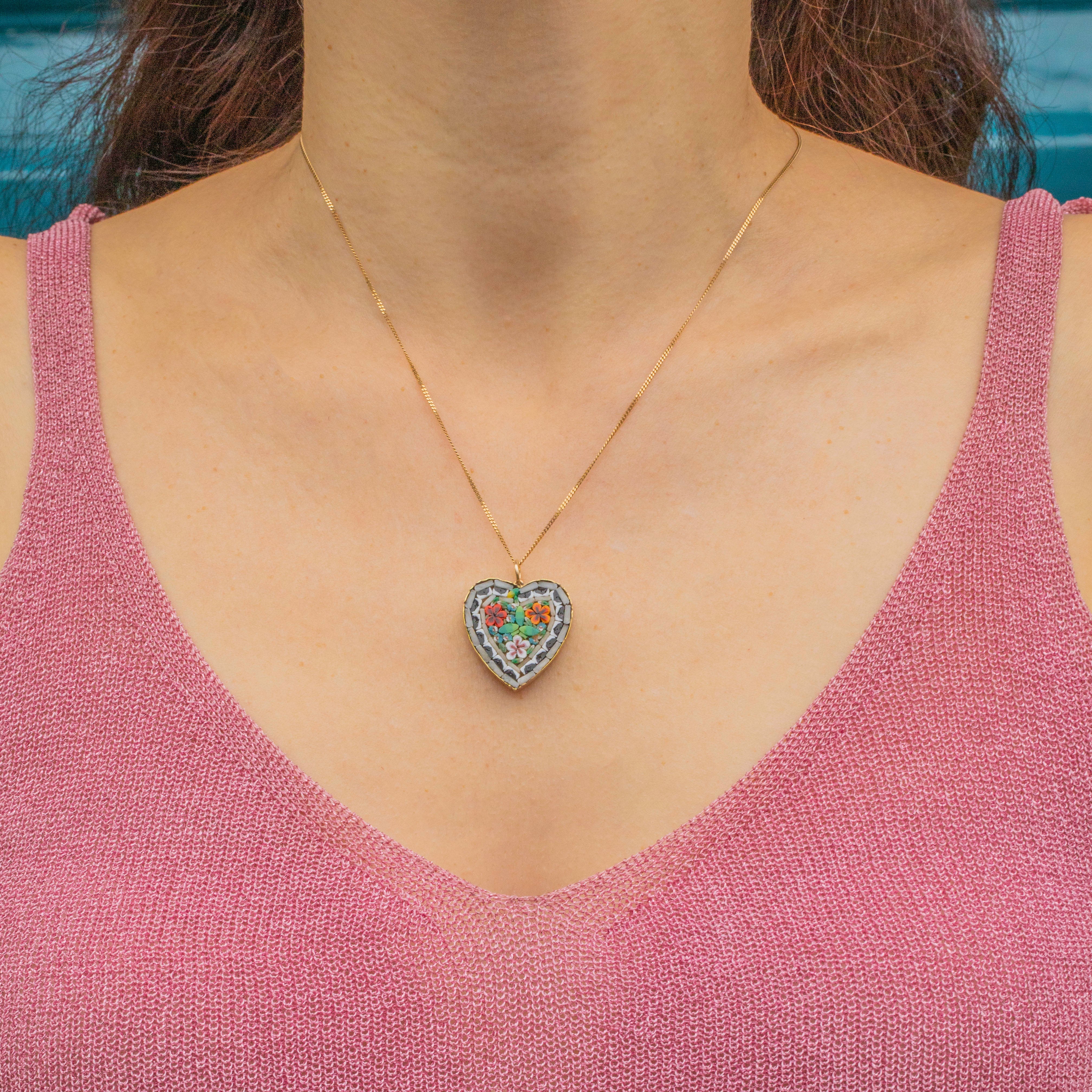 You will instantly fall in love with this antique micro mosaic heart pendant! This alluring piece boasts plenty of character and has much beauty to absorb.