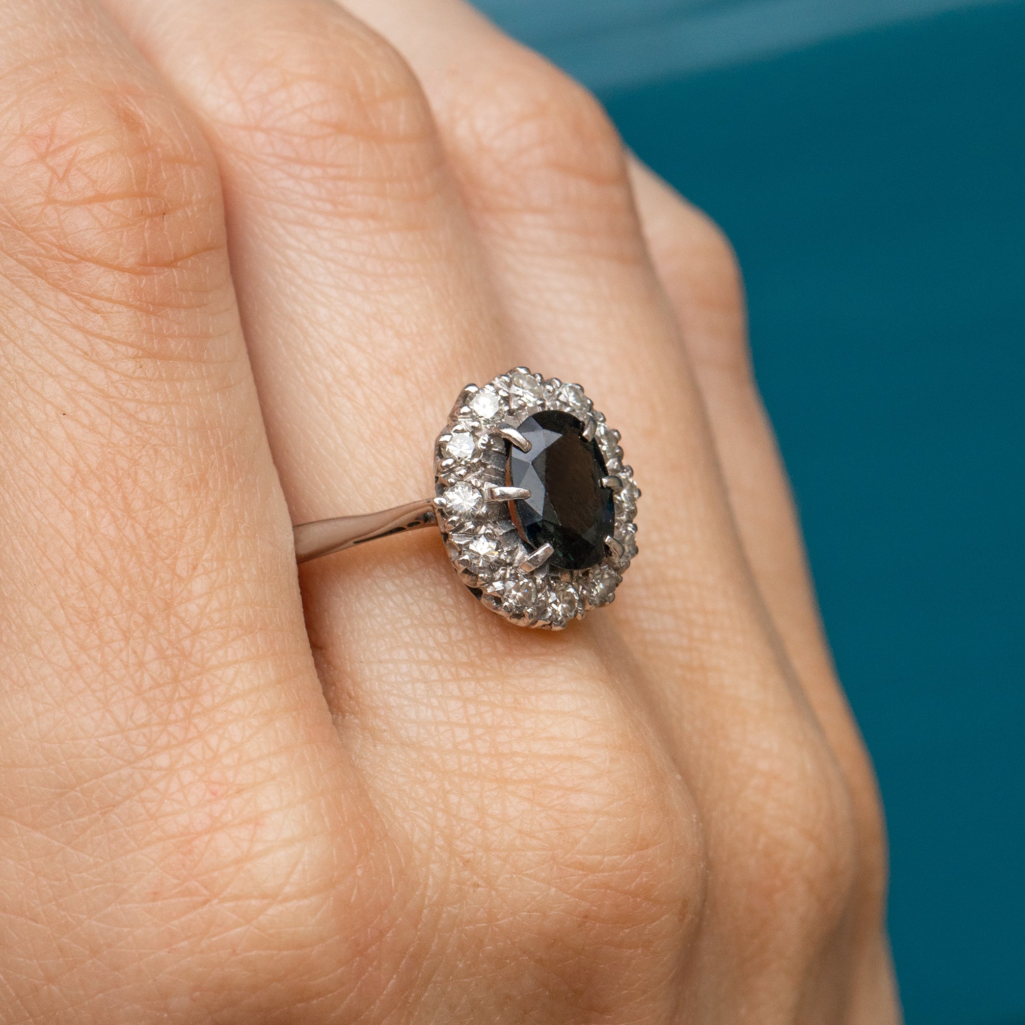Antique Natural Sapphire Diamond Cluster Ring, 1.60ct Sapphire