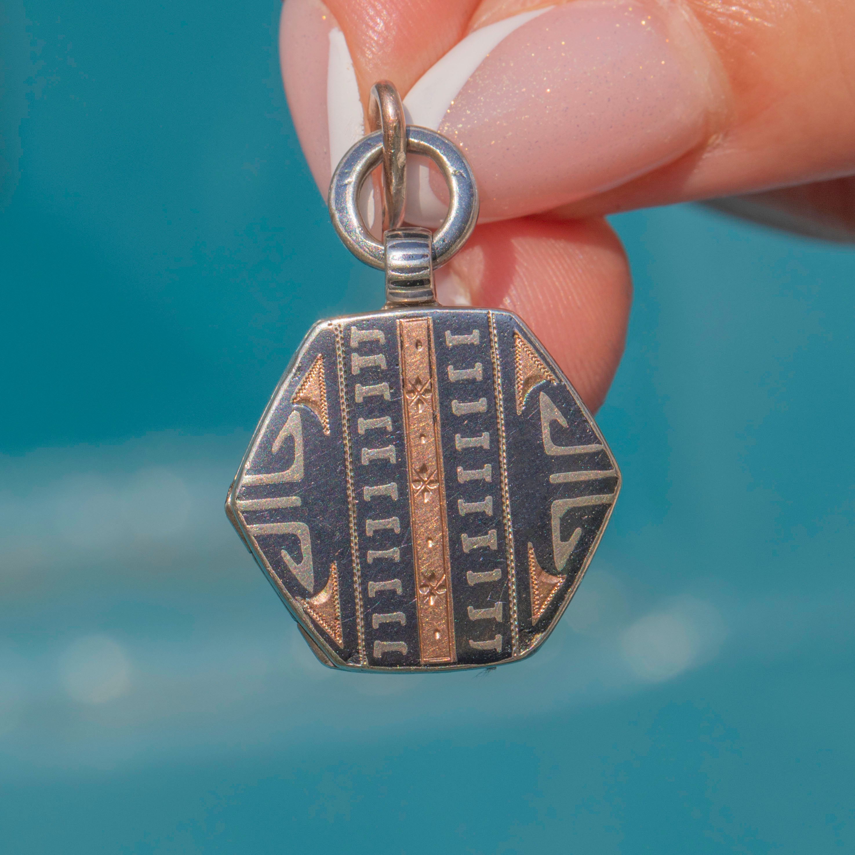 Antique Niello Hexagonal Locket, Attributed to Gustav Hauber