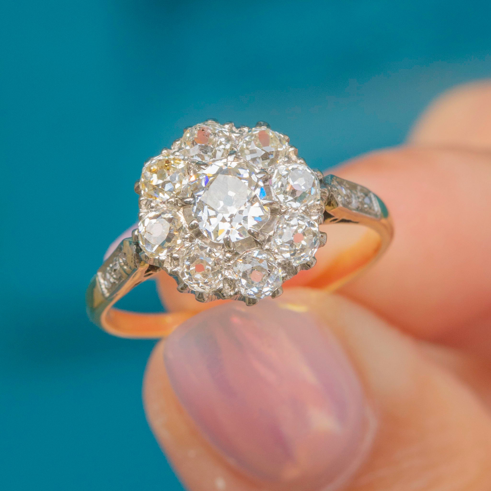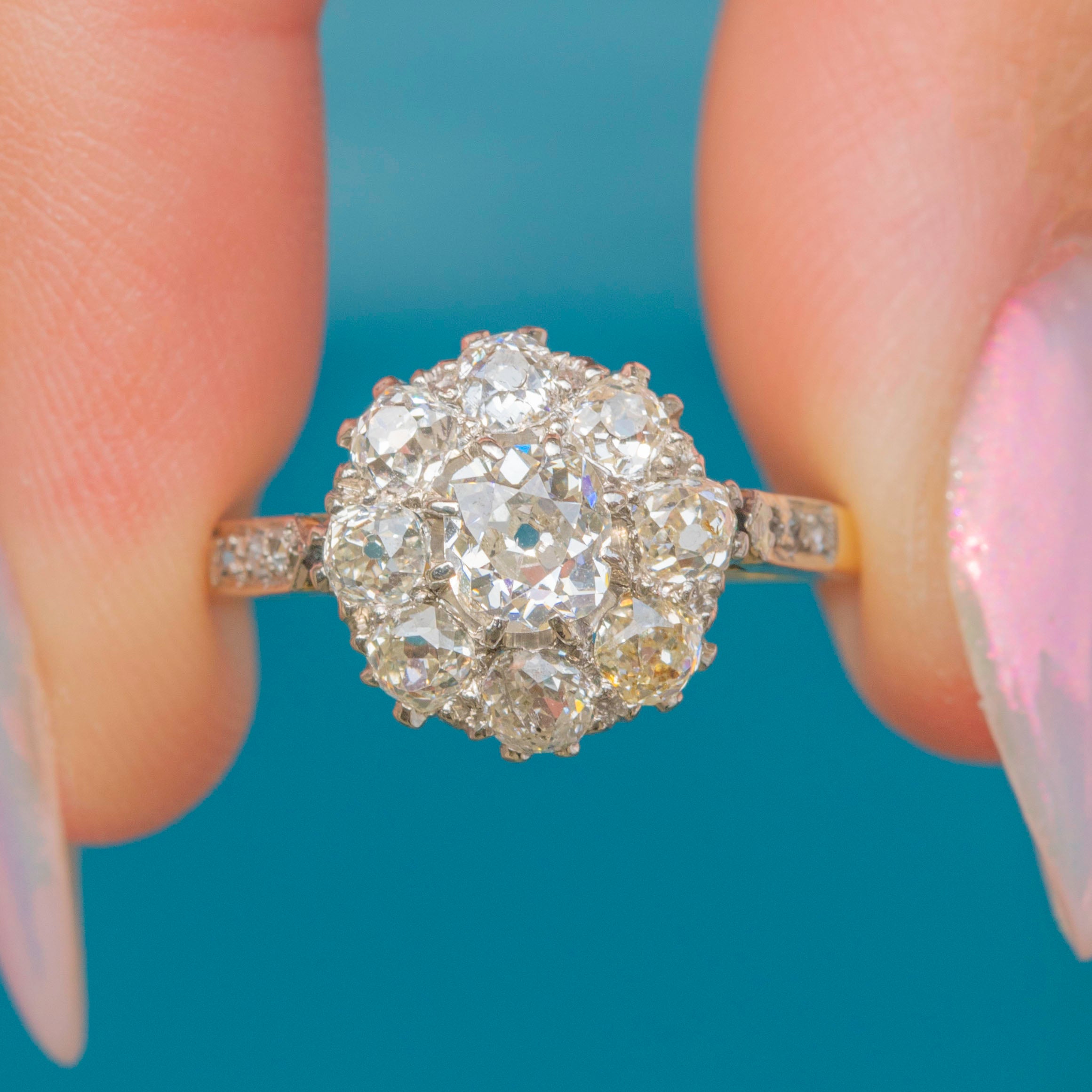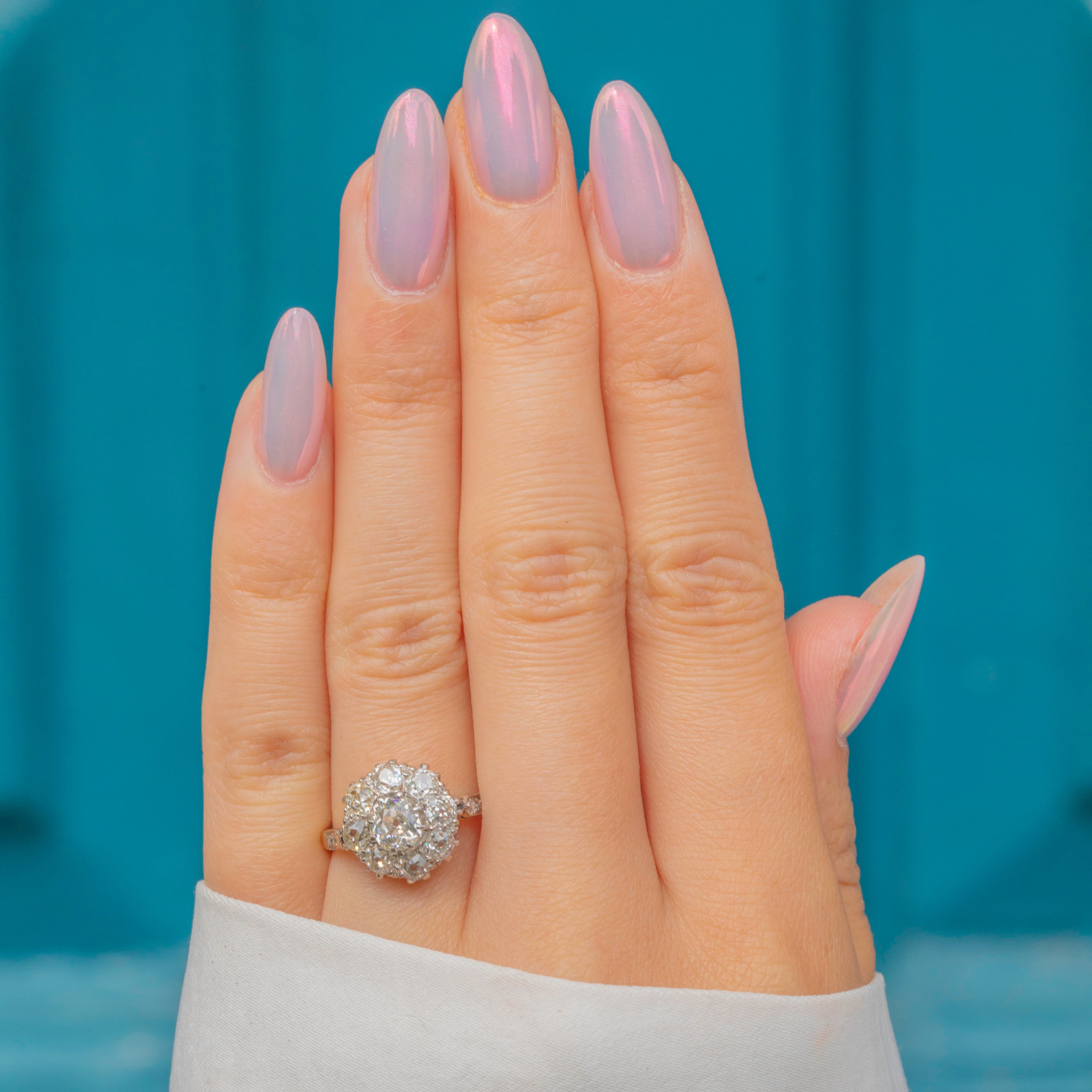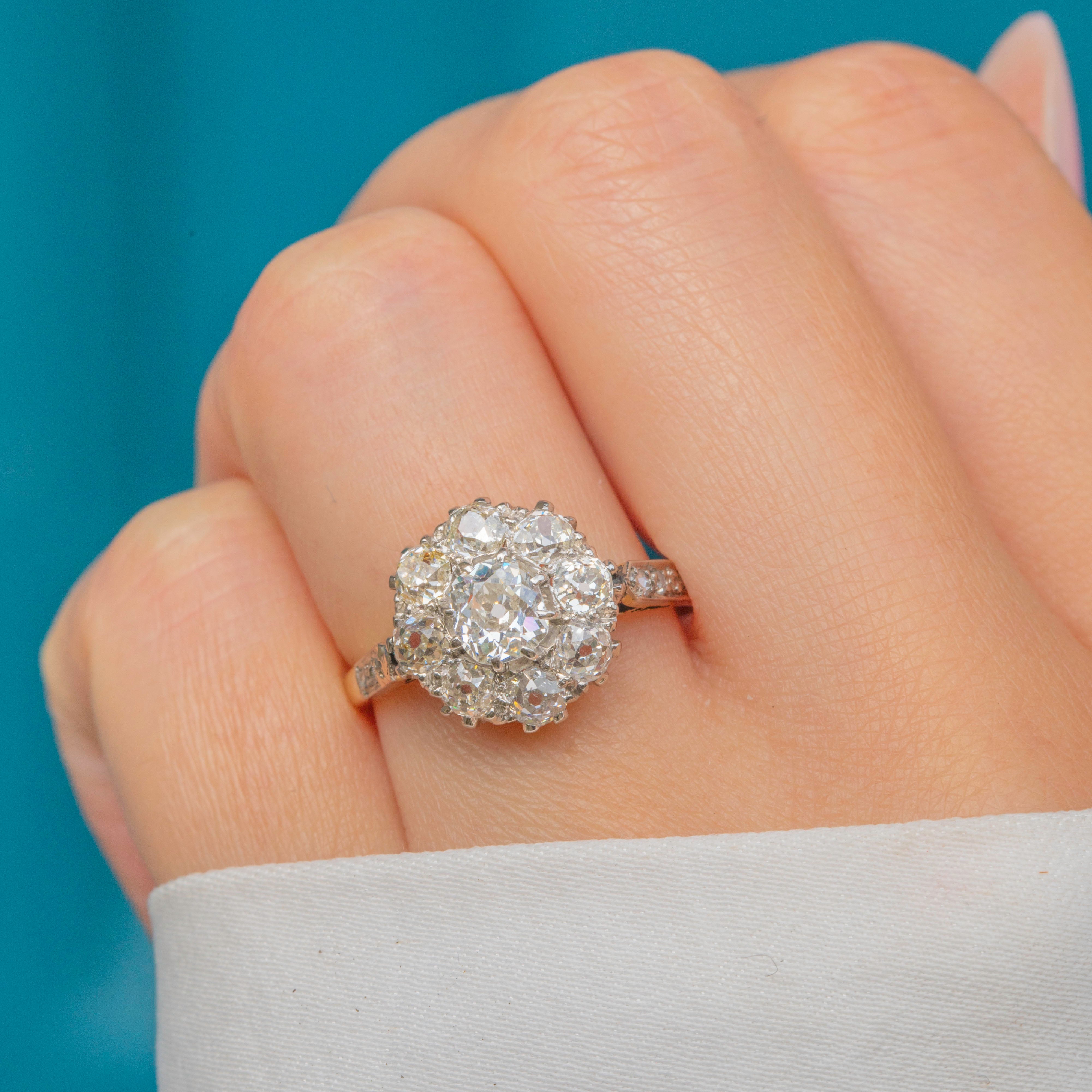This 1.00ct 18ct Gold & Platinum Victorian old-mine-cut Diamond cluster ring is simply stunning!
