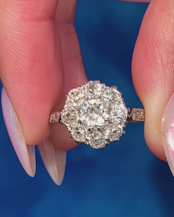 Antique Old-Mine Cut Diamond Cluster Ring 1.00ct, 18ct Gold & Platinum
