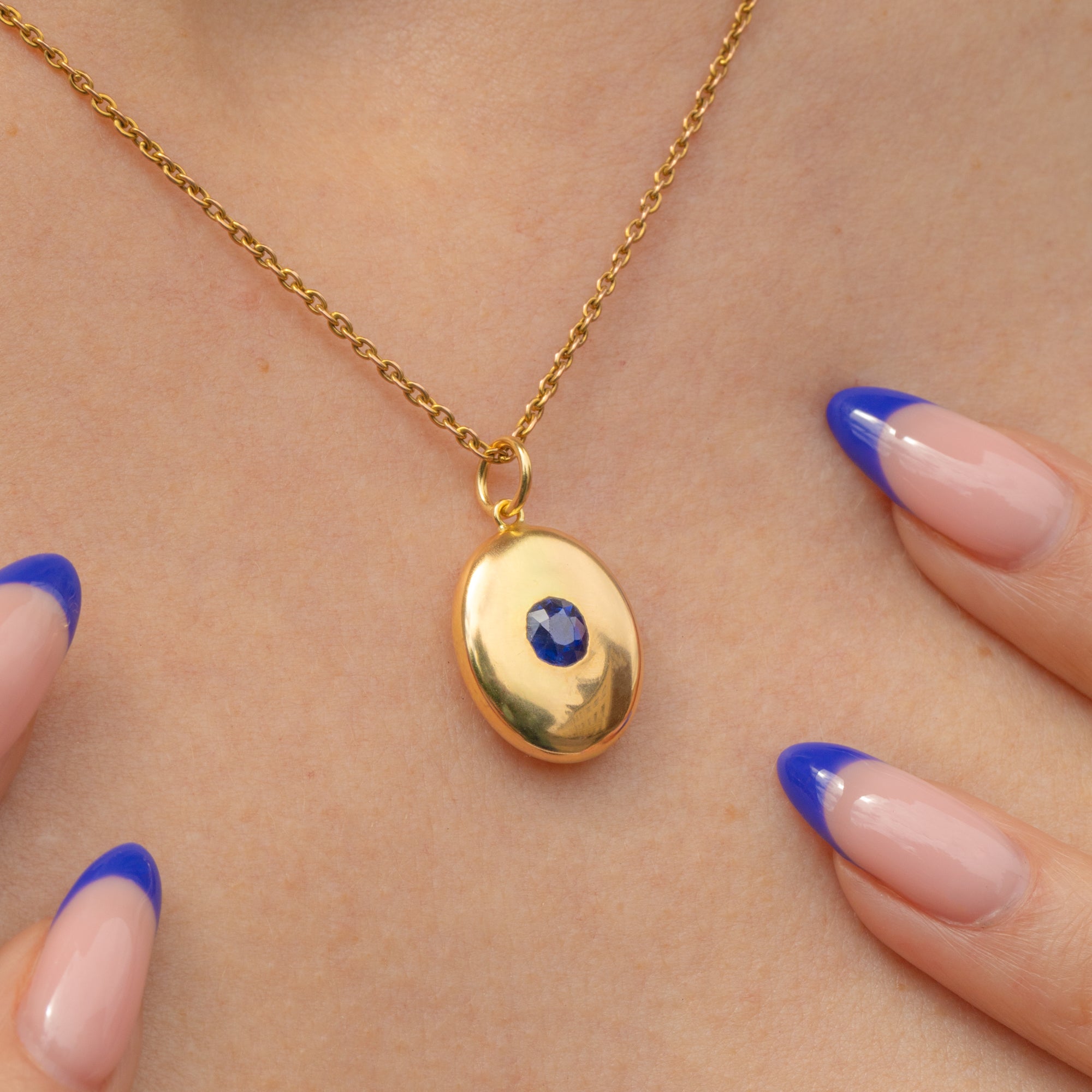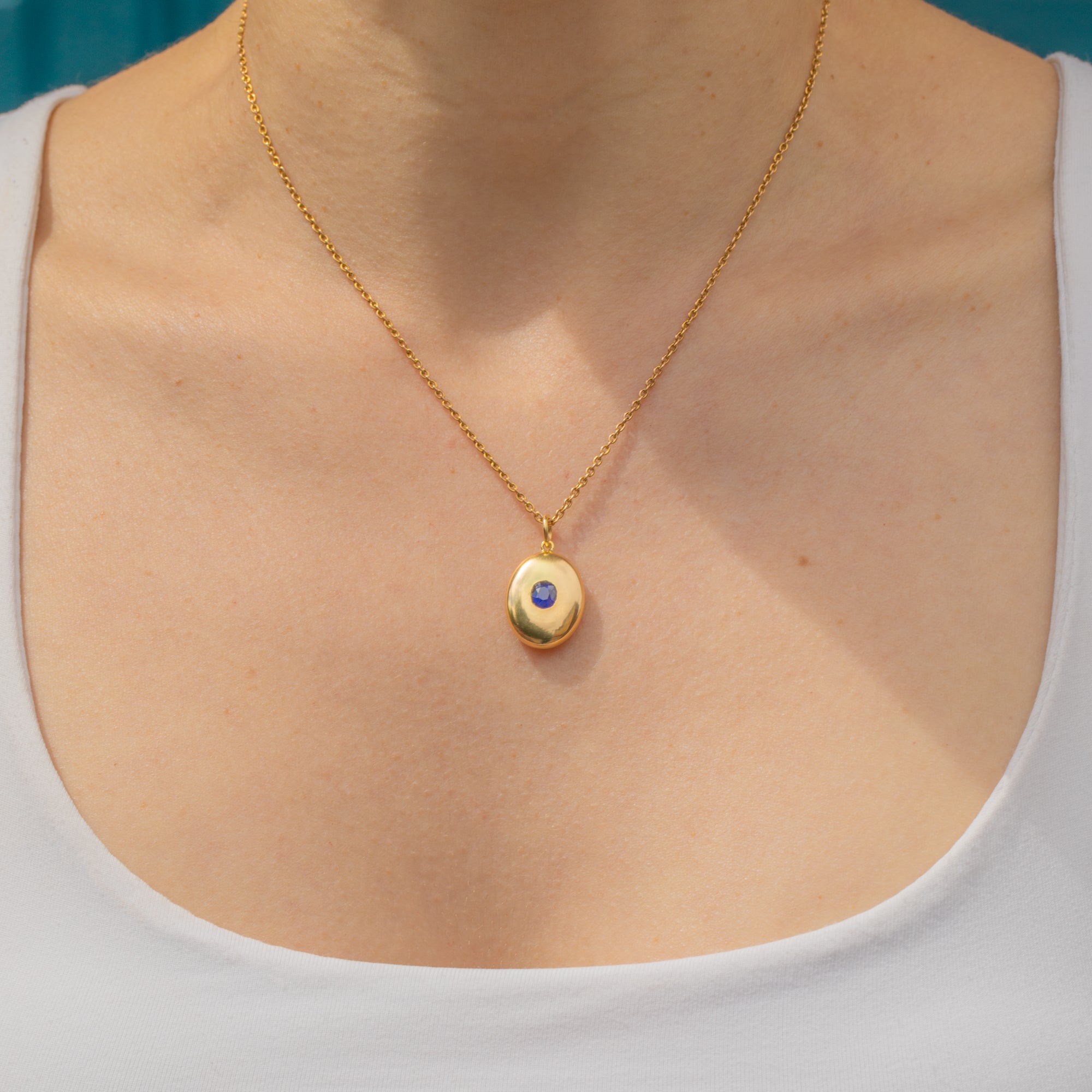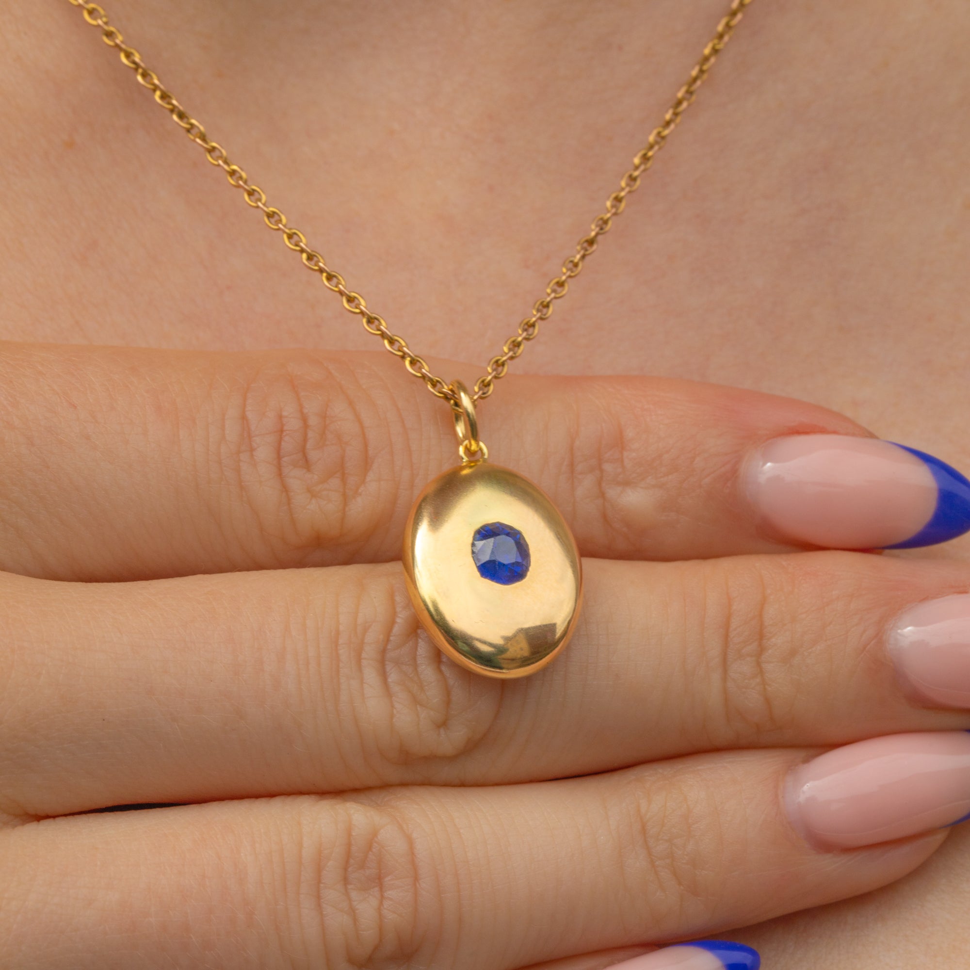 Her glistening Sapphire is encompassed by a halo of buttery 18ct Gold with a curvaceous and puffy form that sits comfortably against your chest. Born in the 19th century, this Victorian Sapphire pendant possesses a timeless appeal, you are bound to be reaching for her time and time again.