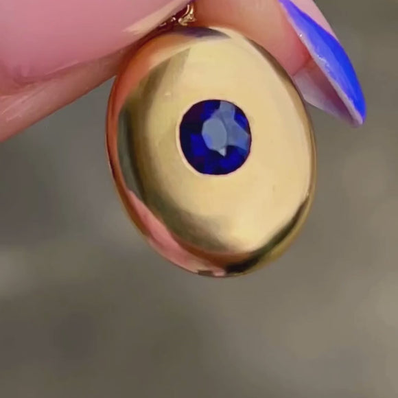 Antique Puffy 18ct Gold Sapphire Charm -Natural Ceylon Sapphire