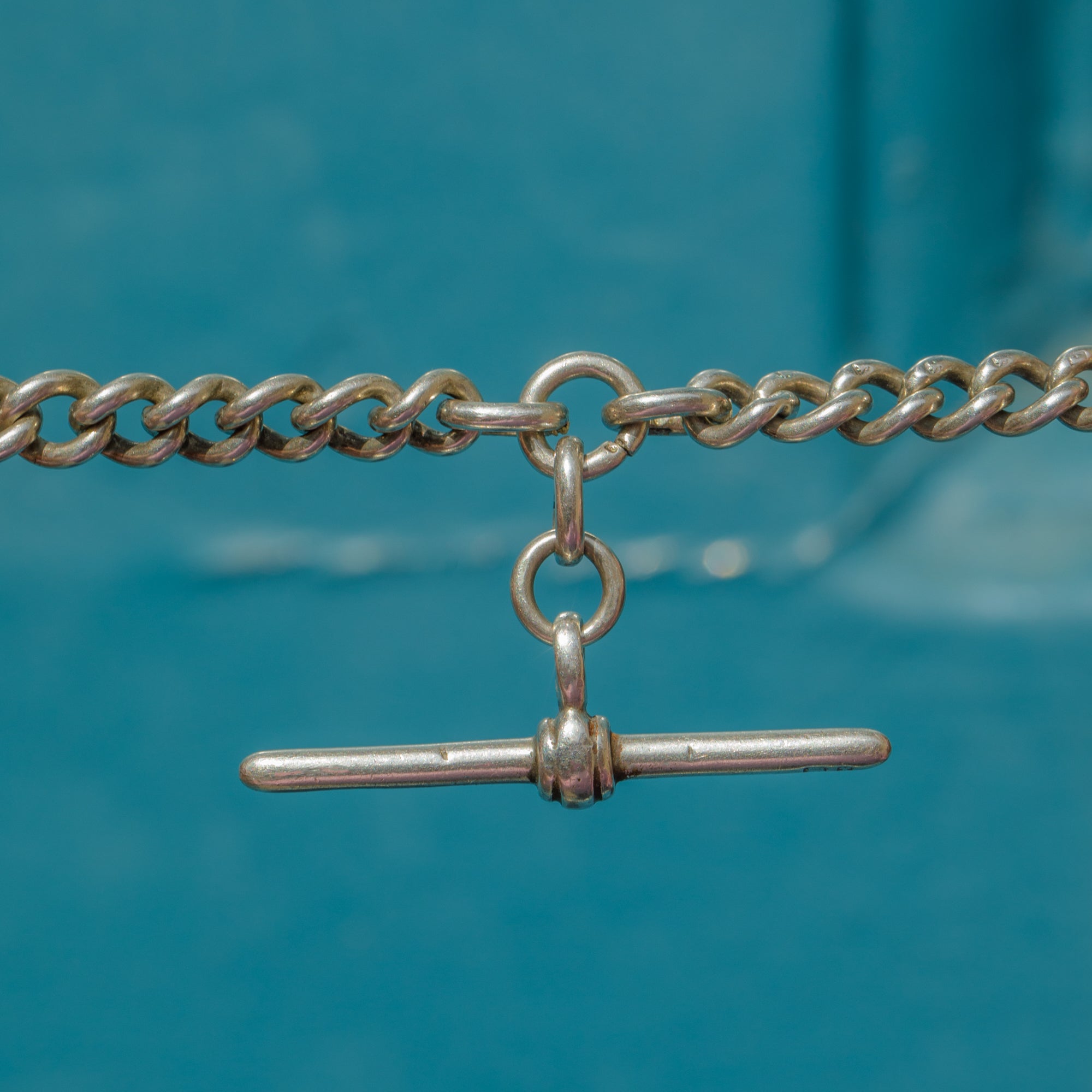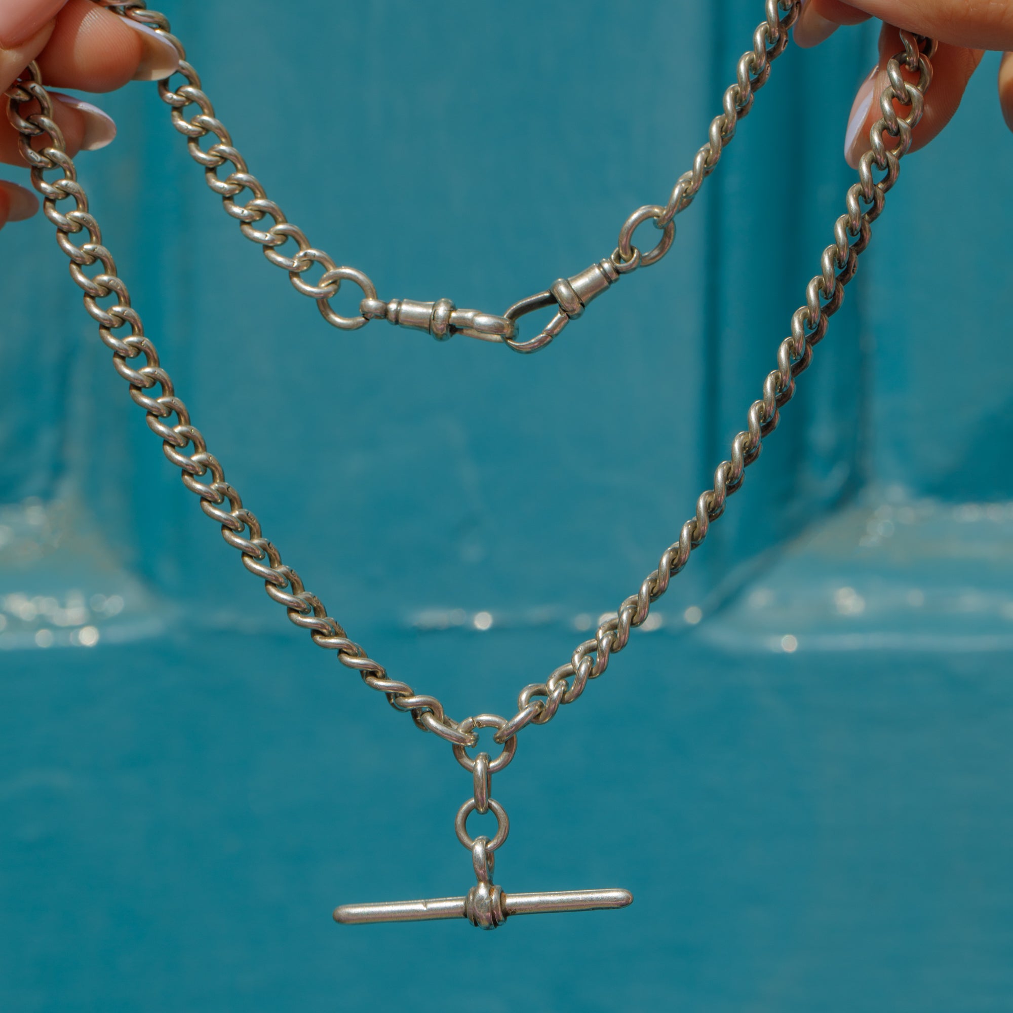 Antique Silver Albert Chain with Matching Dog-Clips & T-Bar