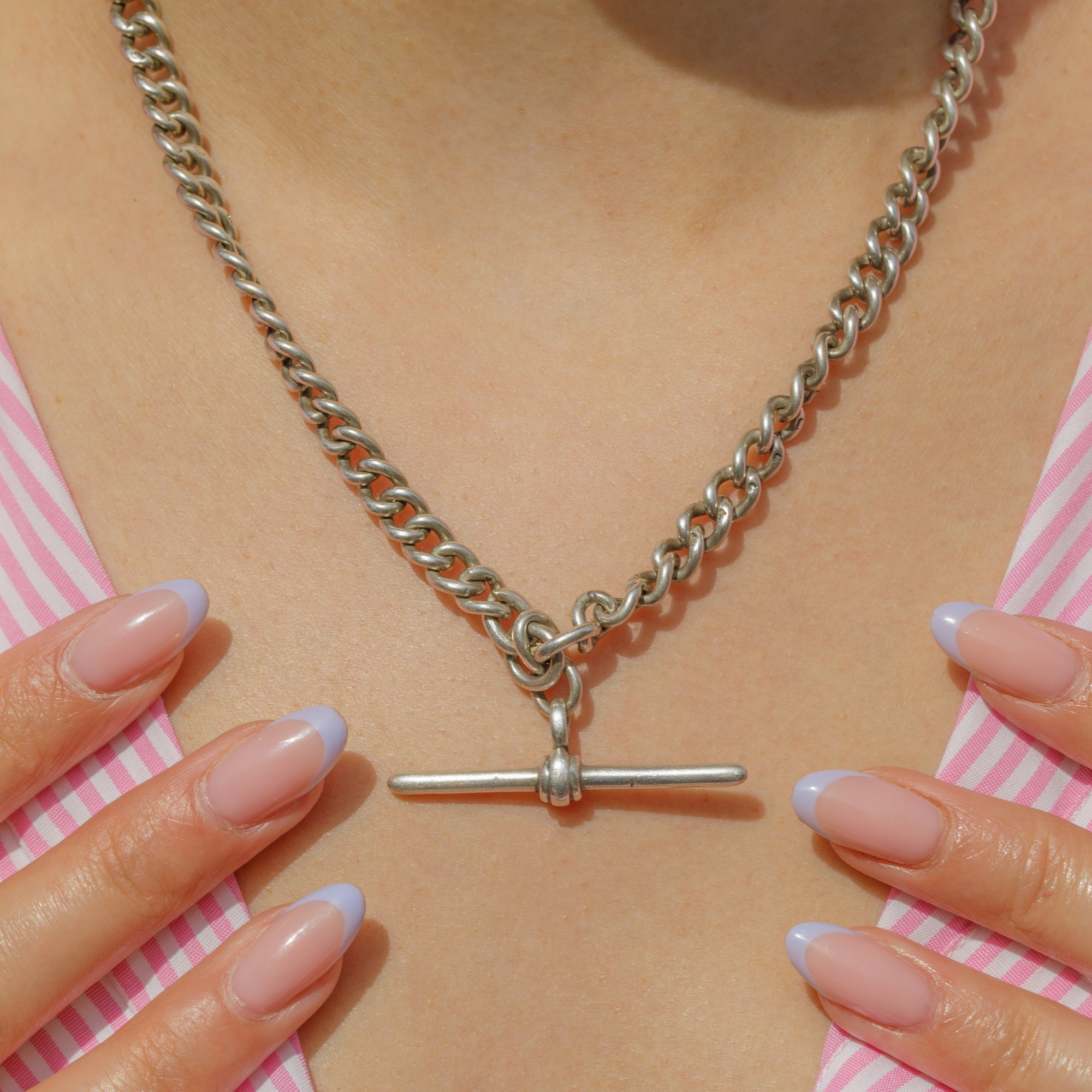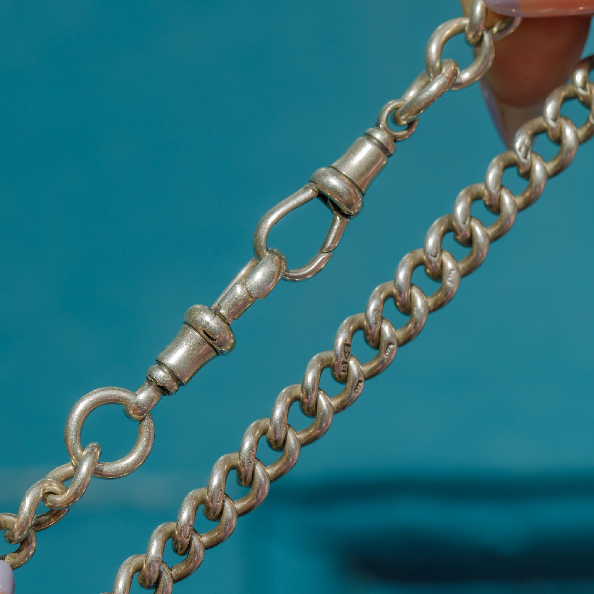 Each chunky link is stamped with a Lion Passant, an indicator of the high-quality craftsmanship of this Victorian Albert chain. An easy-to-style piece, you can wear this Silver curb chain as a standalone piece, stacked in a curated neck mess, or ultislise the dog-clips to affix your favourite charms and pendants for a personal touch!