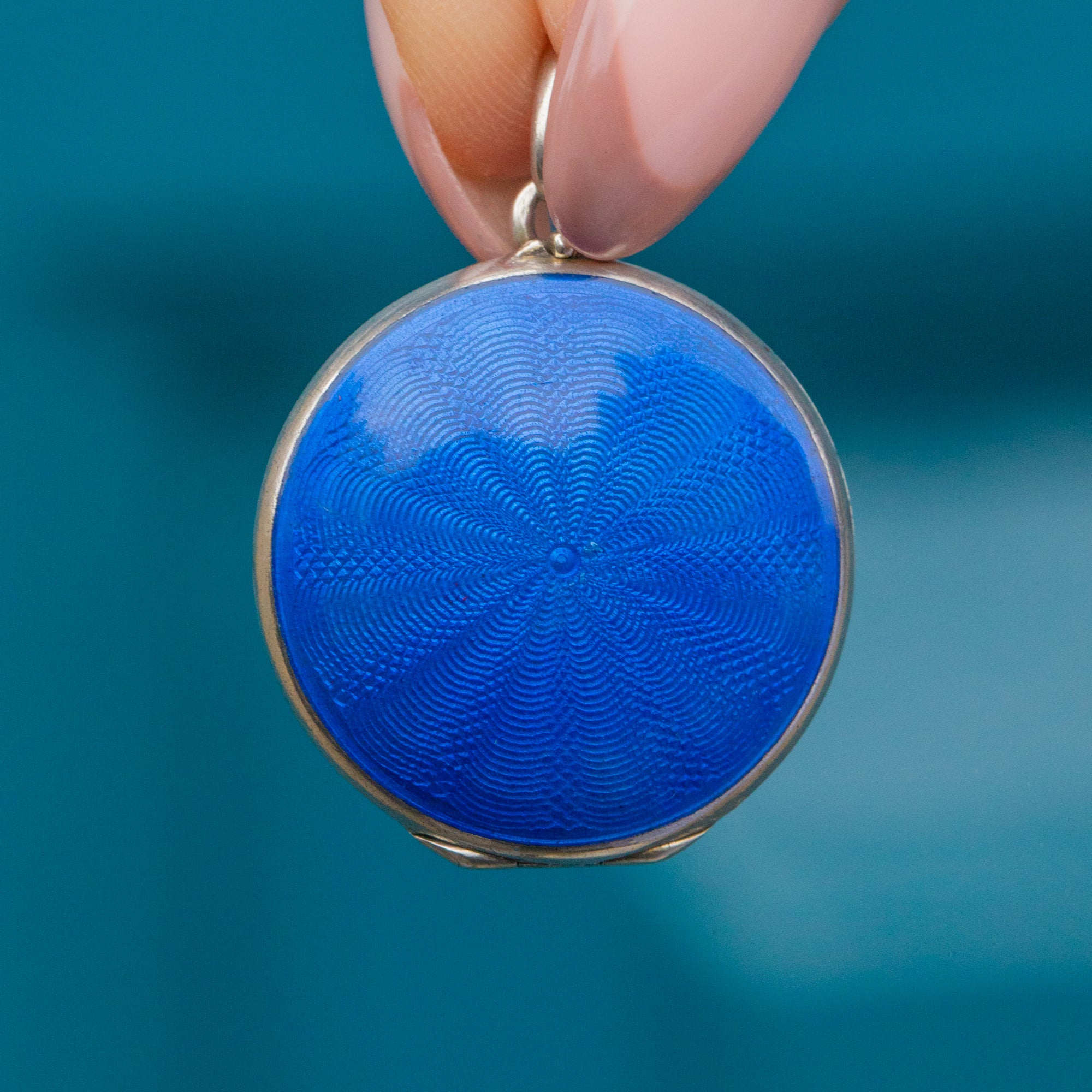 An eye-catching antique Silver Cobalt Blue Guilloche enamel locket to make your collection stand out!
