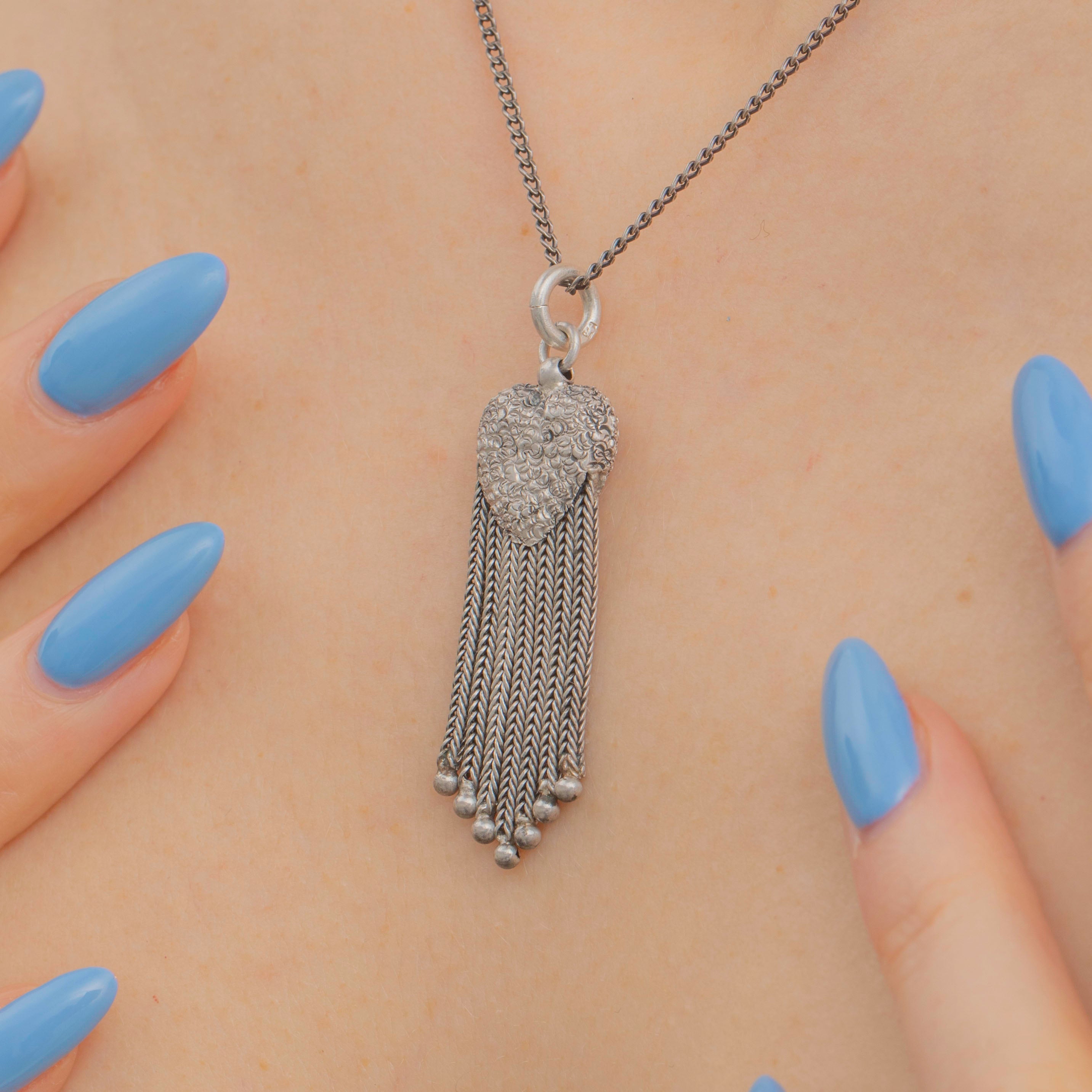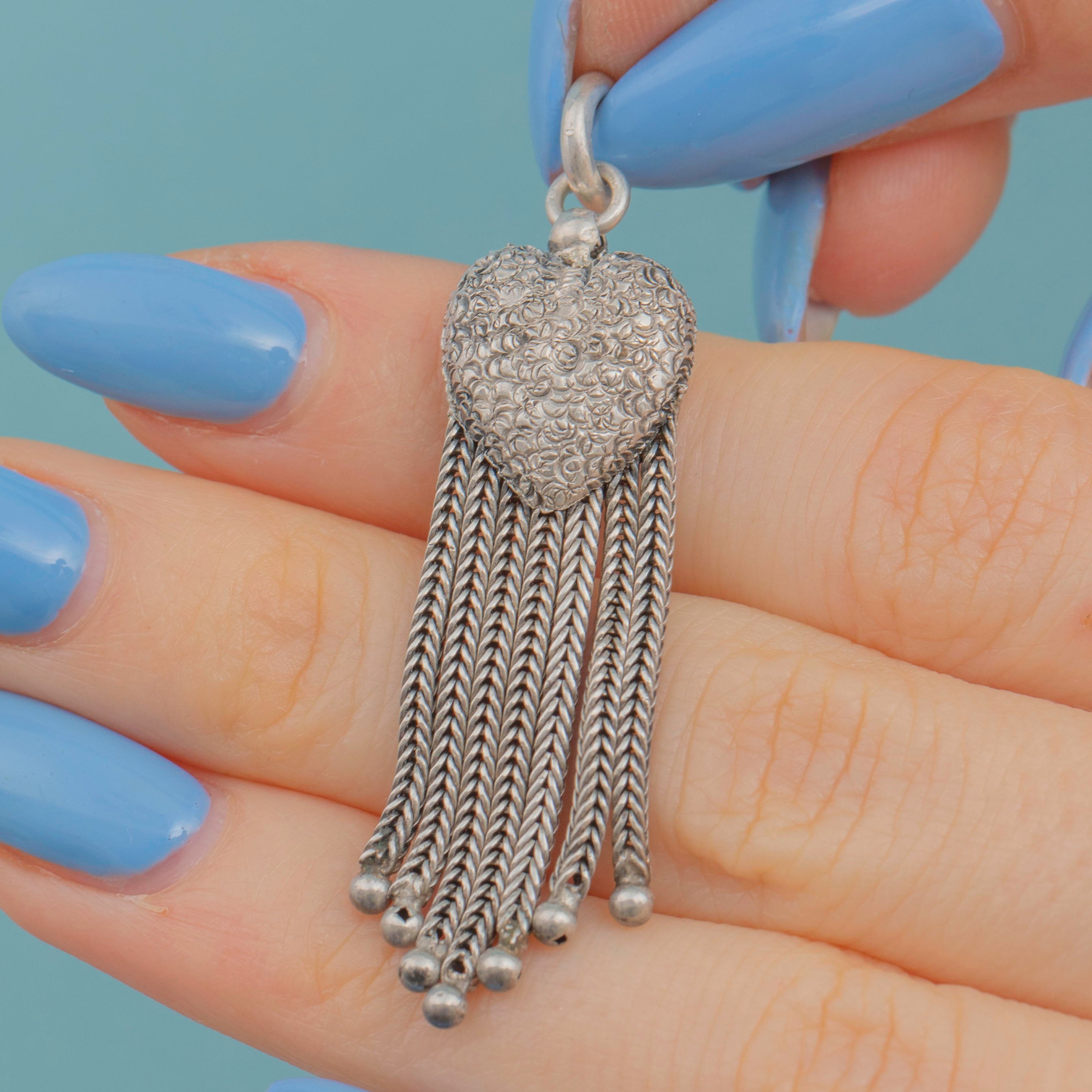 This Victorian Silver heart tassel pendant is such a fabulous unique antique pendant! Featuring a pretty embossed heart and tassel details, this pendant encapsulates Victorian eccentricity.
