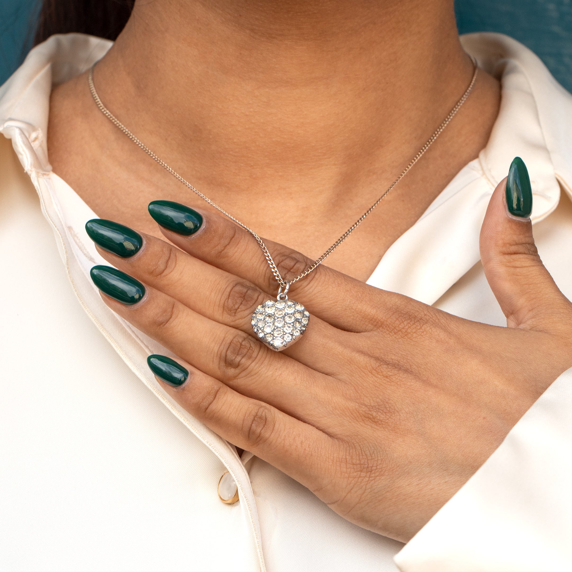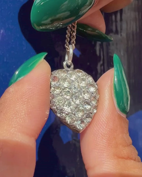 This exceptional antique Silver Paste heart pendant is a genuine Victorian piece, circa 1900. This dainty heart has been skillfully adorned with sparkling hand-cut Paste gemstones, beautifully contrasting with the patina that has accrued within the Silver settings.