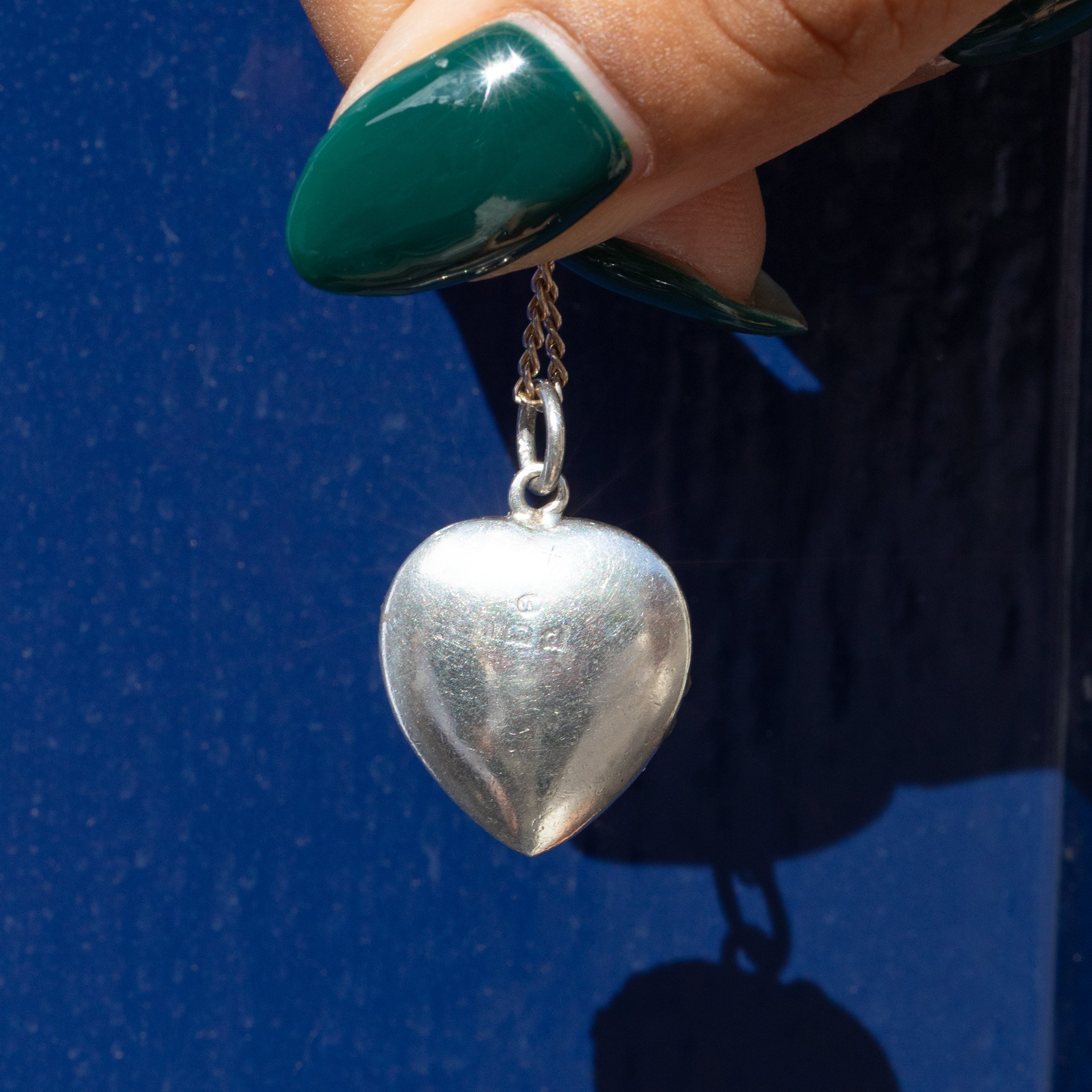 EXCELLENT. This antique Silver Paste heart pendant is offered in very good condition. The Paste gemstones have soe variation within them but are beautifully bright and clear for their age, with no chips or cracks or replacement gems, securely held within their settings. The Silver has accrued an admirable patina adding to the pendant's antique charm, with only some minor age-related wear. The pendant is smooth and has kept its structural integrity well over the years although the stamps are aged and the assay office can't quite be seen. Complete with a soldered jump ring, you can wear this sweet Victorian heart charm with confidence!