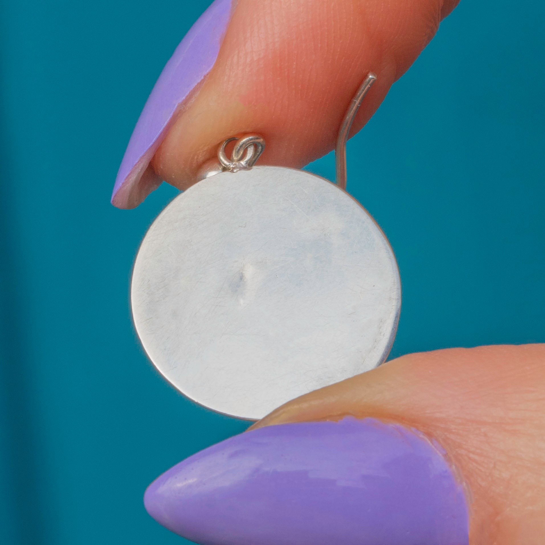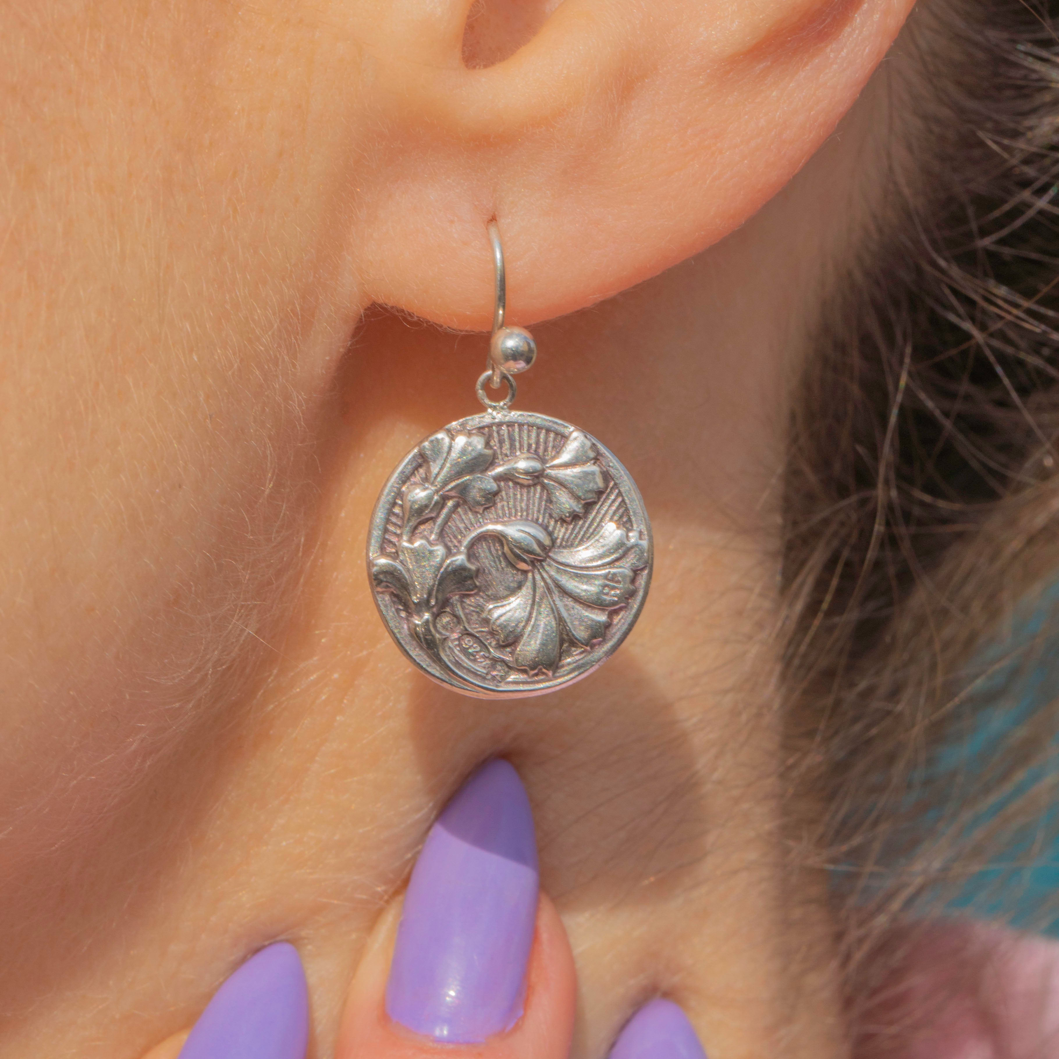 VERY GOOD-EXCELLENT: These antique Silver petunia floral earrings are in superb condition. The Silver is bright with the relief details having accrued a lovely patina, adding to their antique allure. The floral details are pristine with no signs of wear and the hallmarks have remained defined, allowing us to accurately date these antique earrings to 1905. There is some mild surface wear on the back of the earrings, commensurate with age, but this won't be noticeable when the earrings are worn. With slender and comfortable earring hooks, you can enjoy wearing these pretties with absolute confidence!