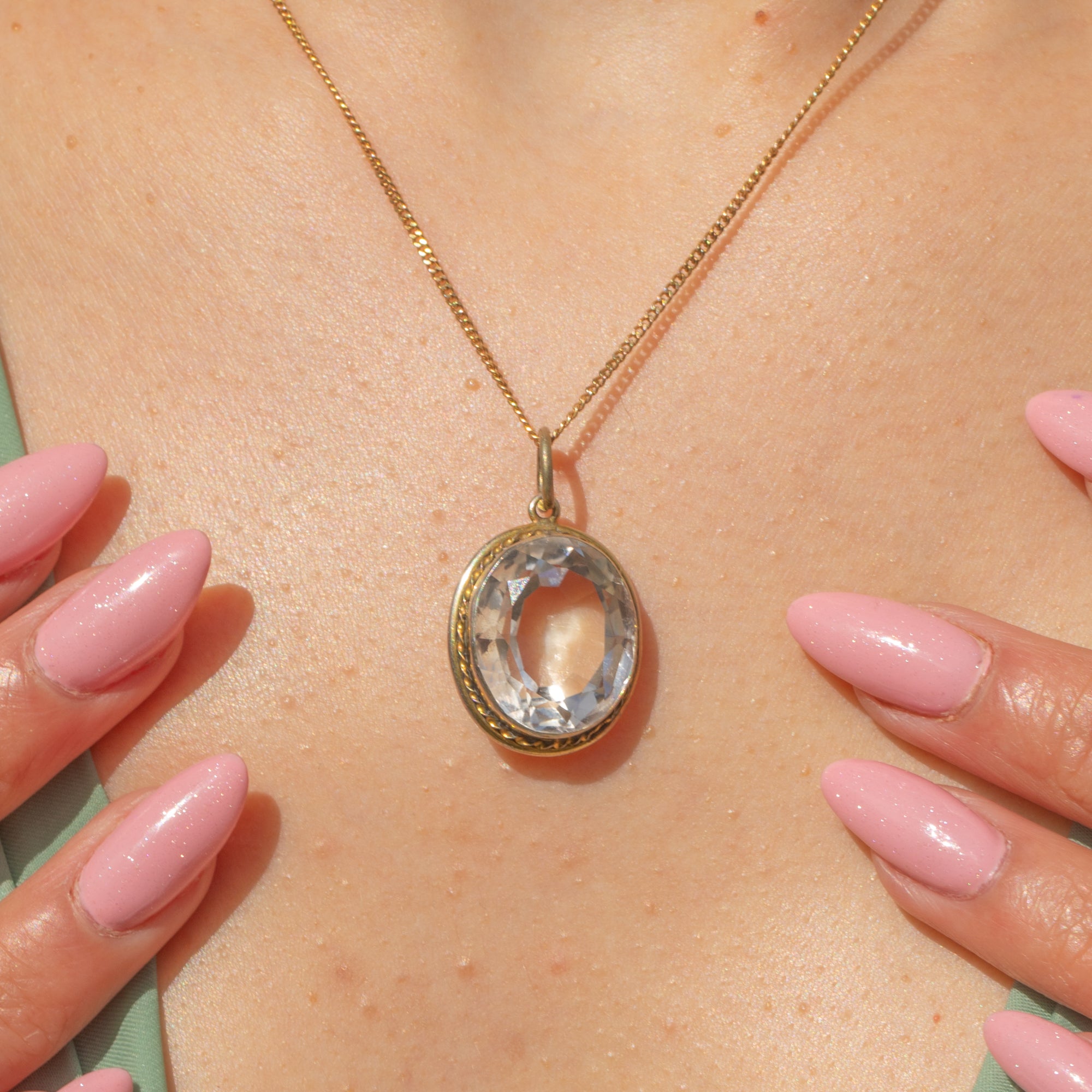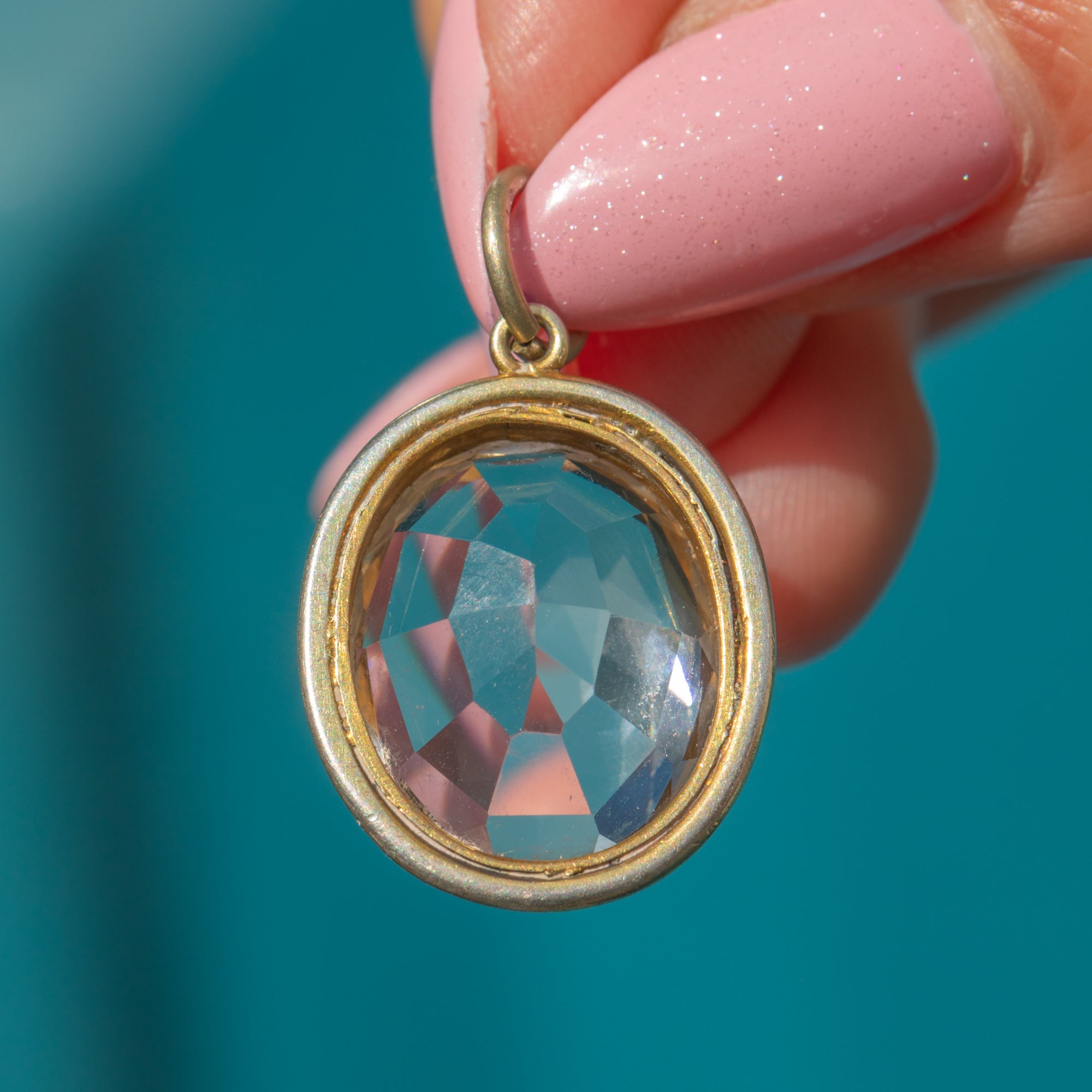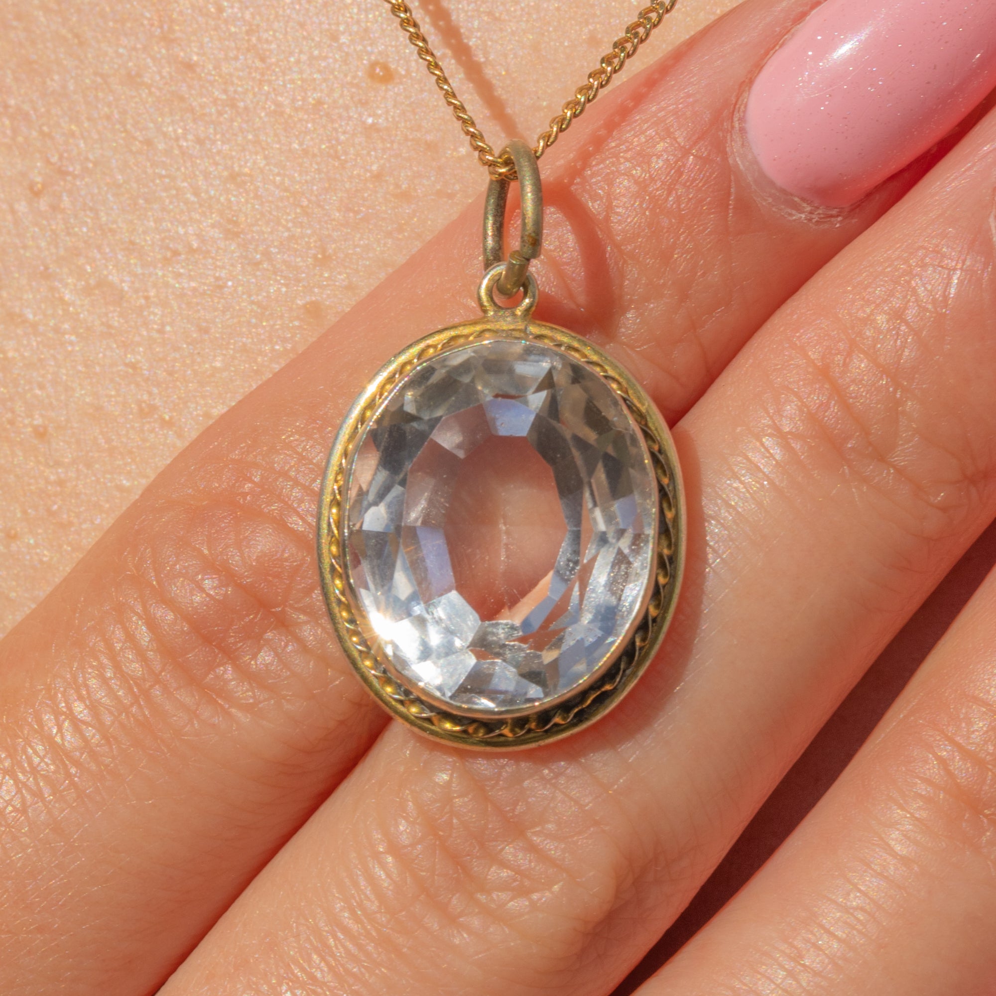 This antique Silver Rock Crystal pendant will make a fine addition to your collection! At the centre of this treasure lies a faceted 9.45ct Rock Crystal, glimmering beautifully as it catches the light.