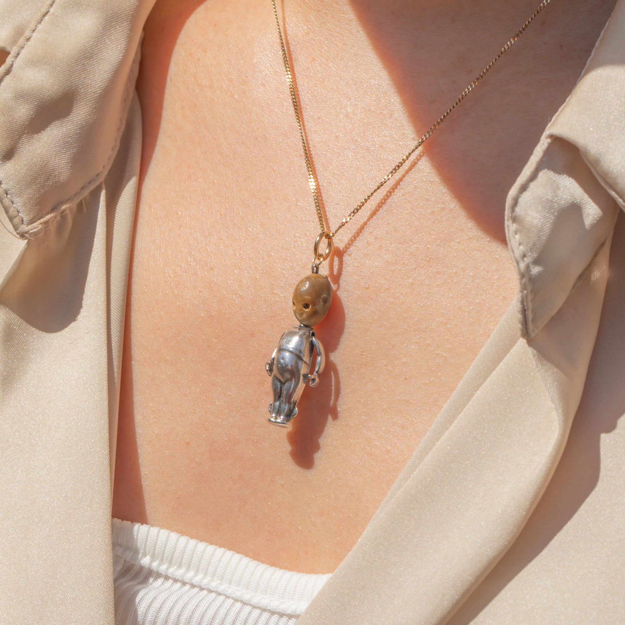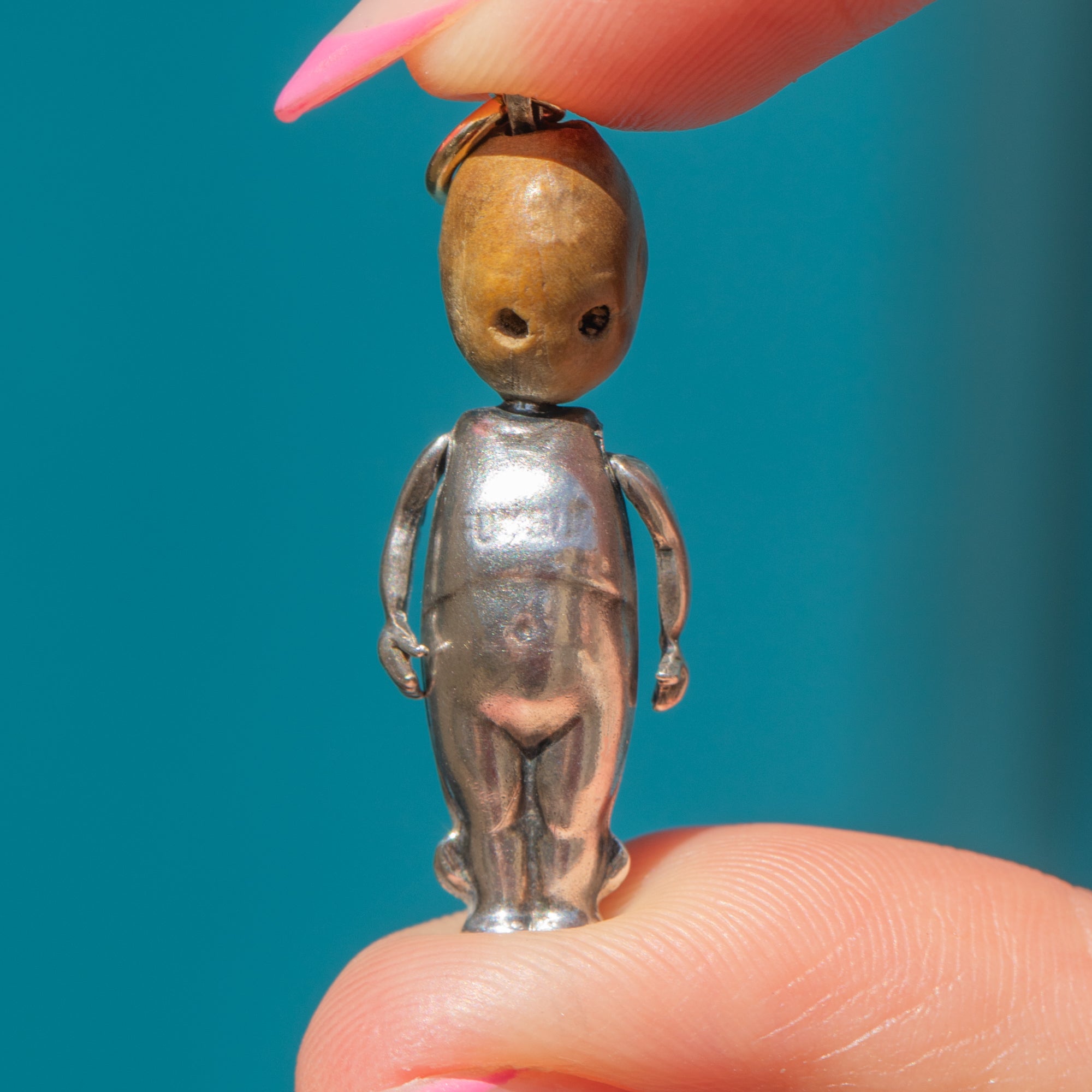 Crafted from bright Silver with a wooden head to finish, this is a rare and intriguing pendant for any antique jewellery aficionado. Steeped in symbolism, this early 20th-century pendant would make a wonderfully thoughtful gift or treat for yourself!