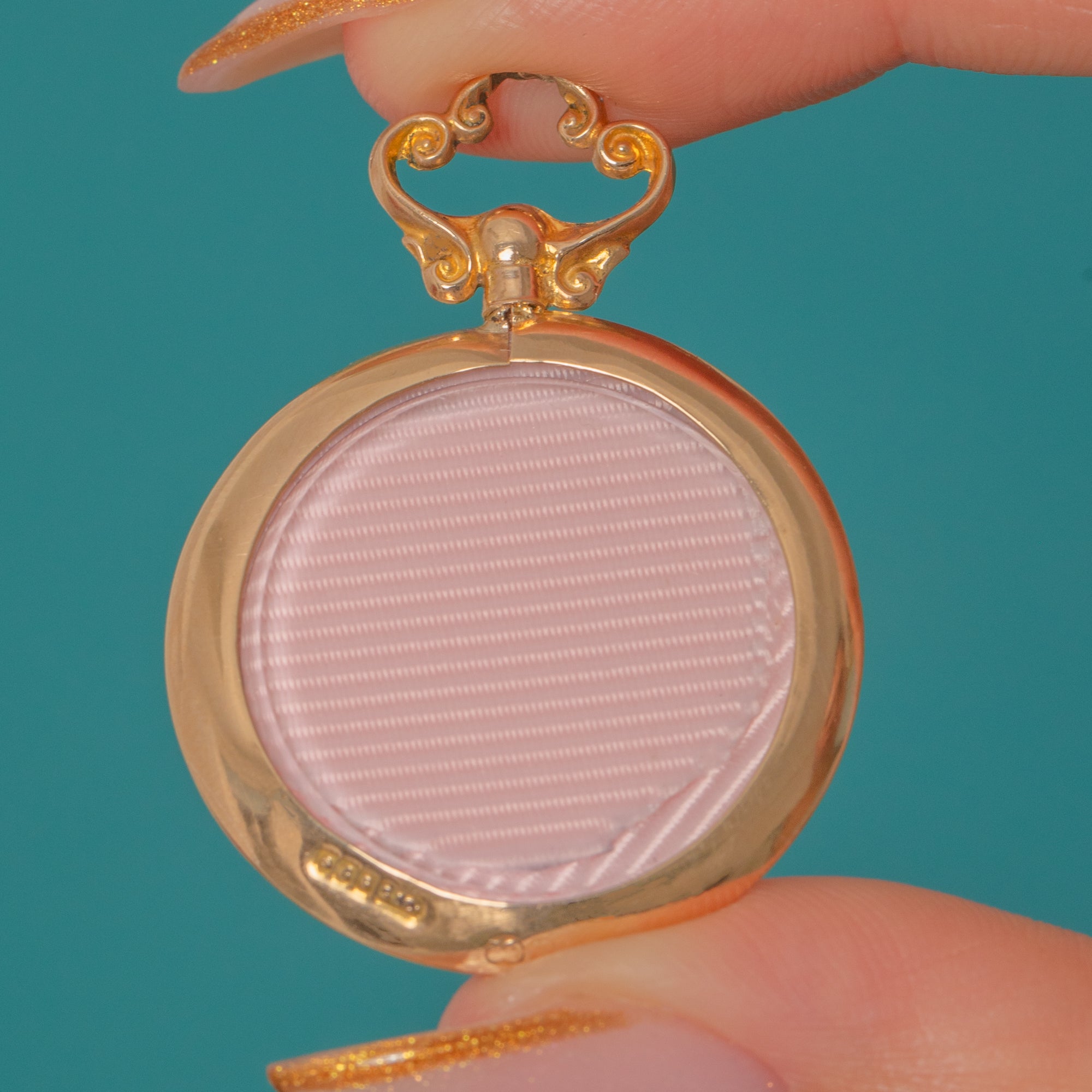 VERY GOOD: The Gold frame is in excellent condition, with gentle patina consistent with age. The locket opens and closes securely. The hallmarks are all intact and fully legible.
