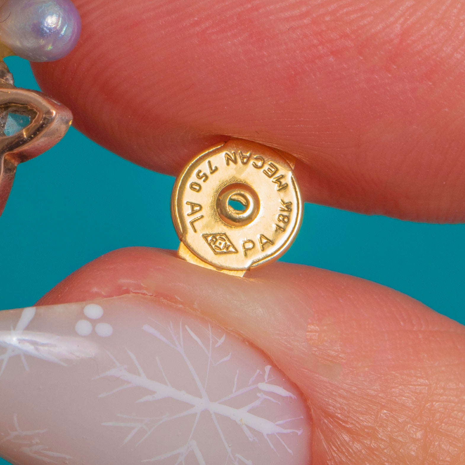 EXCELLENT: Diamonds are bright and lively with no obvious chips or abrasions; Natural Pearls are lustrous and intact. The settings are crisp with only light surface wear and a gentle, even patina to the Silver tops. Posts and modern locking ALPA backs are later additions; no other repairs are evident and overall care and preservation are superb.