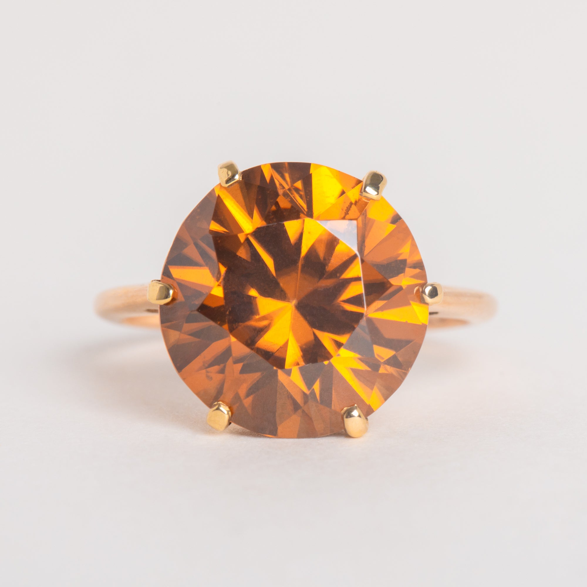 MATERIALS: Tests as 14ct Gold shank with 9ct Gold basket for strength and durability, Brown Zircon (11.00ct).