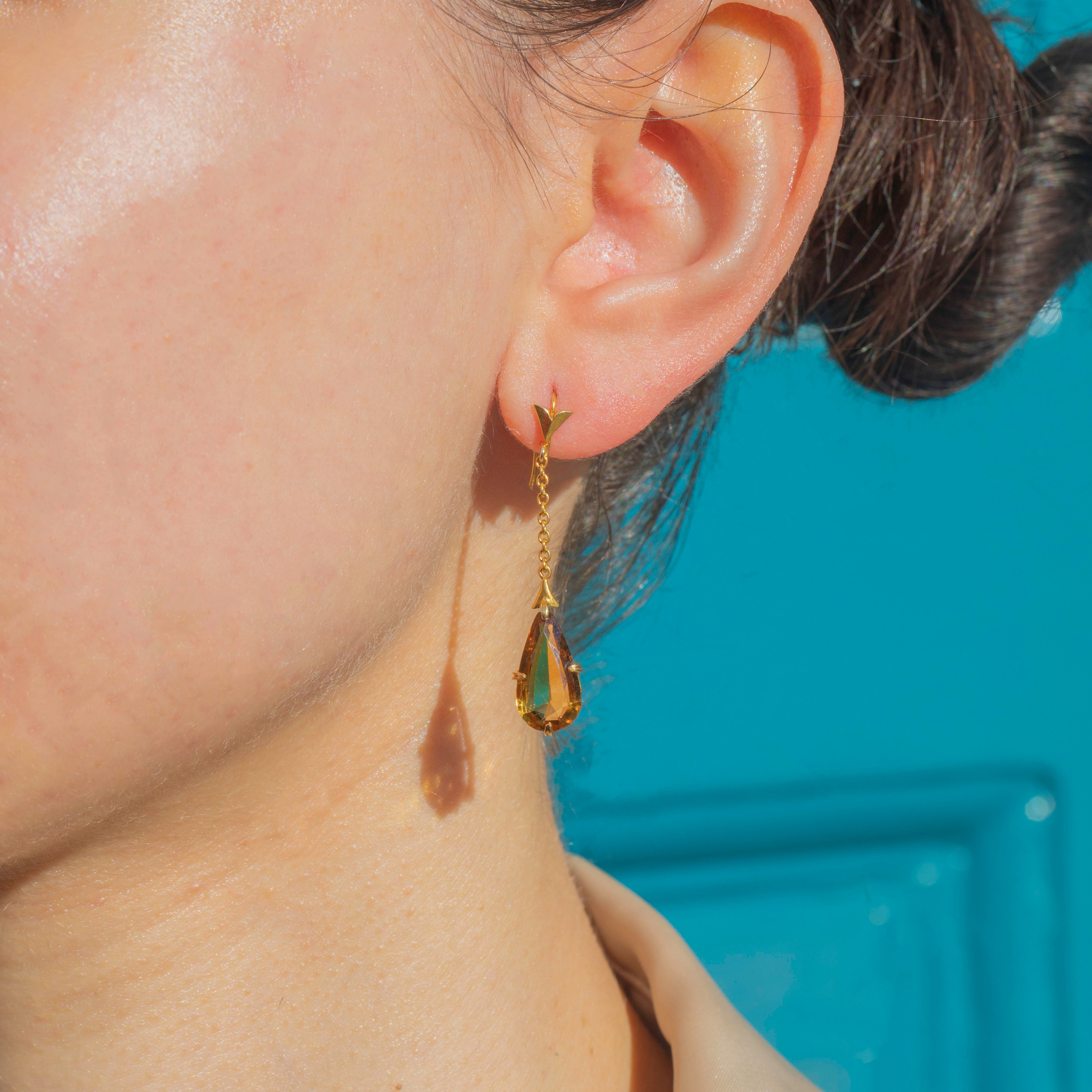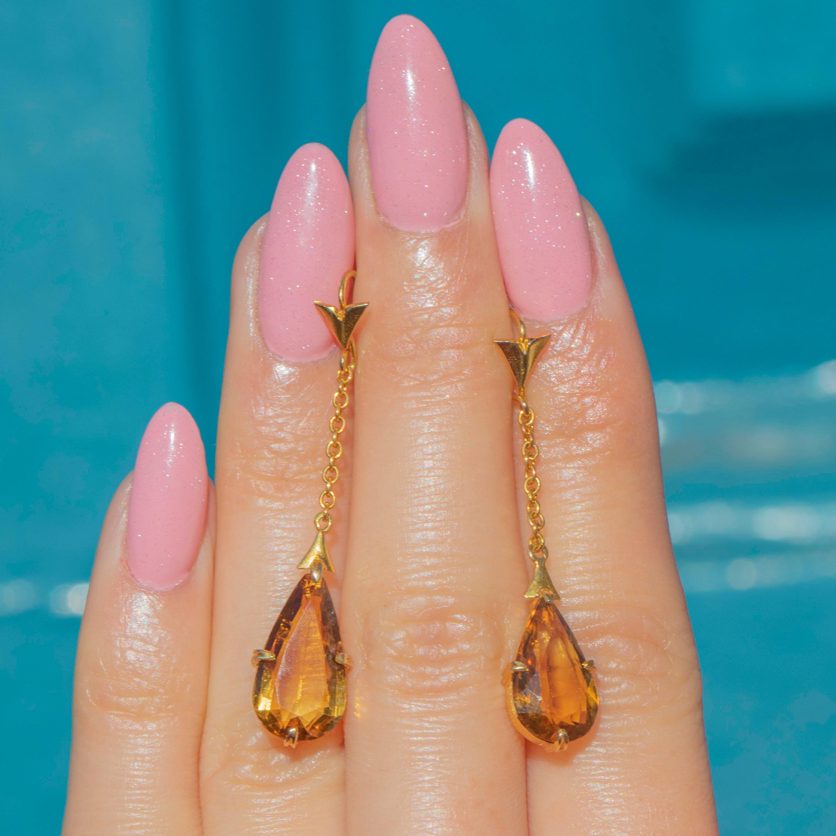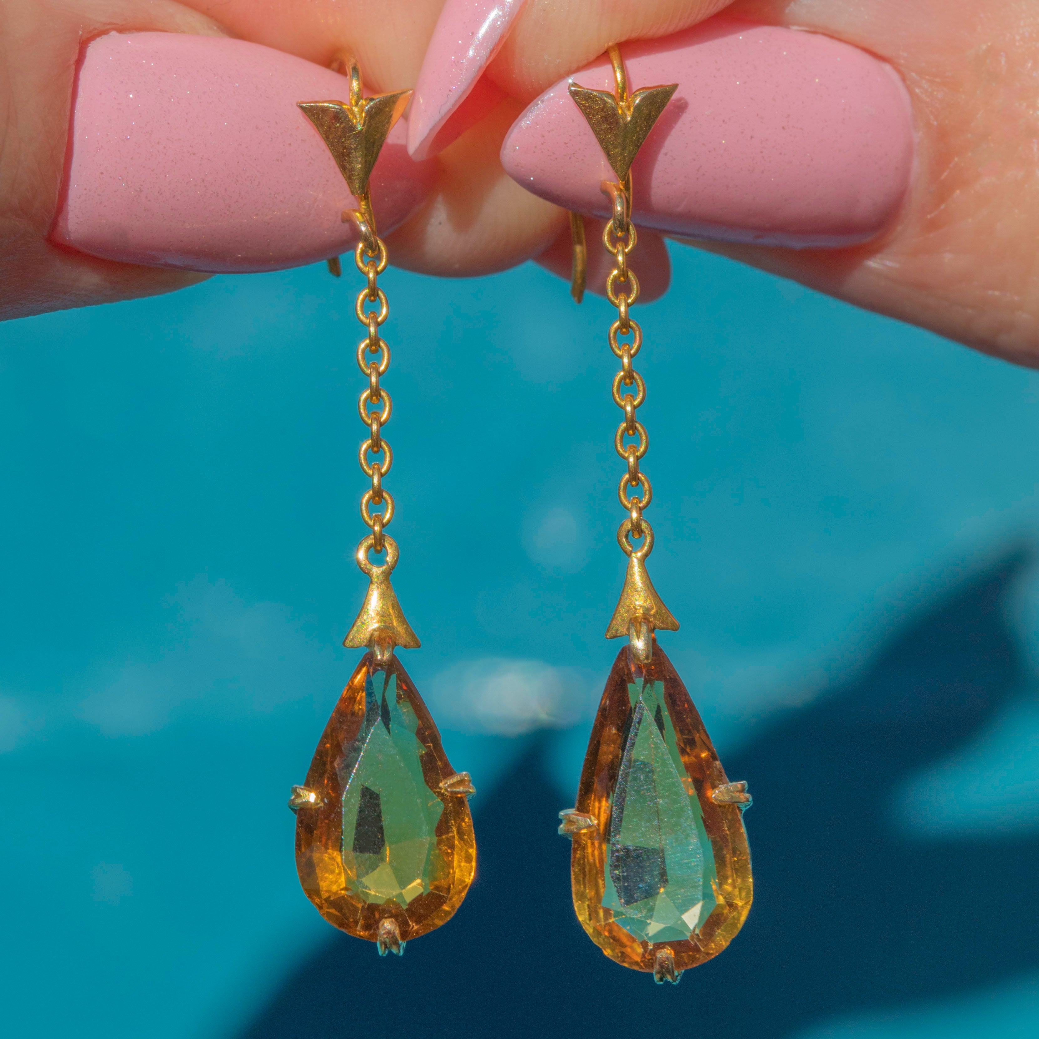 Add a touch of sunshine to your attire with these Art Deco 14ct Gold Citrine Pear drop earrings!