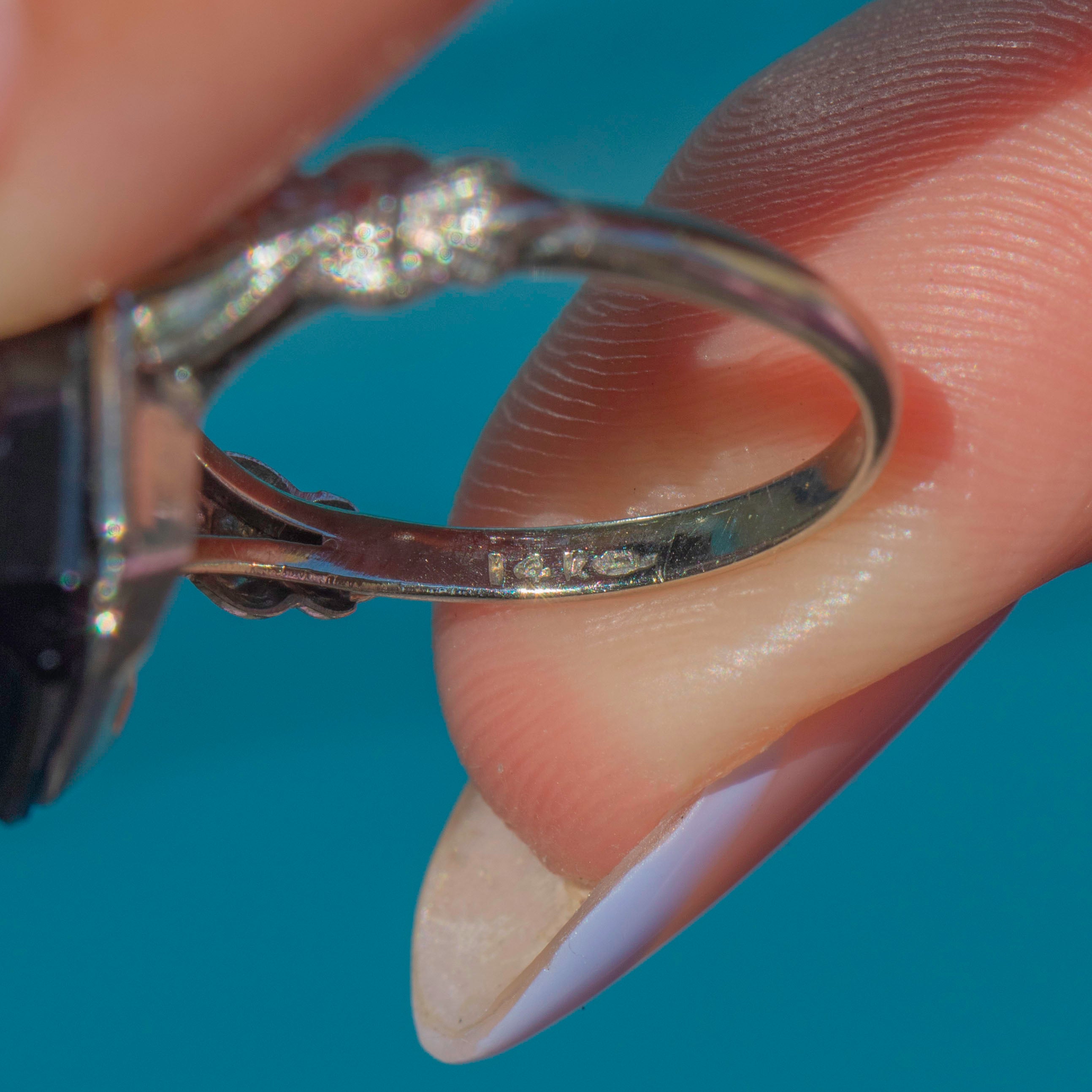 MATERIALS: Tests as 14ct White Gold, Onyx, Diamond.