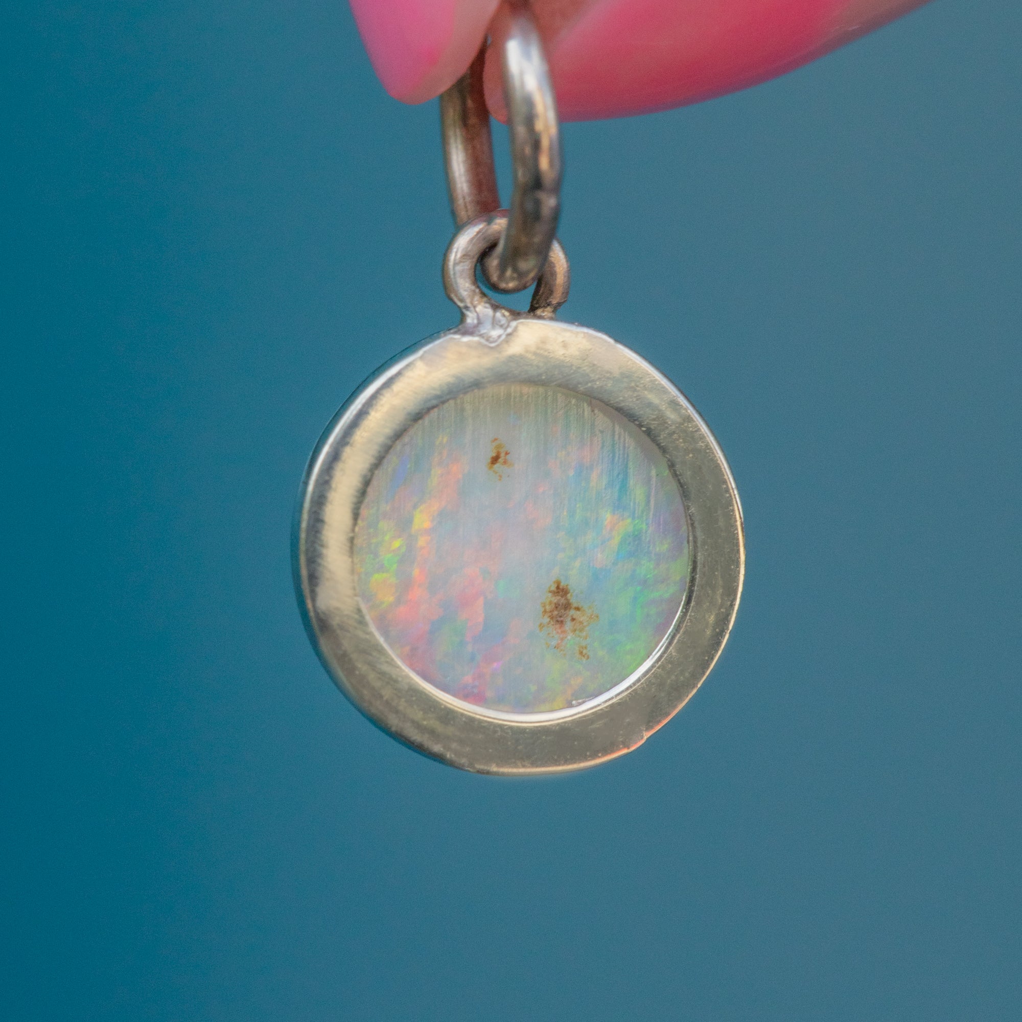 EXCELLENT. We are delighted to report that this Art Deco 14ct white Gold Opal charm is in excellent condition! The surface of the Opal is smooth and the play of colour is mesmerising, set securely within a 14ct Gold bezel.