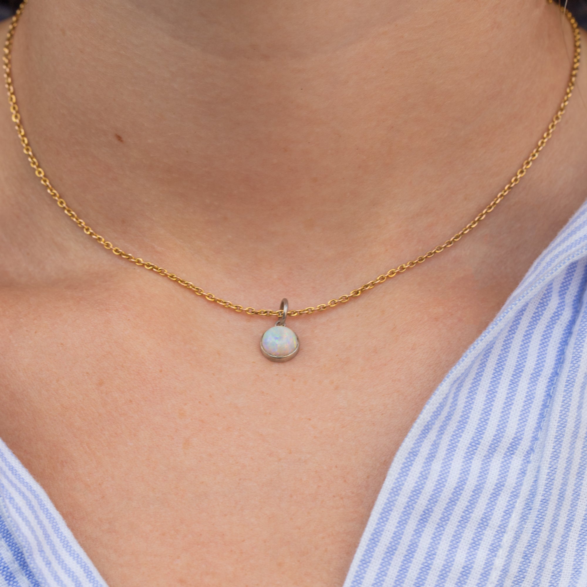 This Art Deco 14ct white Gold Opal charm is the sweetest thing! Her Opal cabochon is vibrant, with a firework display of greens and pinks that come to life beneath the light.