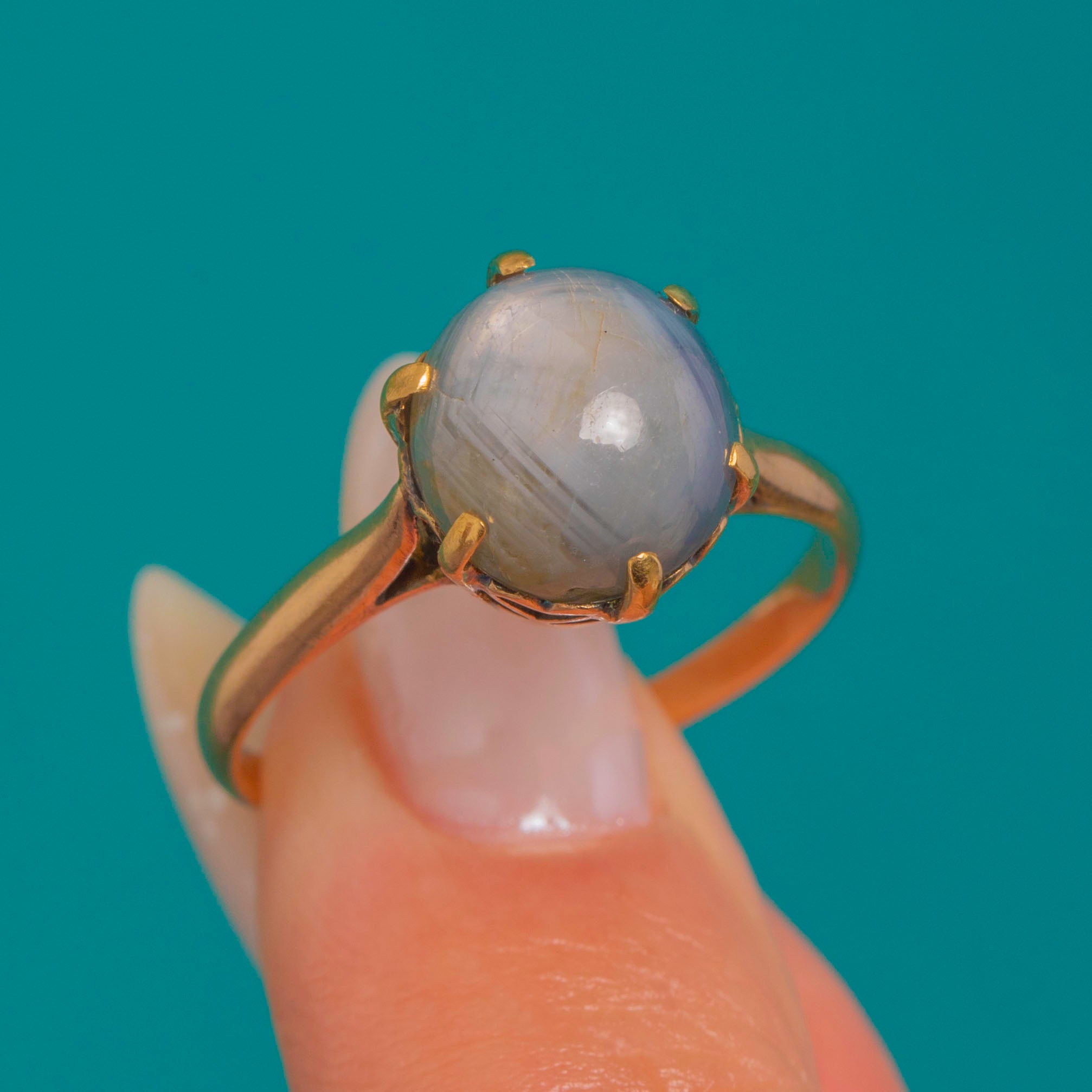 Art Deco 15ct Gold Blue Star Sapphire Ring, 3.75ct Natural Star Sapphire