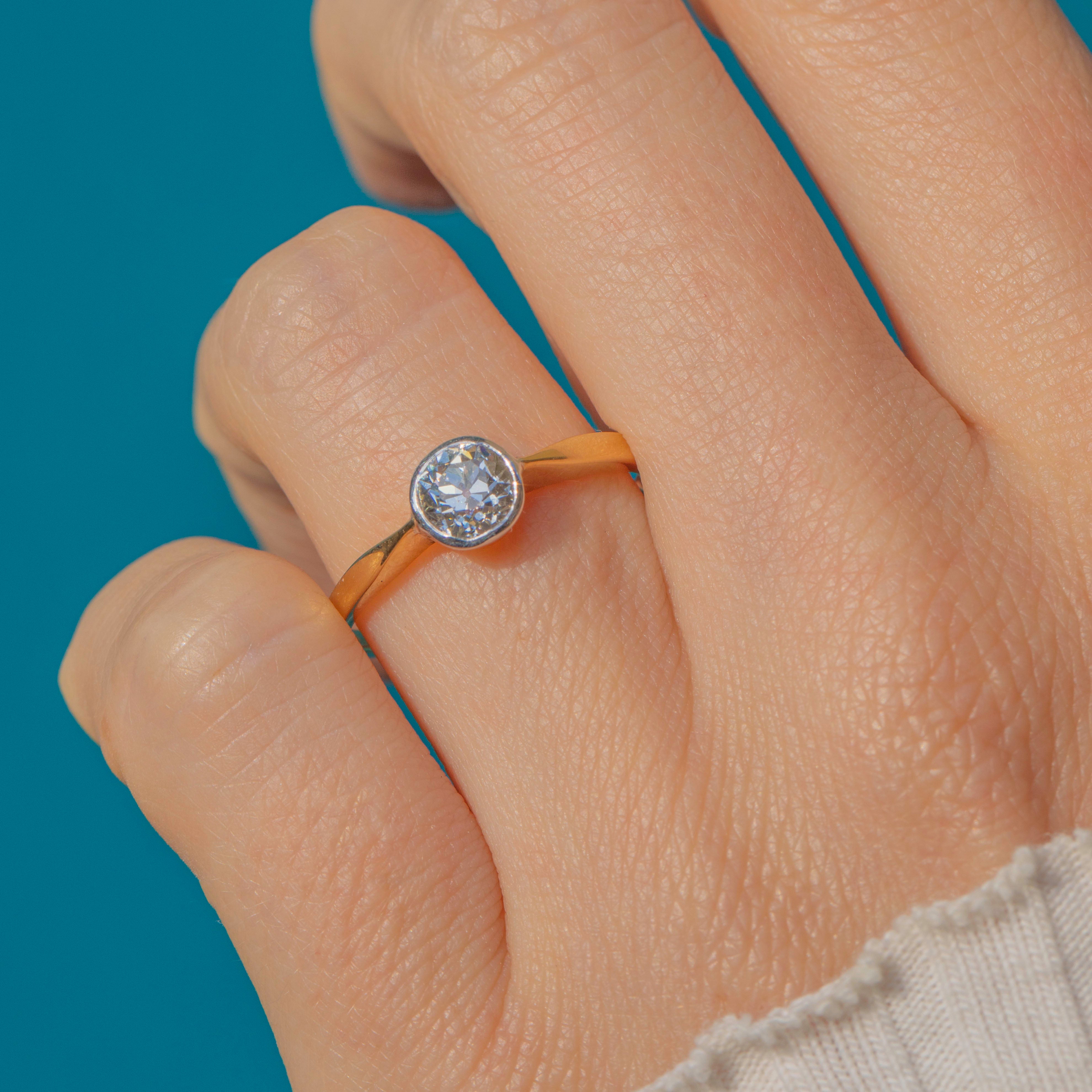 Art Deco 18ct Gold Bezel-Set Diamond Solitaire Ring, 0.80ct Old European Diamond
