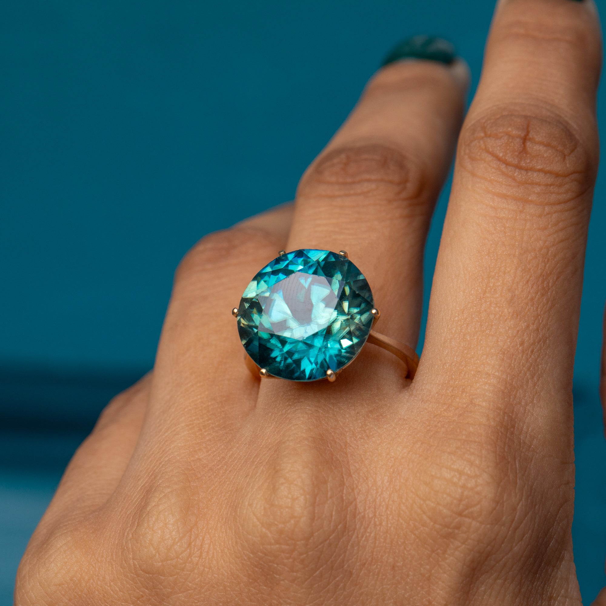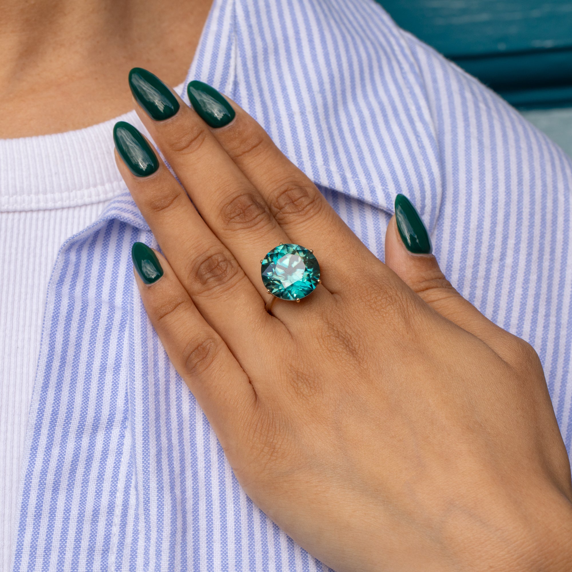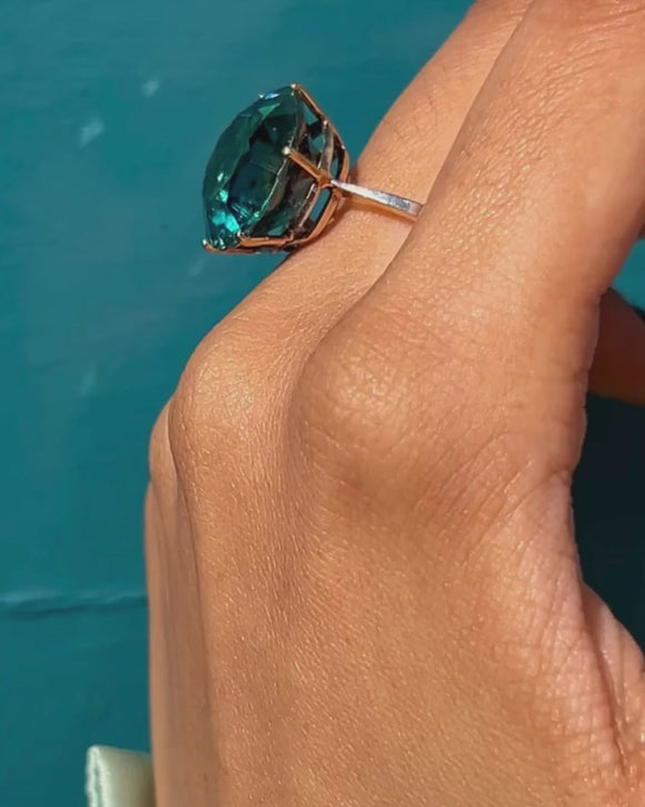 Smooth and glossy, the 18ct Gold band is the perfect balance of elegance and simplicity to compliment the outstanding 15.00ct Zircon, providing an incredible profile and wonderful finger coverage. A versatile and dynamic piece, this antique cocktail ring is the perfect piece to add a show-stopping edge to any look!