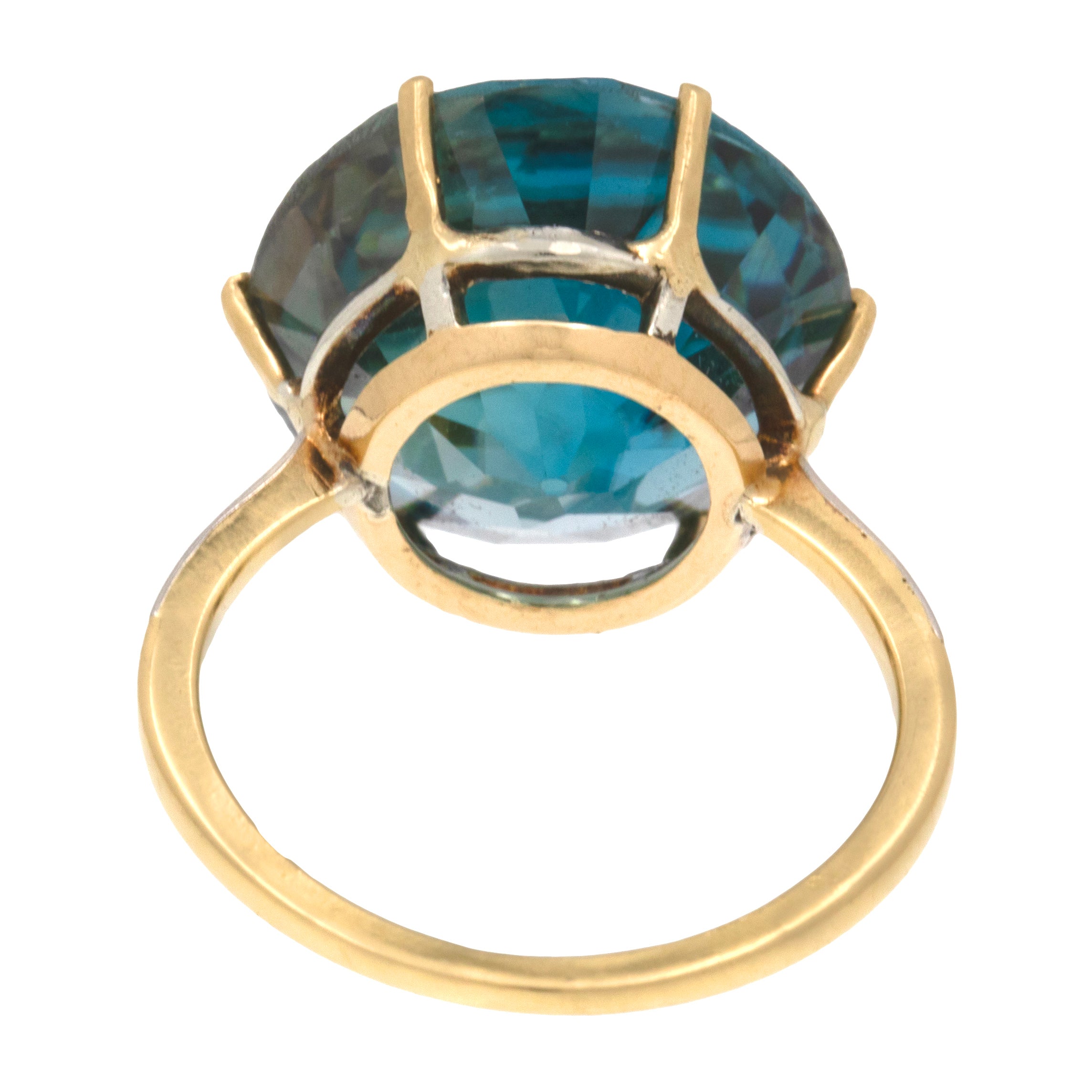 Art Deco 18ct Gold Blue Zircon Cocktail Ring, 15.00ct