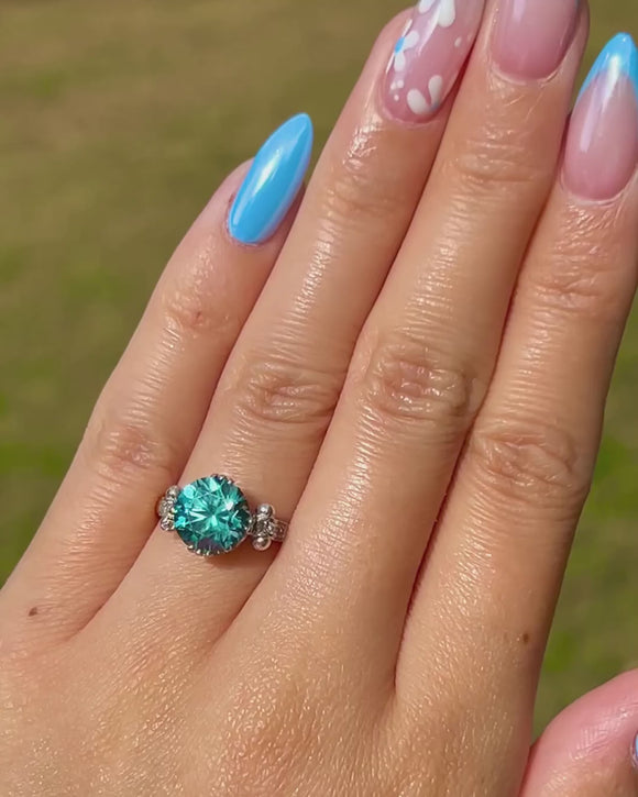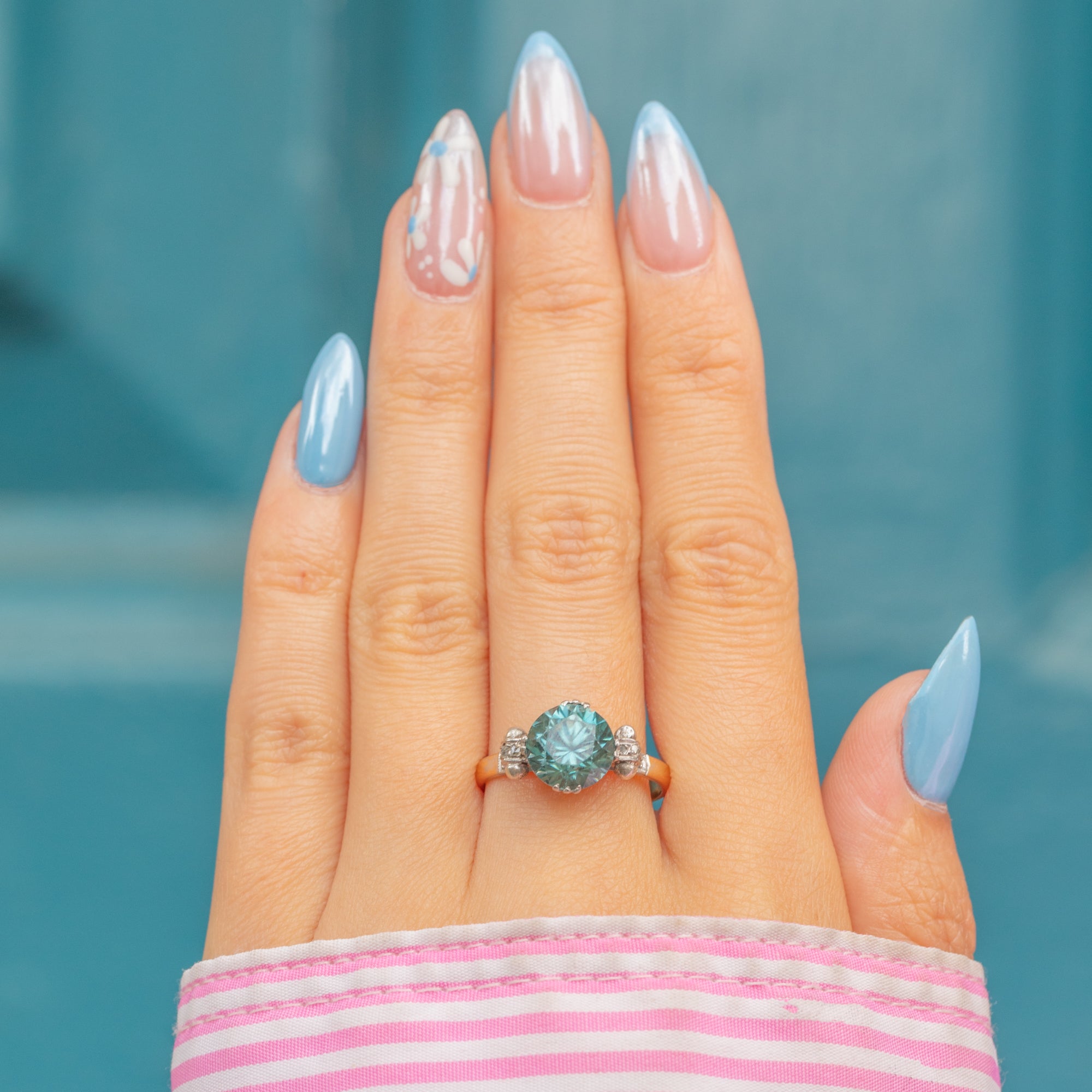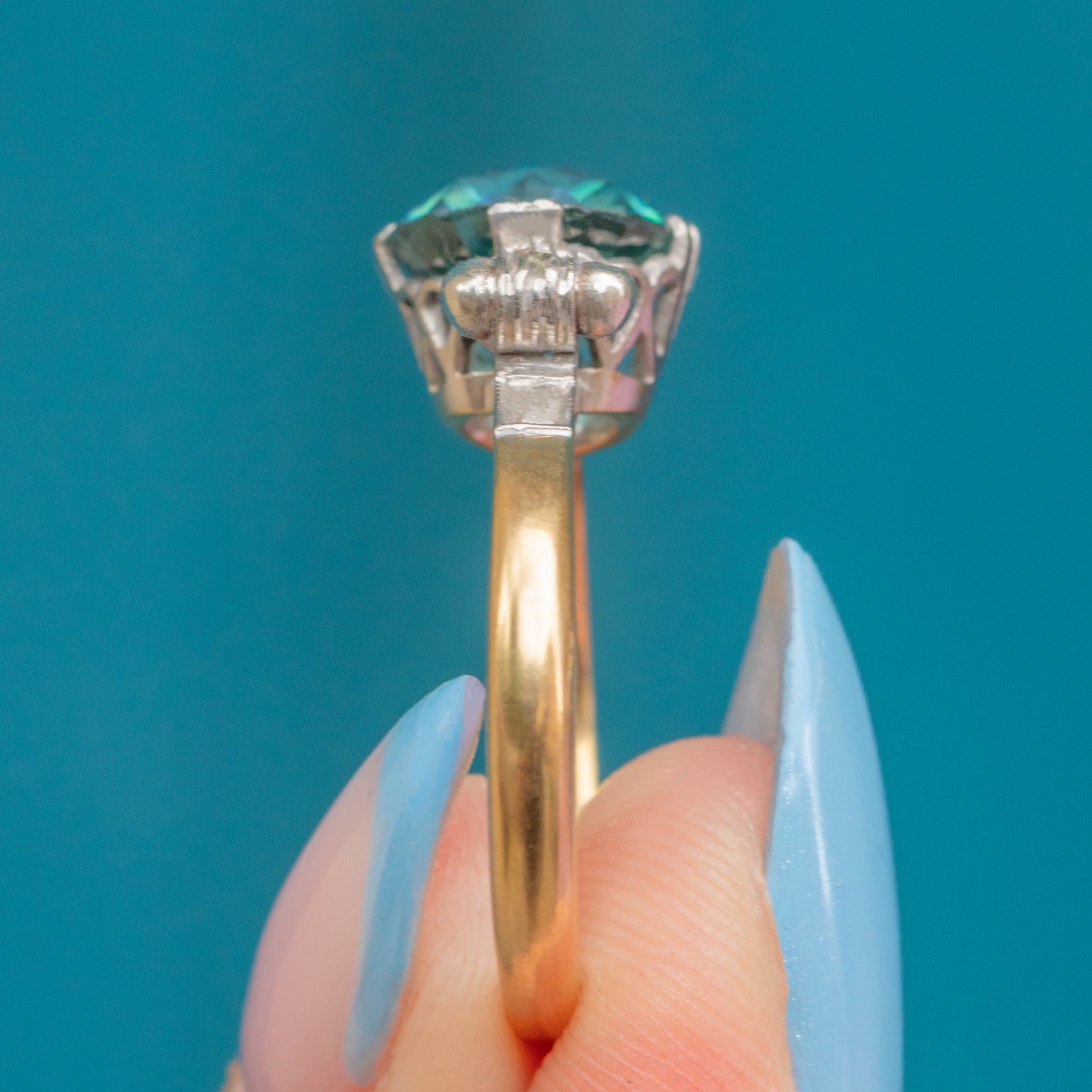 Art Deco 18ct Gold Blue Zircon Diamond Ring, 2.90ct Zircon