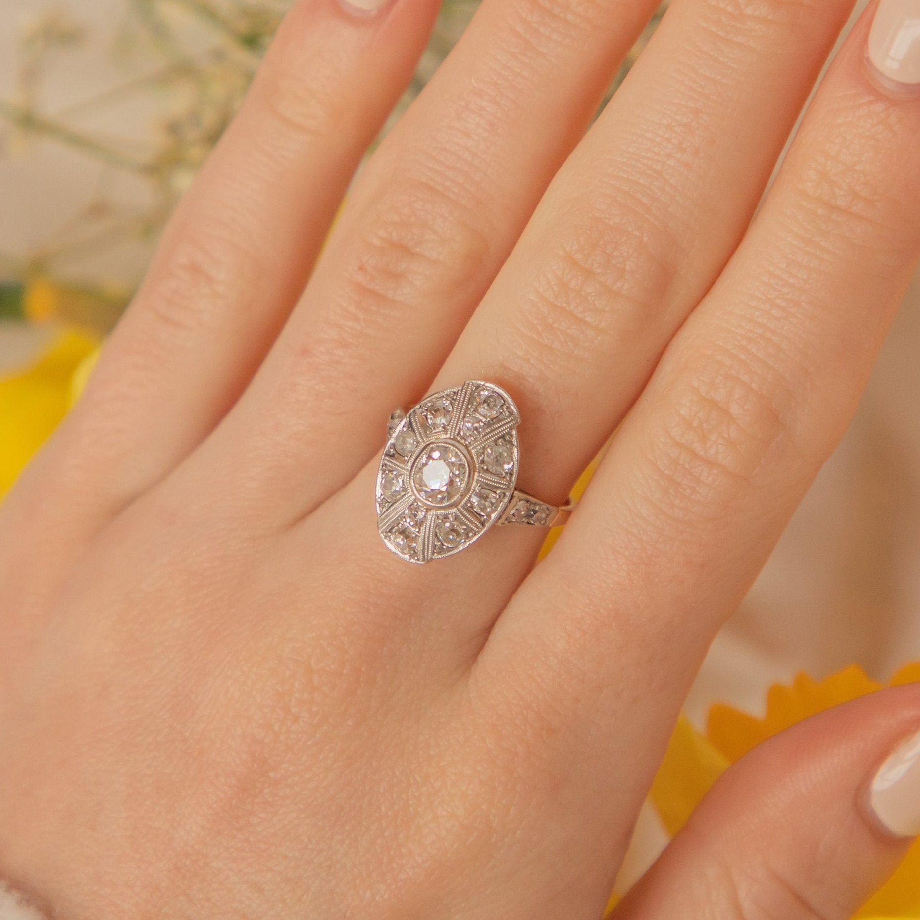 Just look at this Art Deco 18ct Gold Diamond cluster ring! With little need for introduction, this ring sparkles and flashes like nothing we've seen before, in her pure and beautiful Art Deco form.