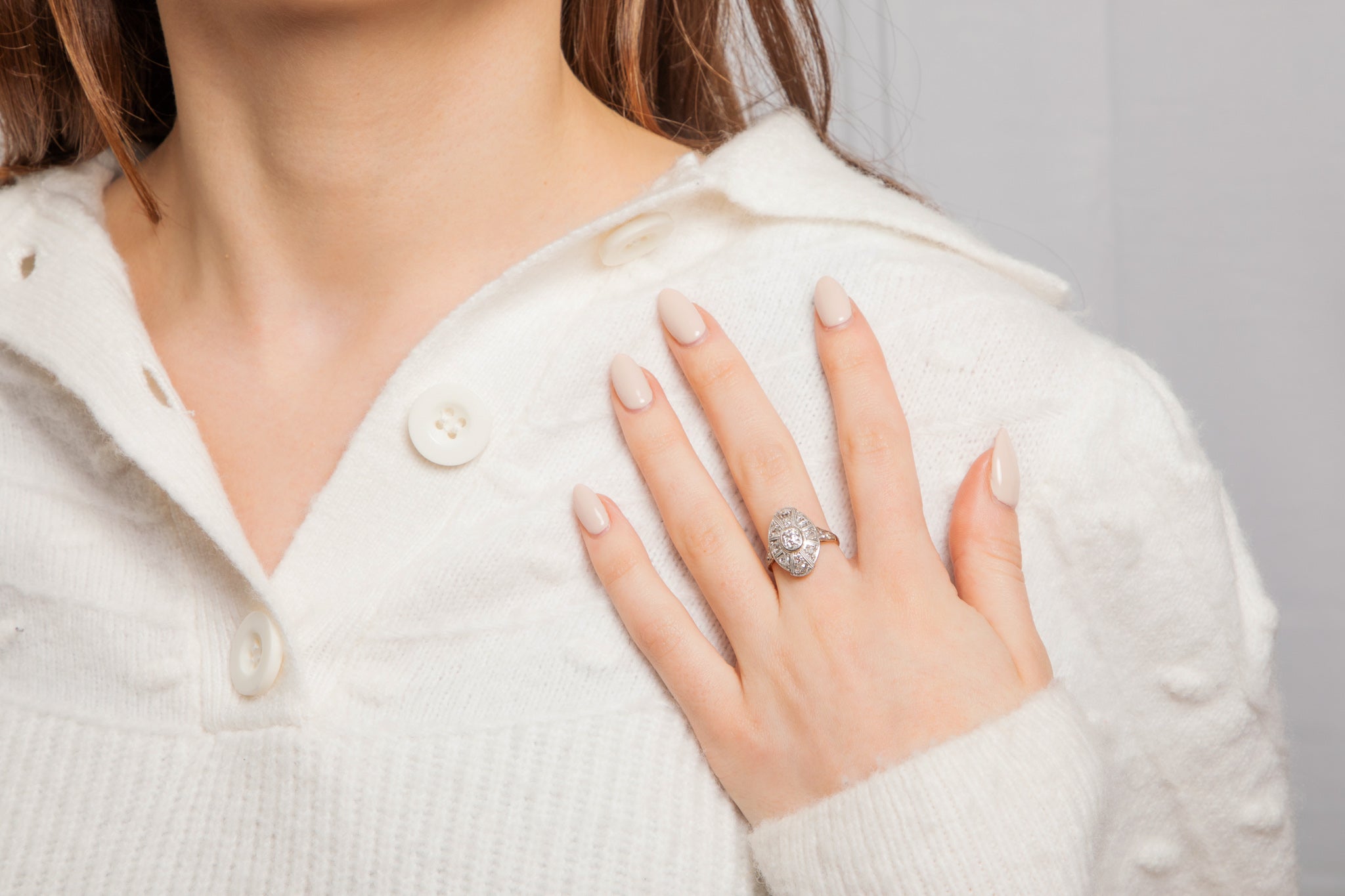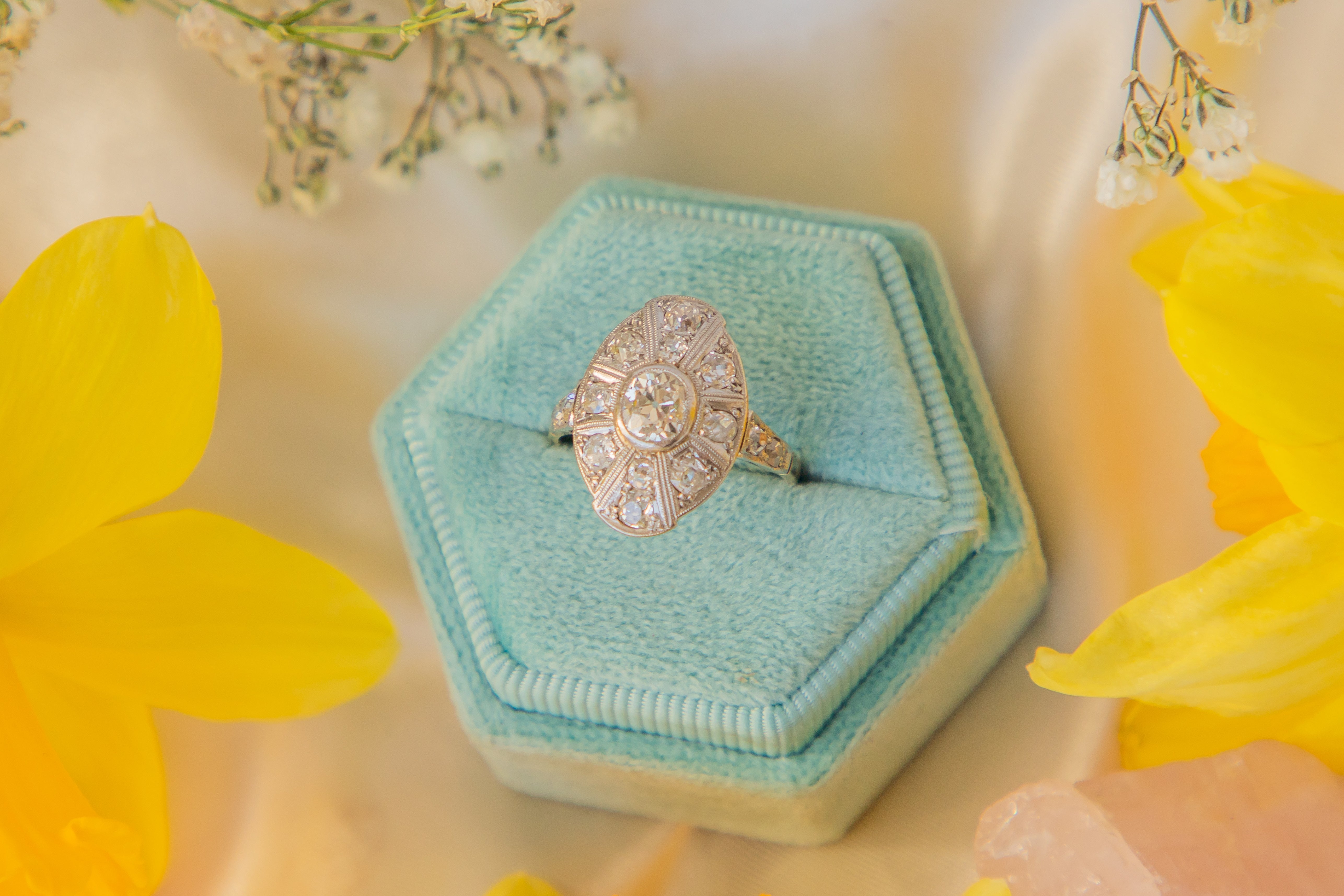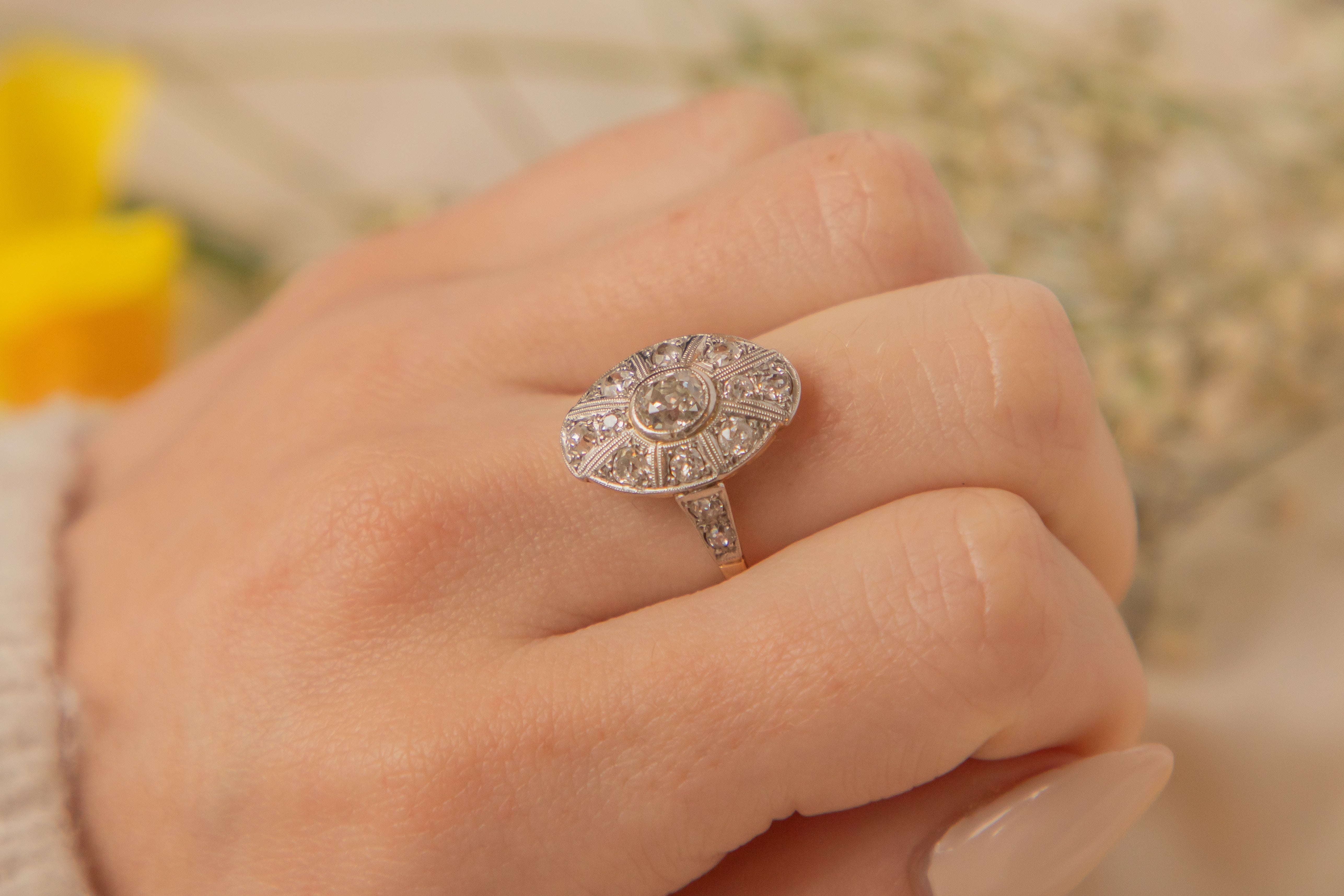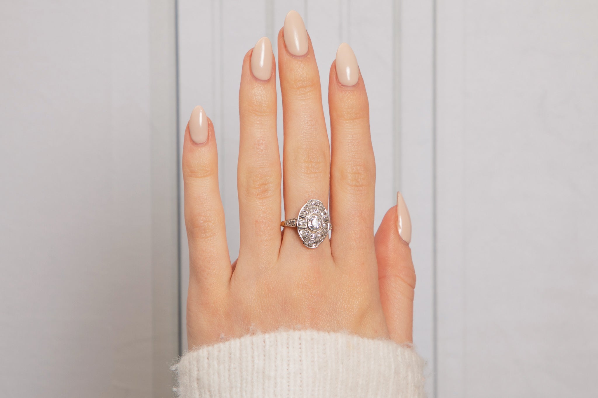 This ring boasts a total Diamond weight of 0.80ct, with the central Old Mine Cut Diamond alone weighing 0.40ct. The ring band has been crafted from solid 18ct Gold, and the settings are robust Platinum, so you can wear this ring with the utmost confidence. This Art Deco Diamond ring would make a well-deserved treat for yourself!