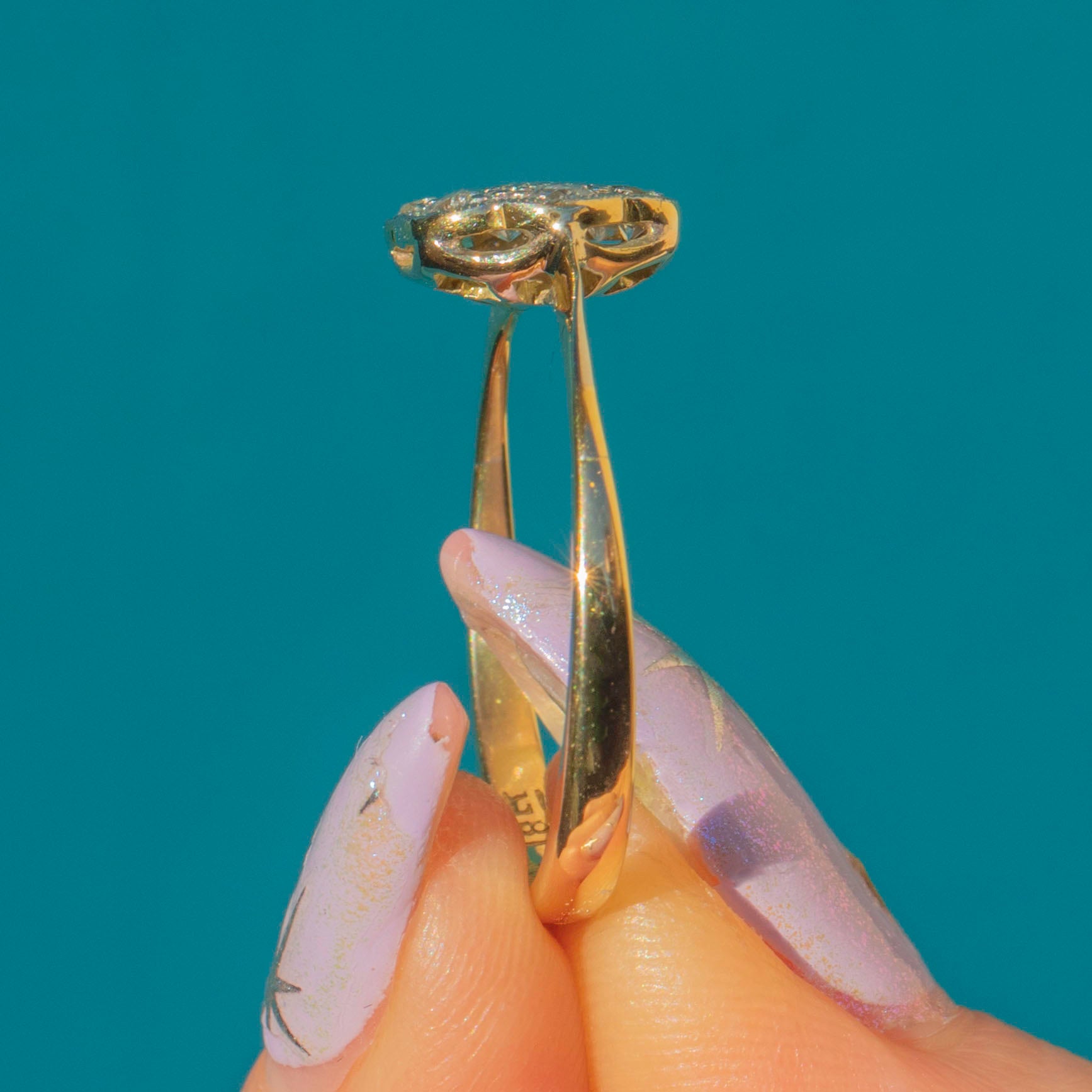 STAMPS: 18ct on ring band.