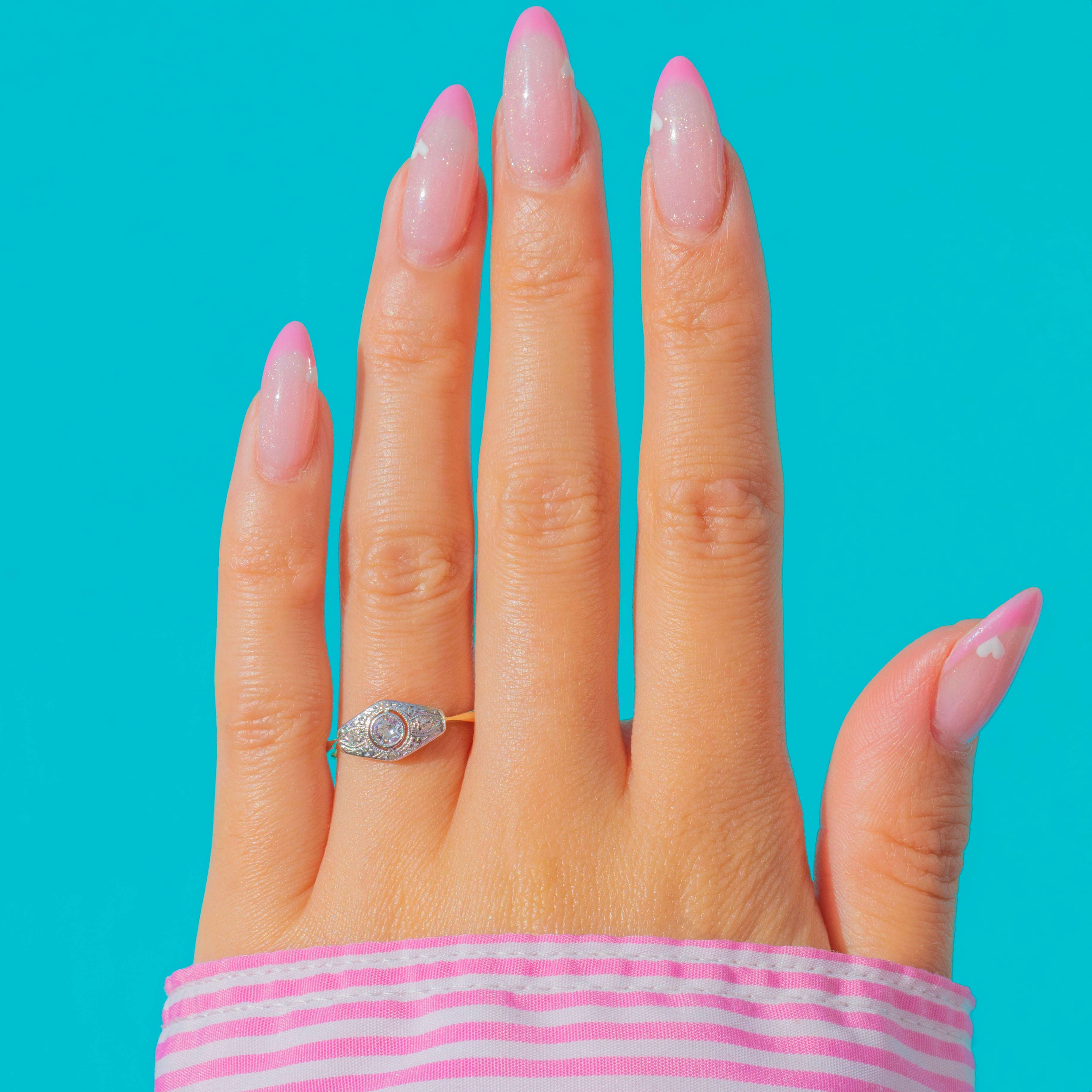 A stylish antique ring with bright Diamonds and classic Deco lines, perfect worn alone or paired with other period treasures.