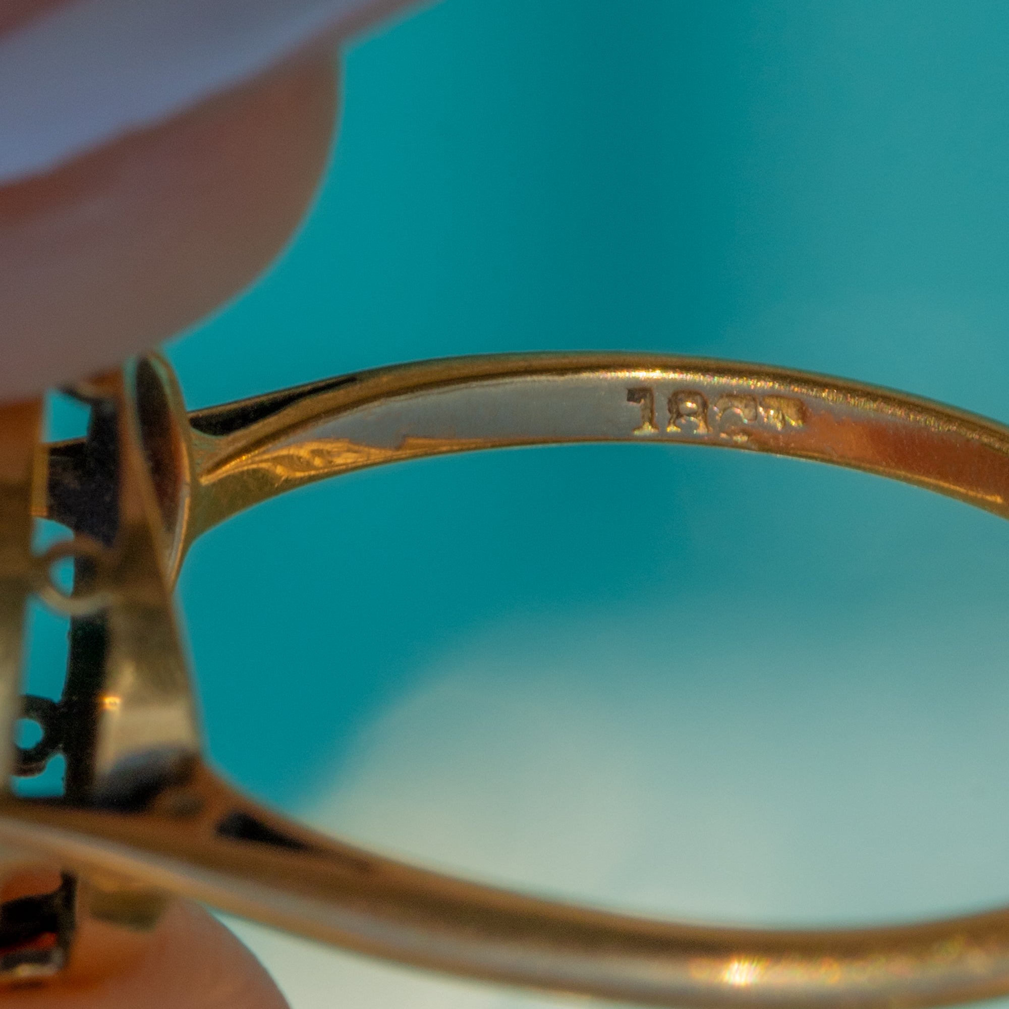 Add a pop of colour to your attire with this Art Deco 18ct Gold Jade cabochon ring!