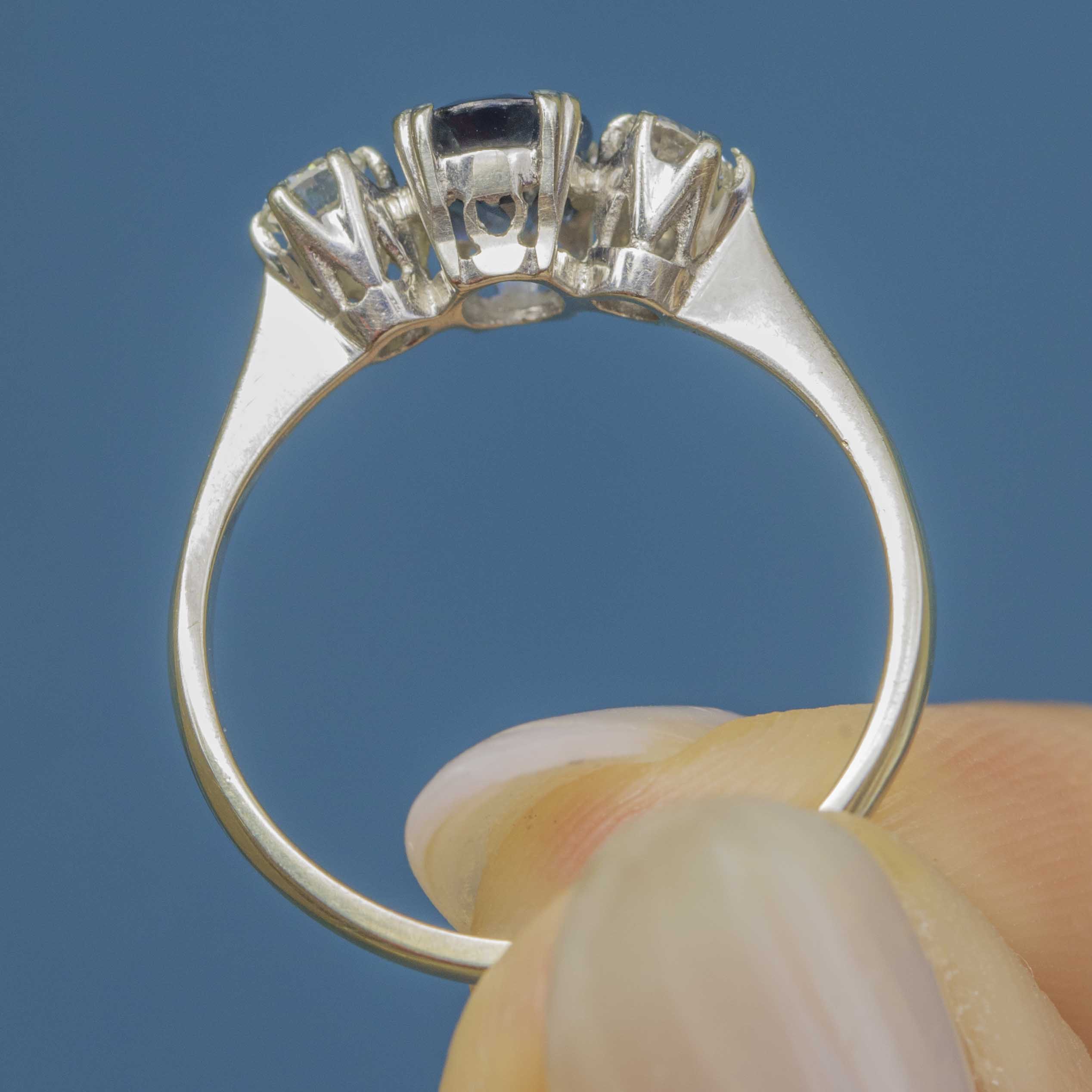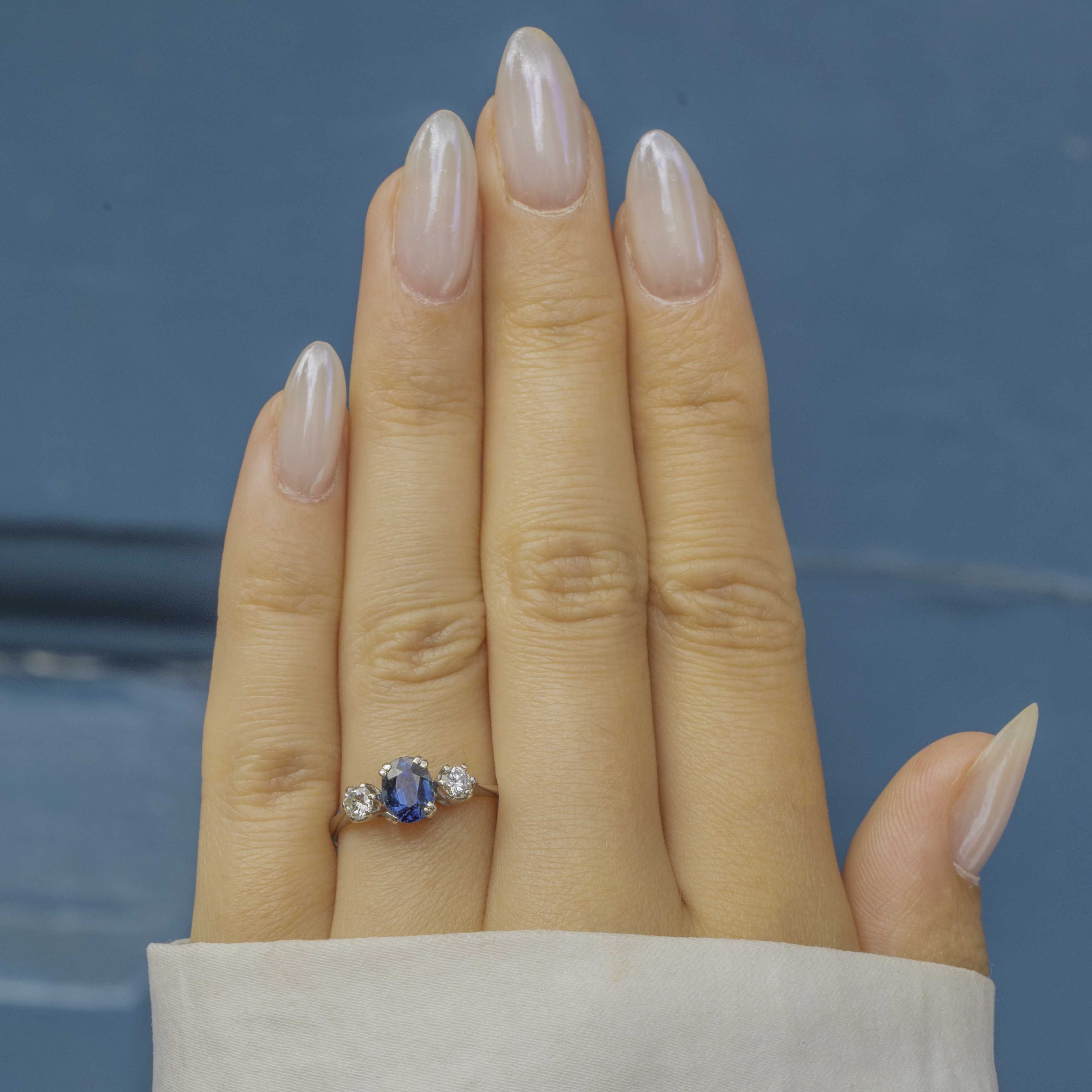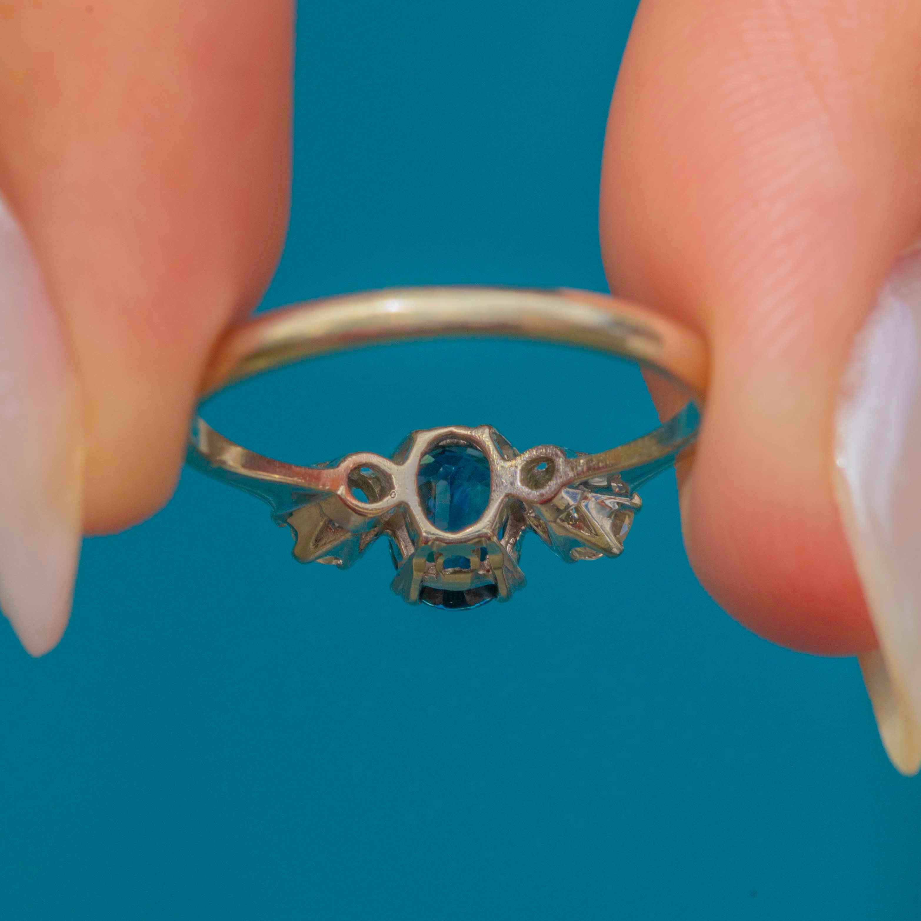 Art Deco 18ct Gold Natural Sapphire Diamond Trilogy Ring, 0.80ct Sapphire