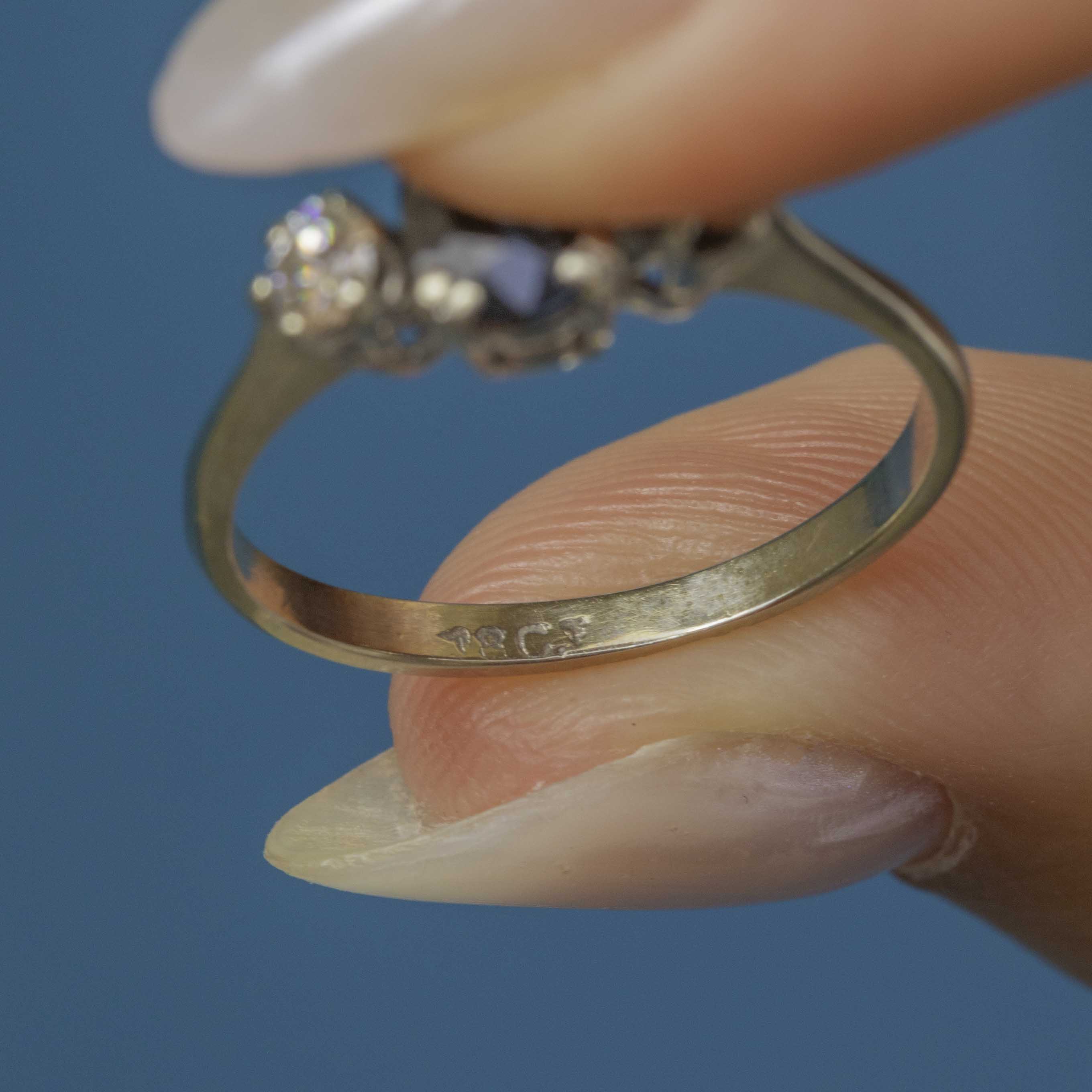 We are simply awestruck by this 18ct Gold Sapphire Diamond trilogy ring from the Art Deco era.